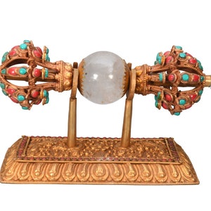 This Vajra is to be used during empowerments. Usually needs two Vajras, one for the Mandala which is tied to the Sung-Tak with five colored cords, and the second one for the Vajra Master. Sanskrit word vajra or Dorje in Tibetan is defined as "diamond" or "adamantine". As such, the word vajra sometimes signifies enlightenment, or the absolute reality of shunyata, emptiness. Dorje offers protection and invokes blessings.