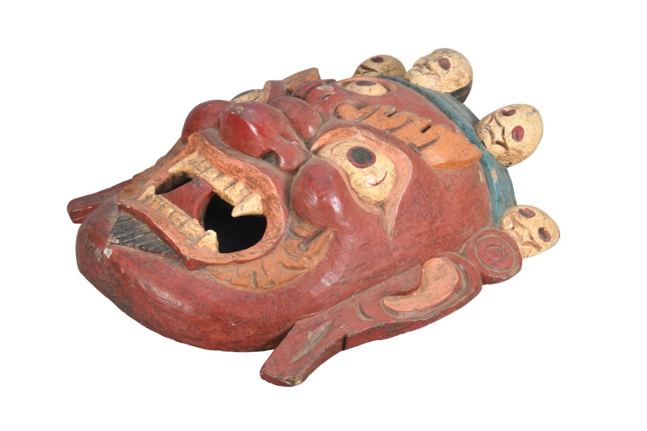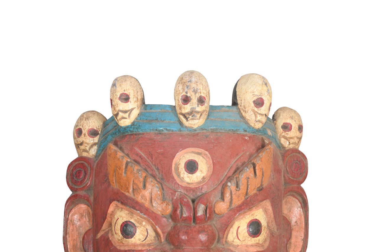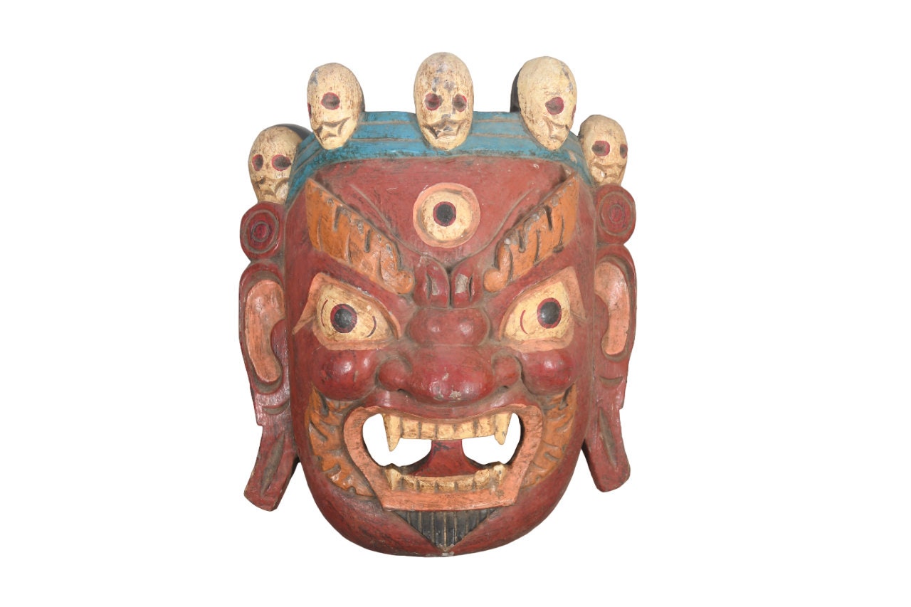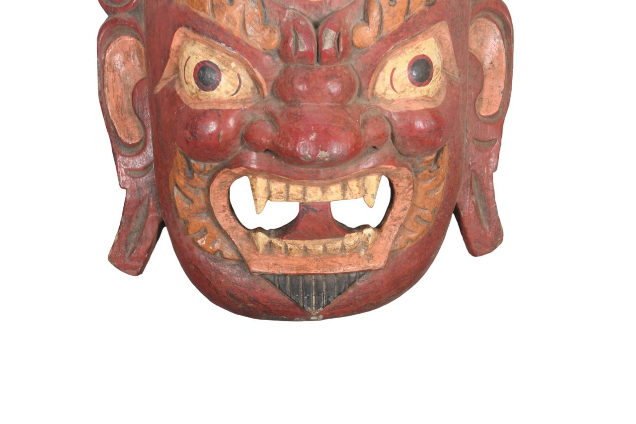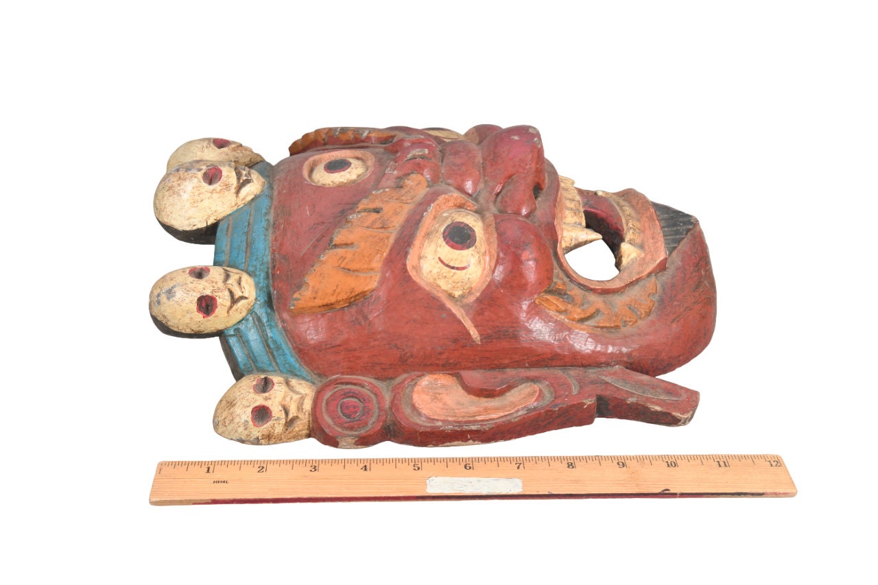 Tibetan Bhairav Mahakala Mask: Antique Handmade Wall Hanging