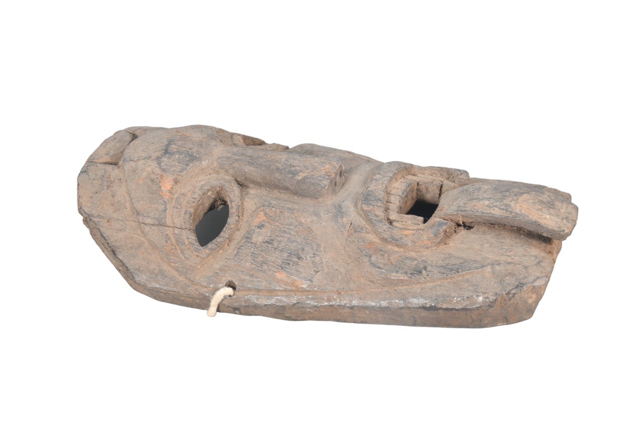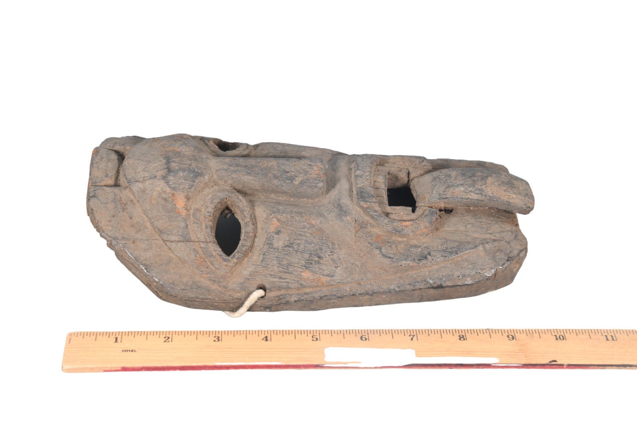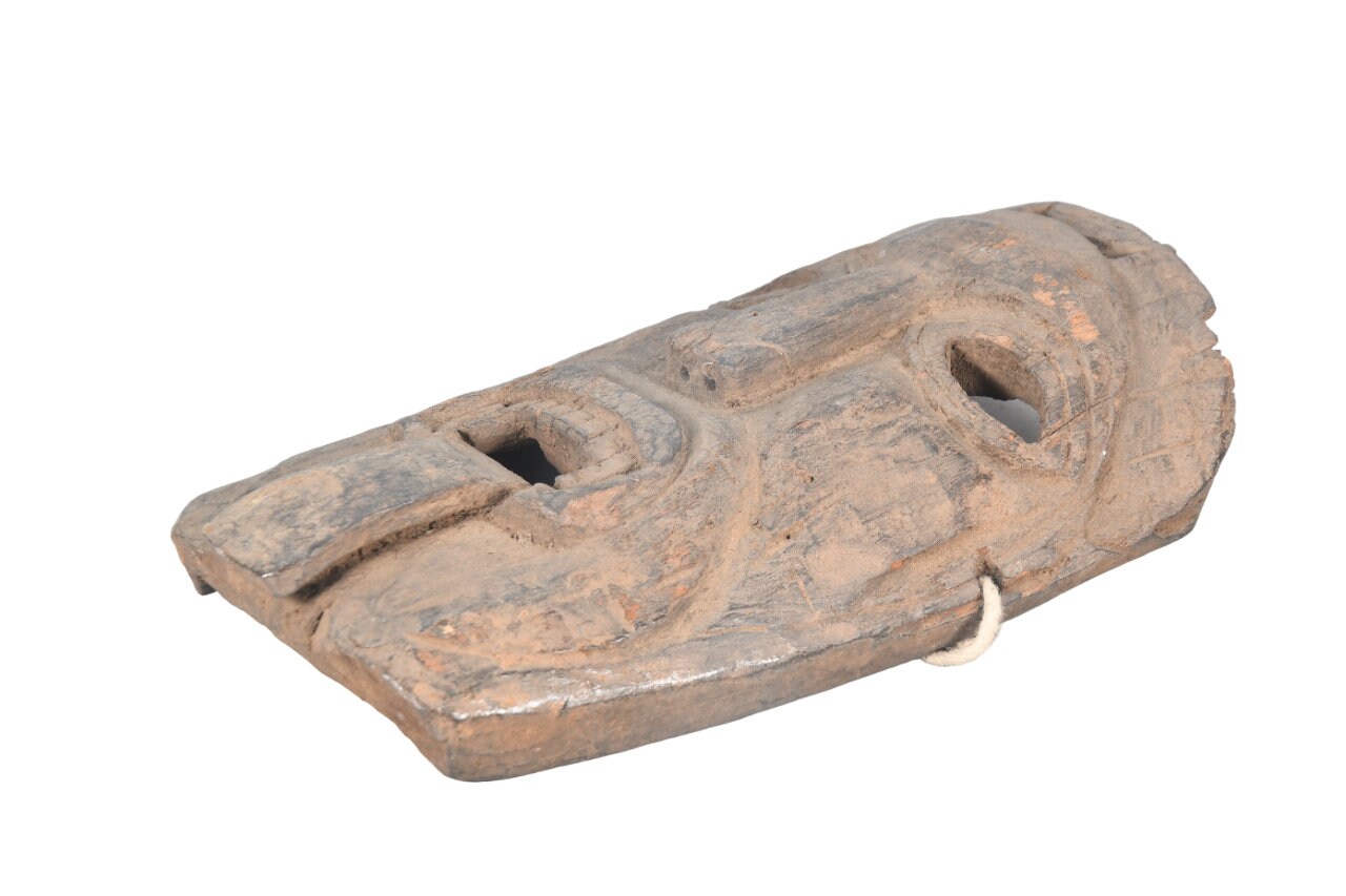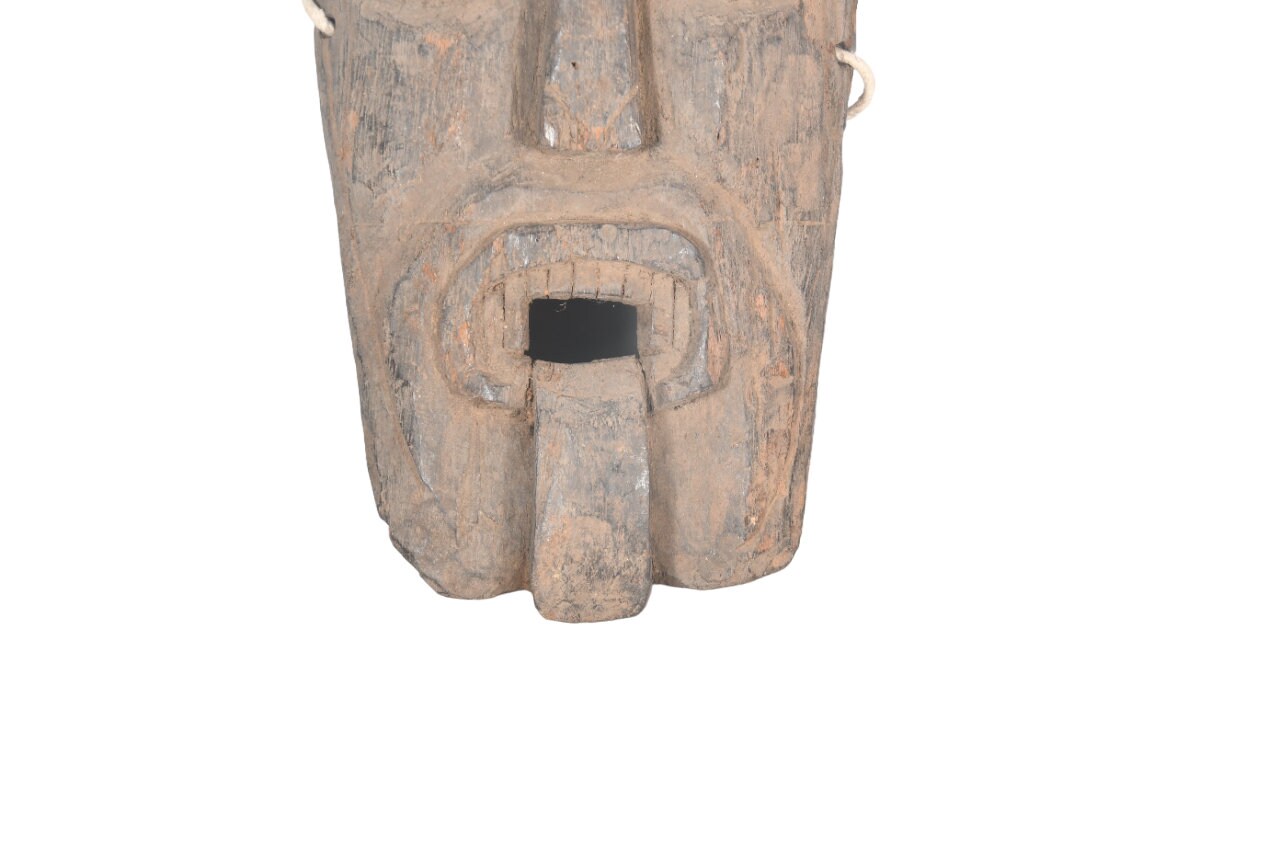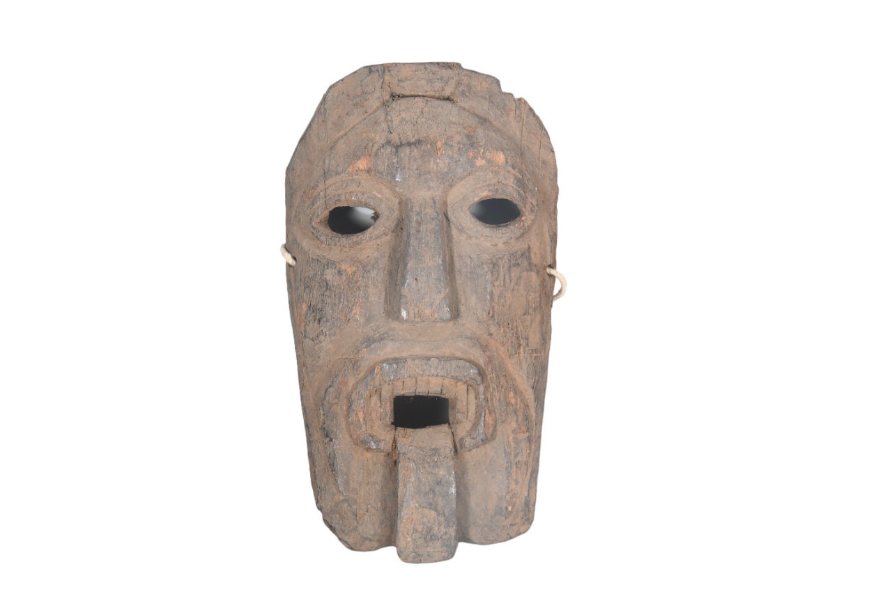 This Is a Rare Tharu Reverse Shaman Exorcism Mask That Was Hand Carved by a Tharu Shaman. The Tharu People Inhabit the Terai Region of Nepal and Some Areas of Tibet as Well. Shamanic Masks Like This Are Used in Religious Rituals, Festivals and Exorcisms by Shaman and Sometimes by Buddhist Monks.