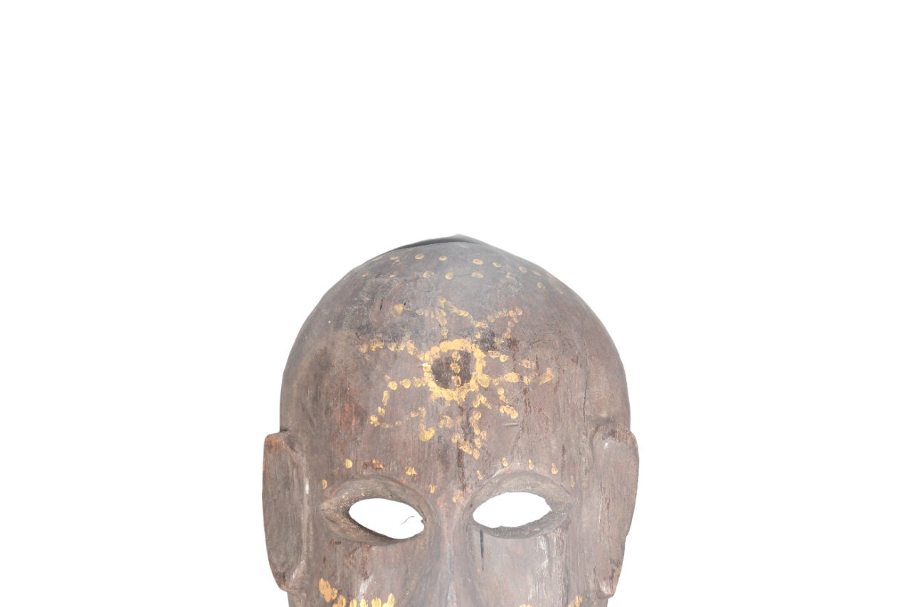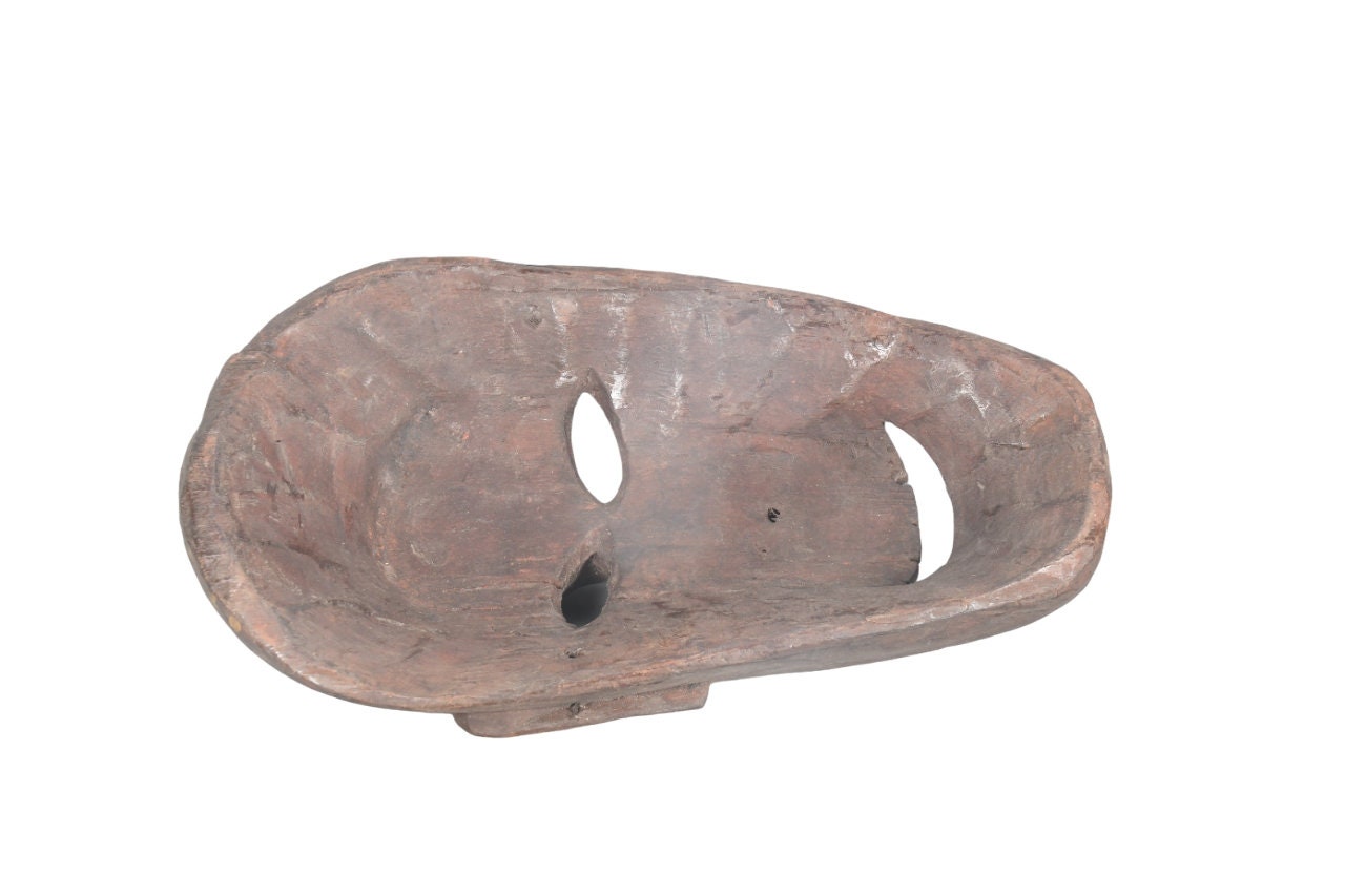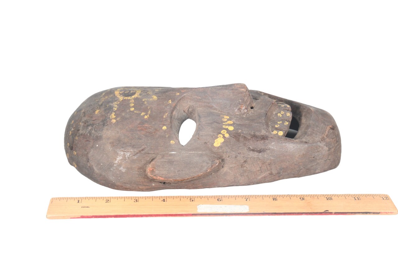 This Is a Rare Tharu Reverse Shaman Exorcism Mask That Was Hand Carved by a Tharu Shaman. The Tharu People Inhabit the Terai Region of Nepal and Some Areas of Tibet as Well. Shamanic Masks Like This Are Used in Religious Rituals, Festivals and Exorcisms by Shaman and Sometimes by Buddhist Monks.