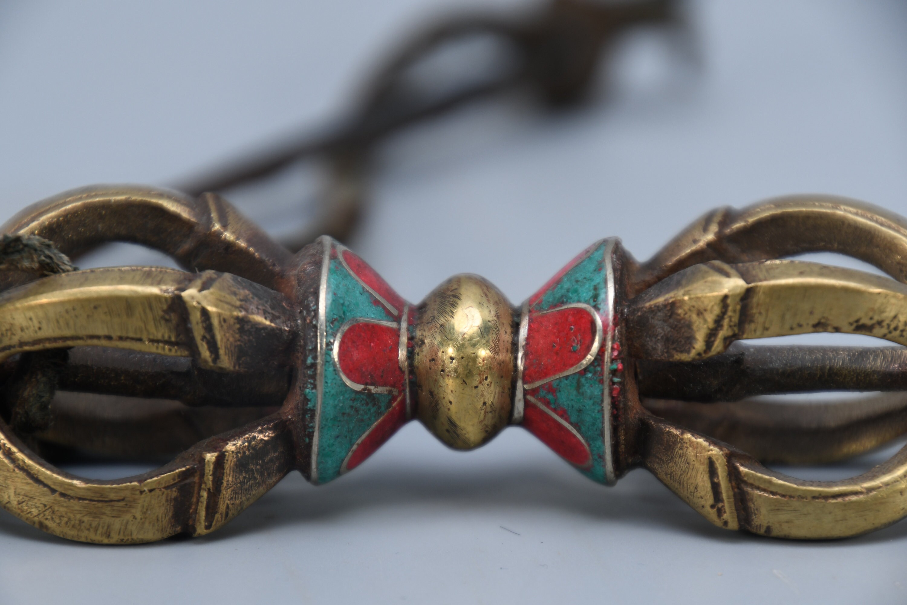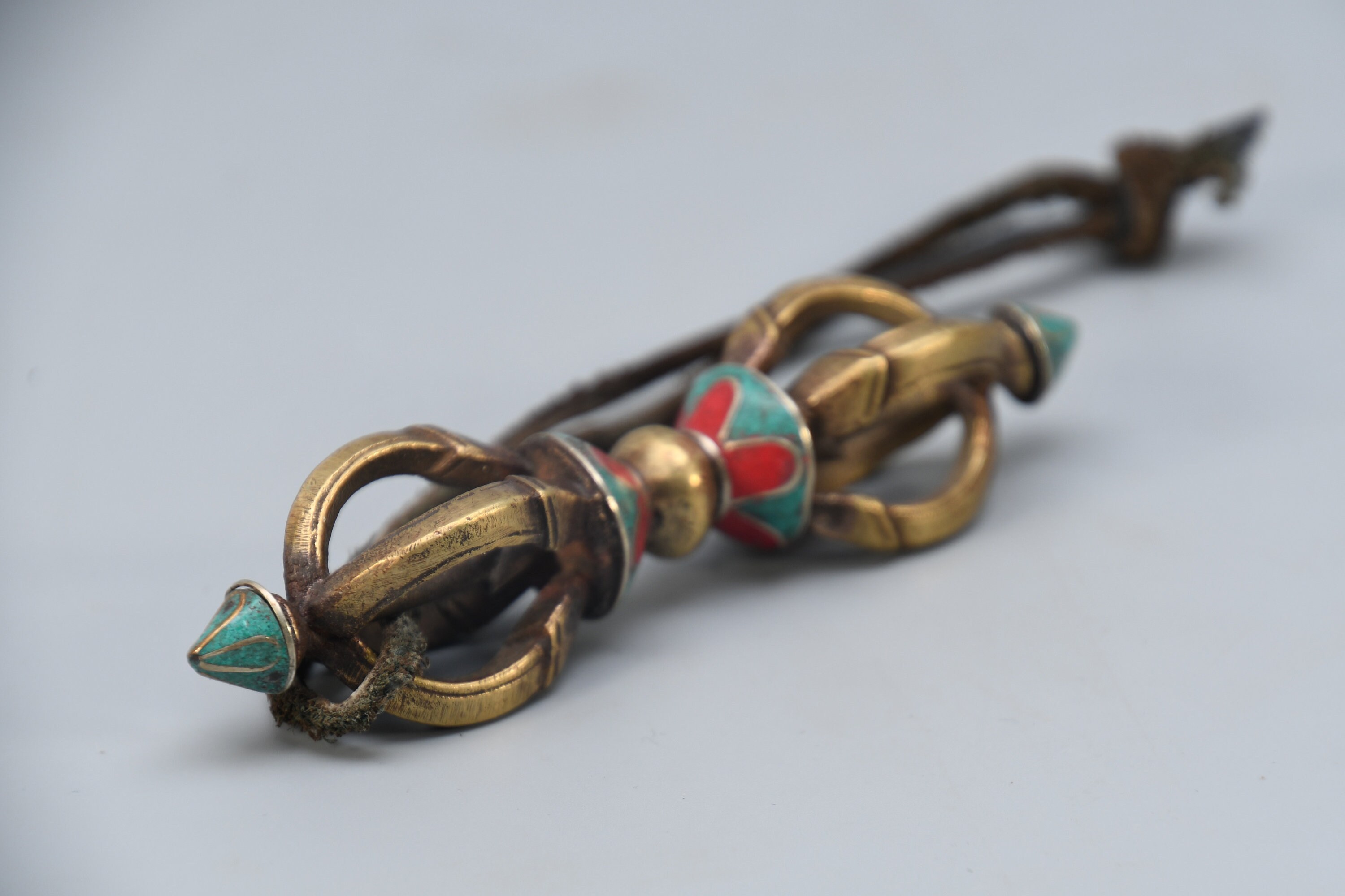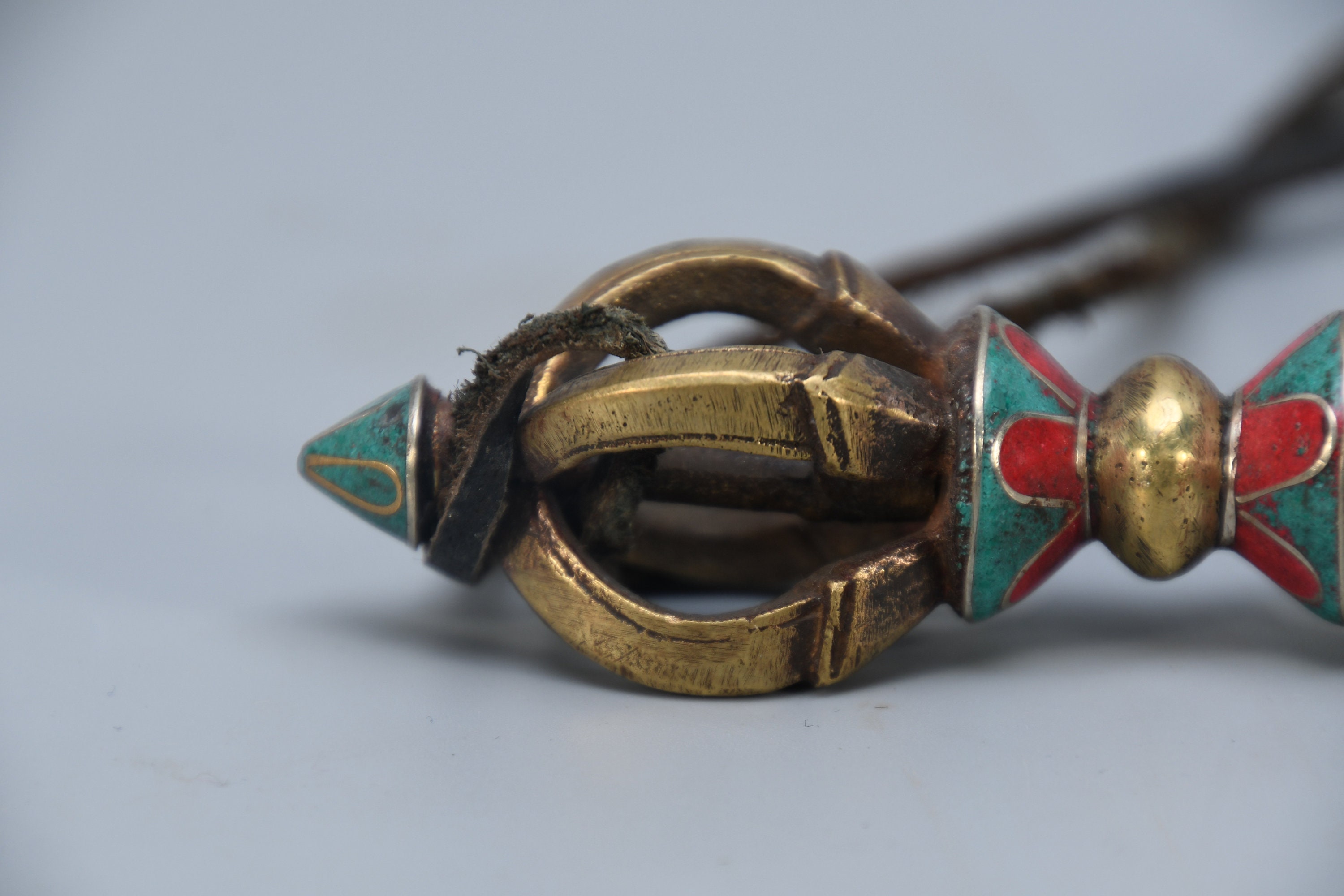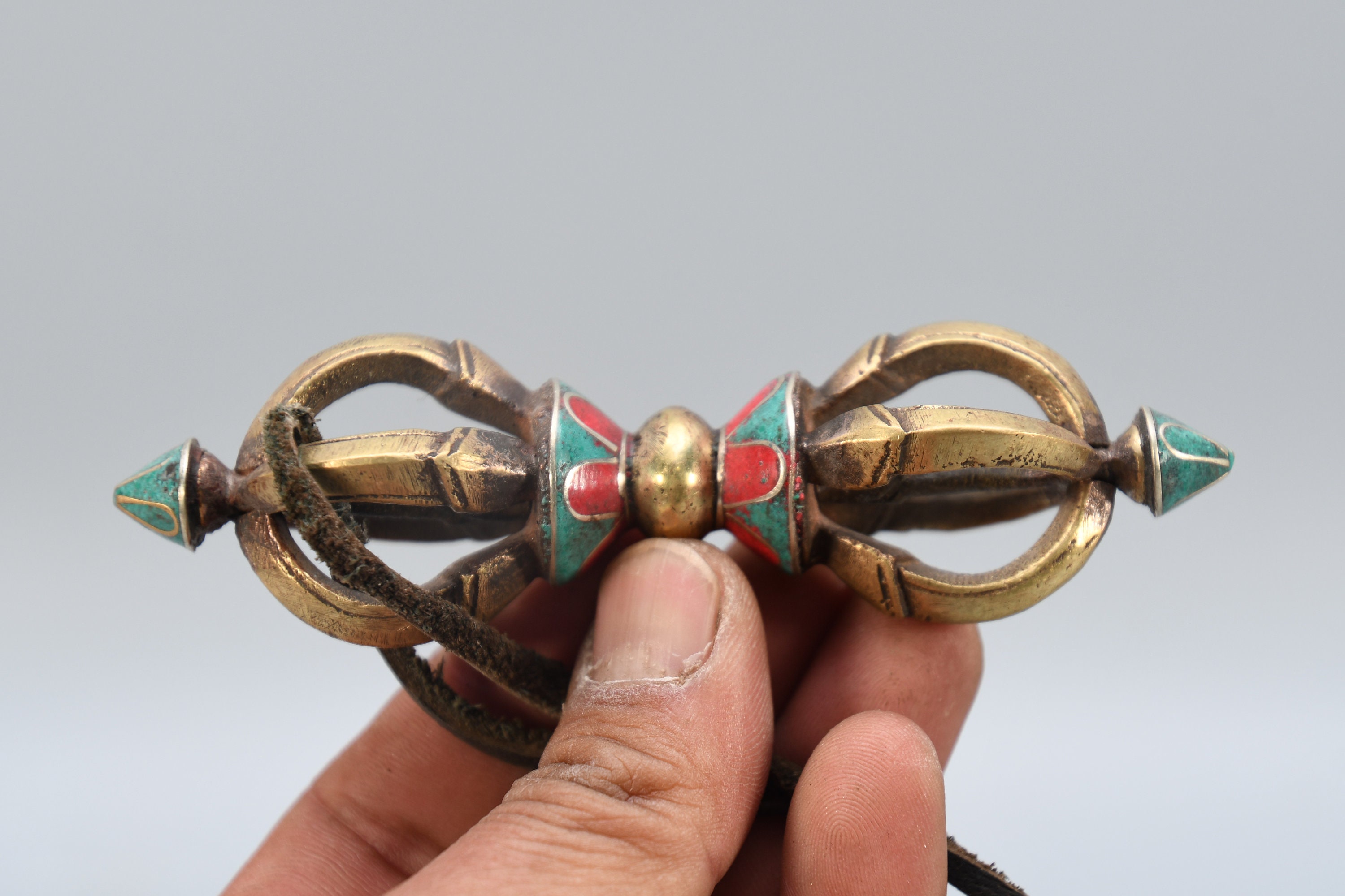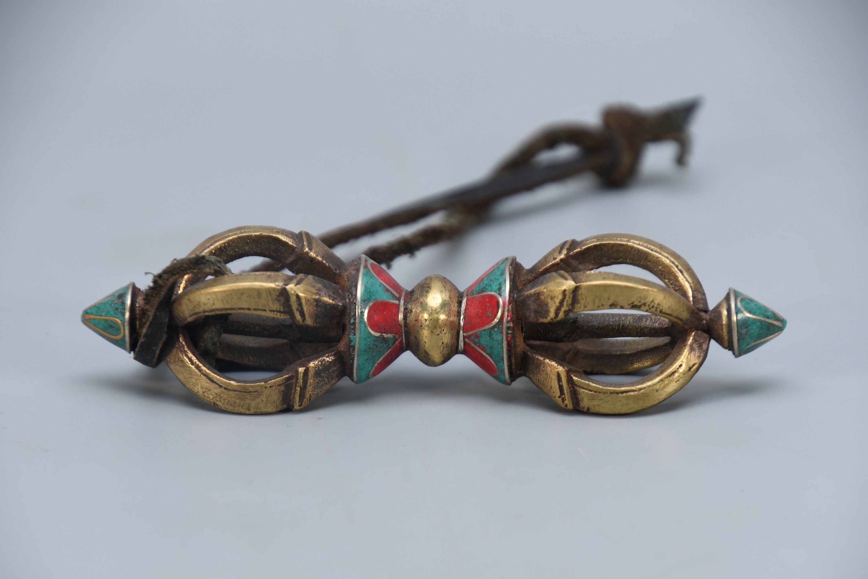 Vintage Brass Dorje Vajra – Turquoise Inlay, Nepal Tantric Craft