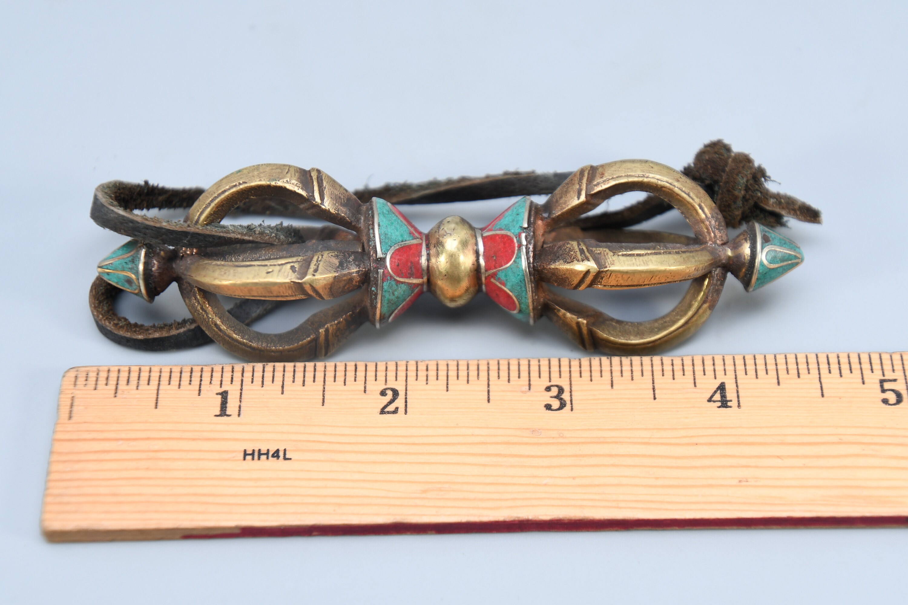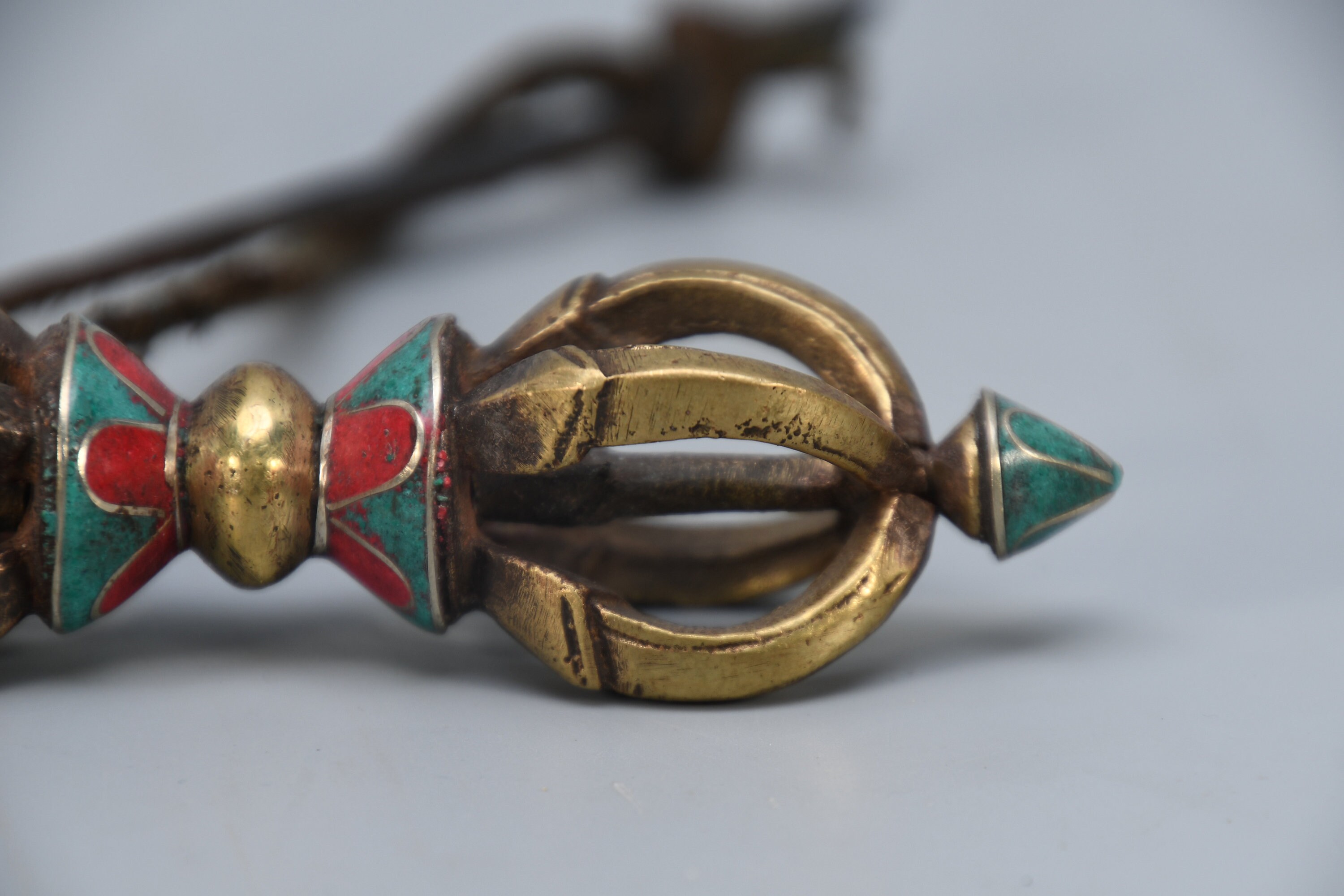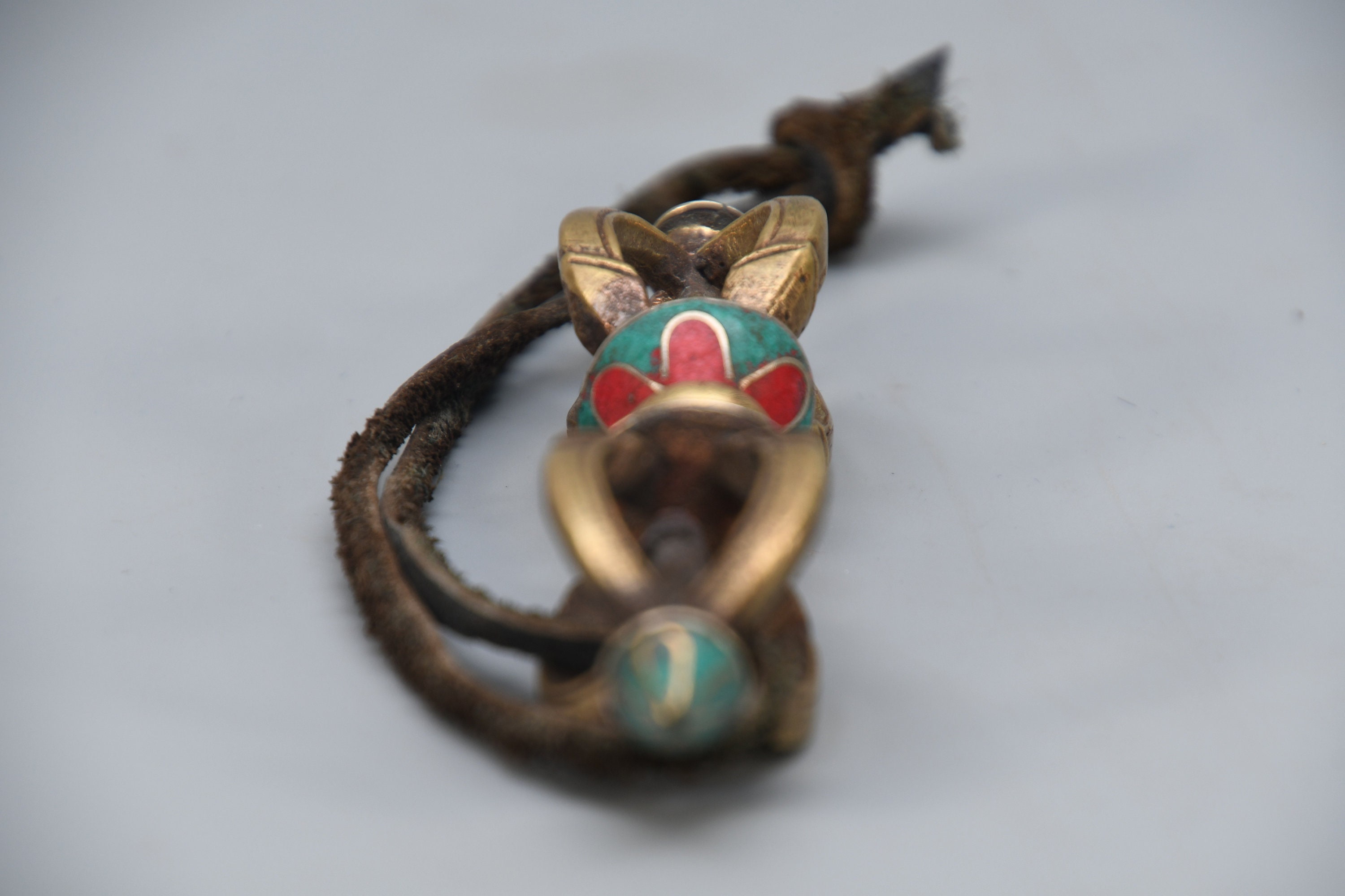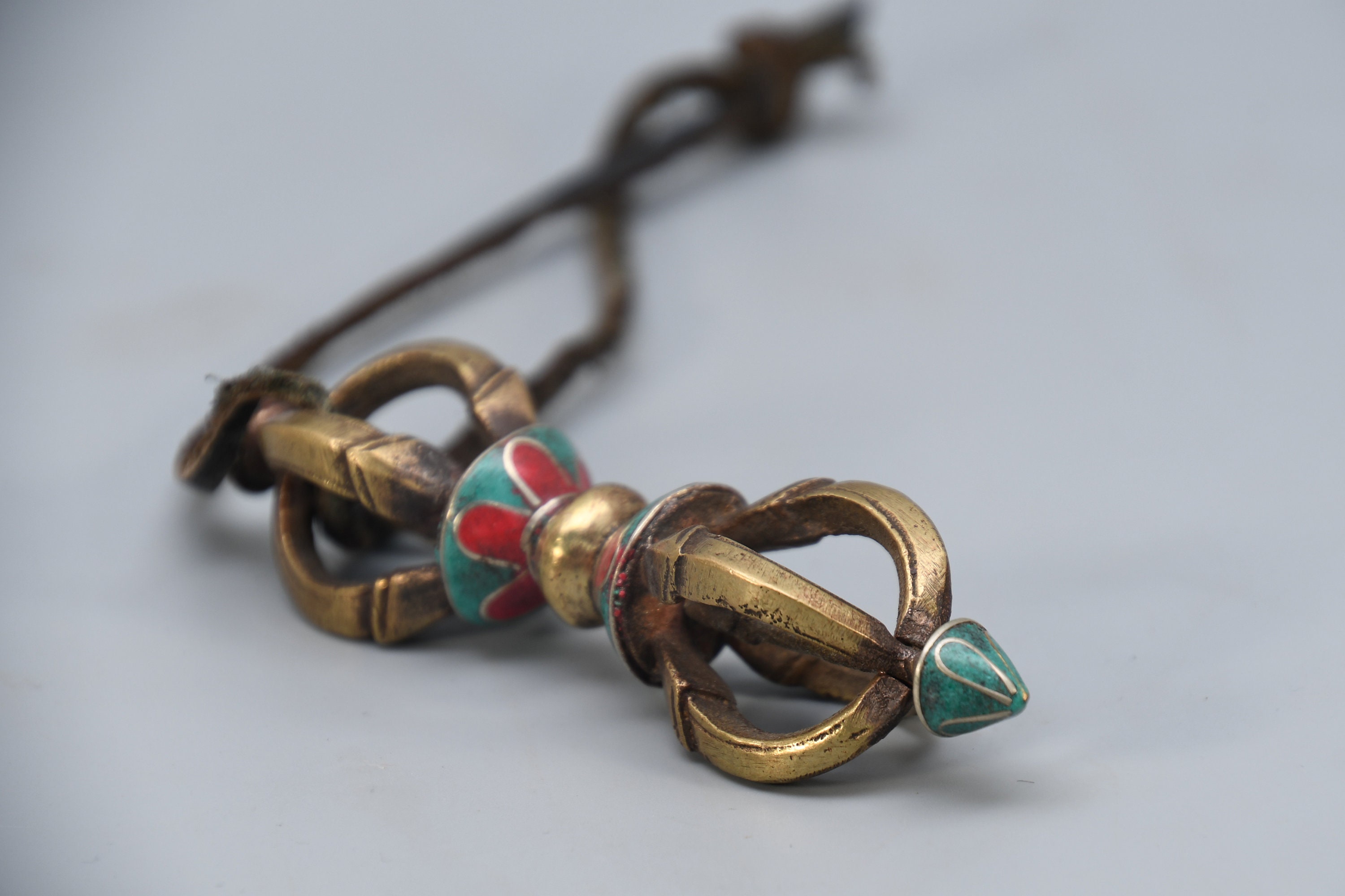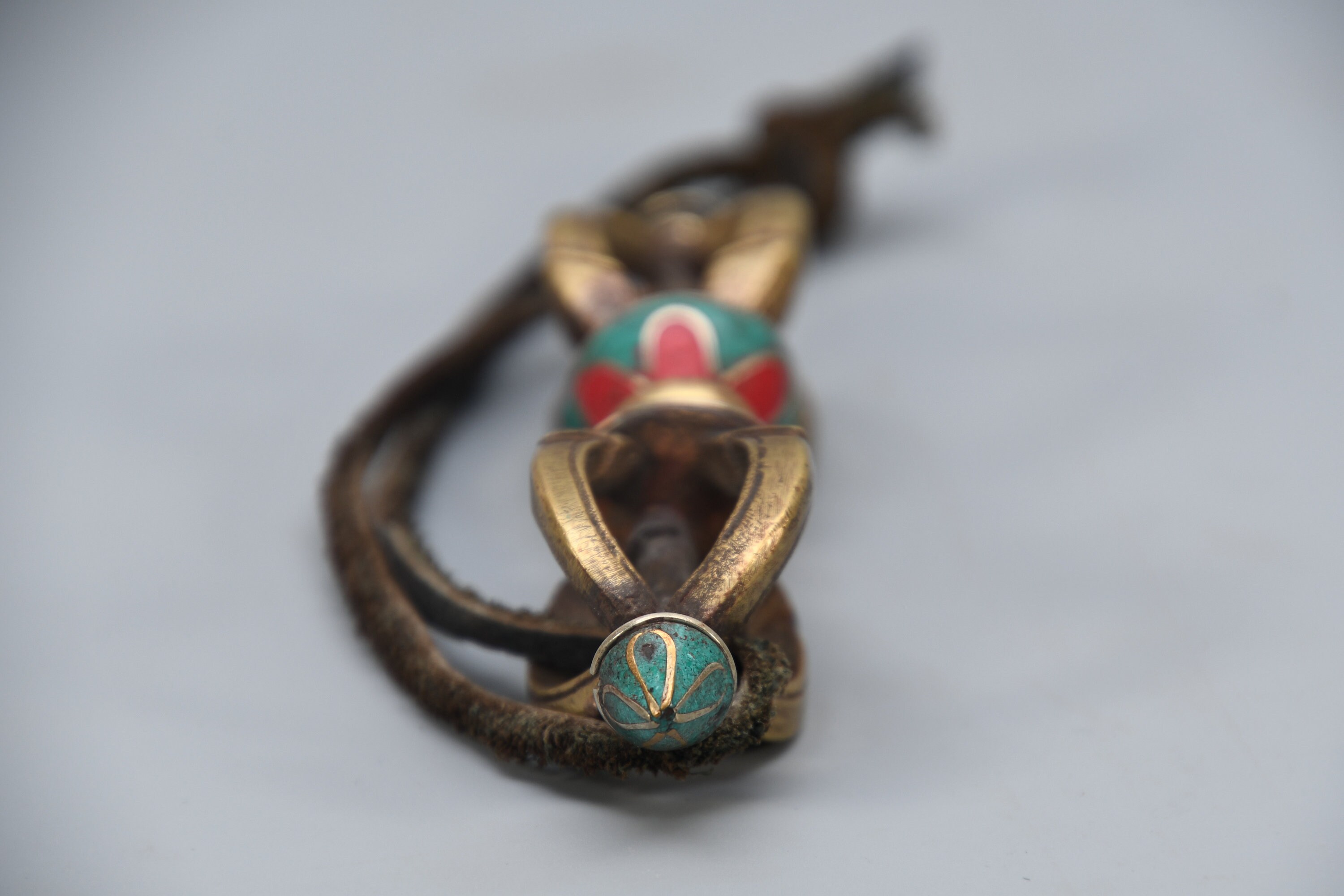 Vintage Brass Dorje Vajra – Turquoise Inlay, Nepal Tantric Craft