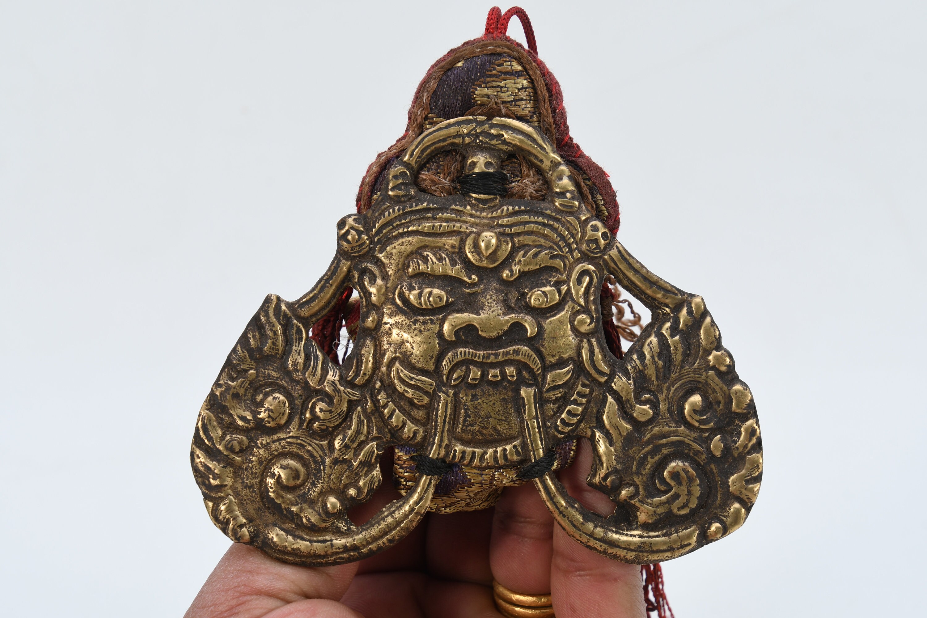 Exquisite Brass Mahakala Wall Hanging - Antique Tibetan Decorative Pendant Religious Craftsmanship Collection Decor