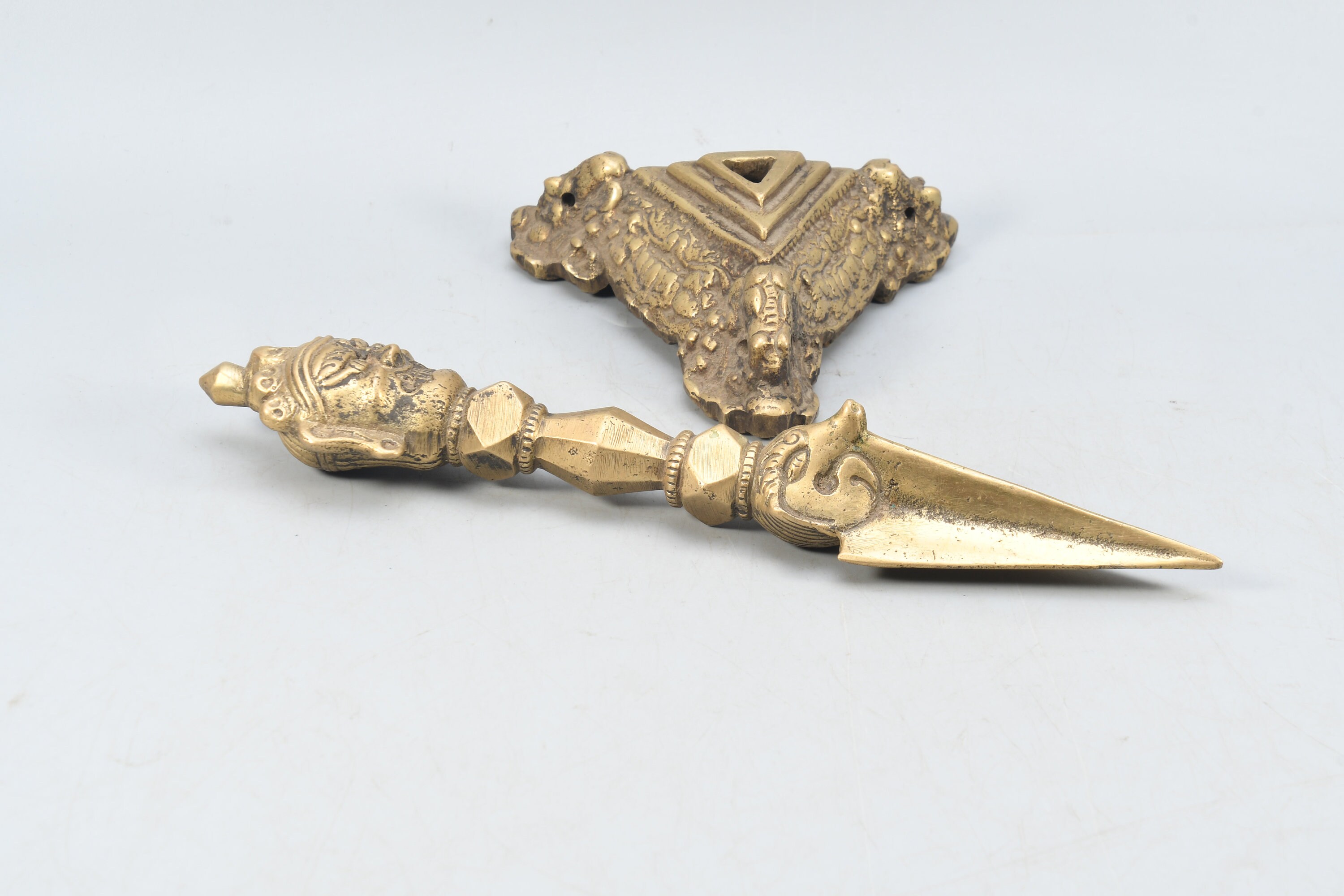 The phurba is also called 'the magic dagger'. 'Phur' is translated from the Sanskrit 'kila' which means peg or nail. The phurba is a three-sided stake that is used in Buddhist rituals.