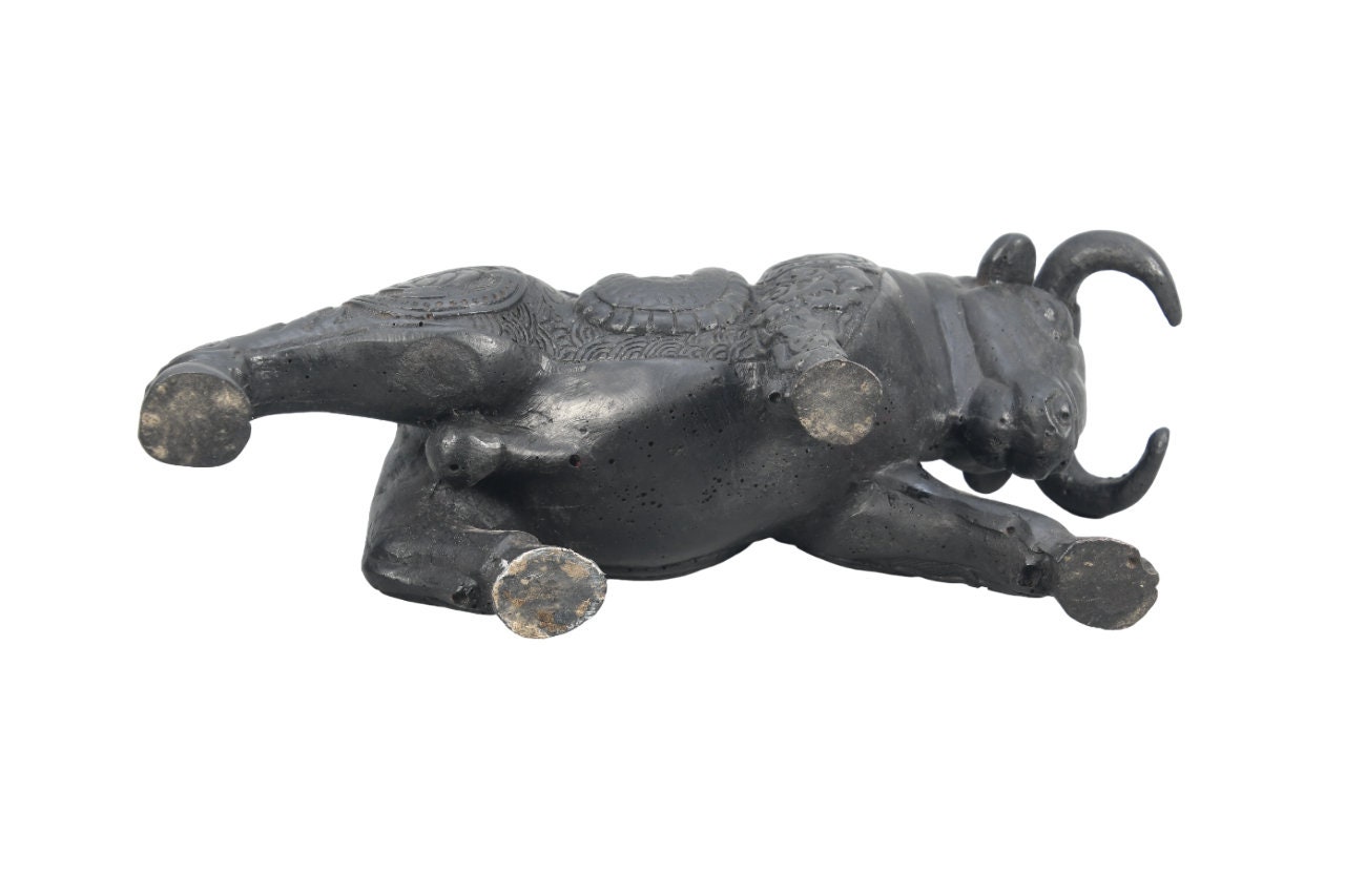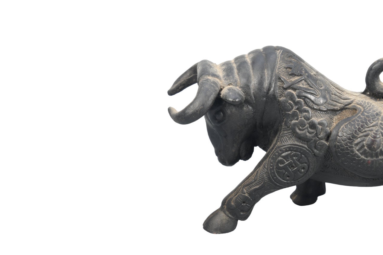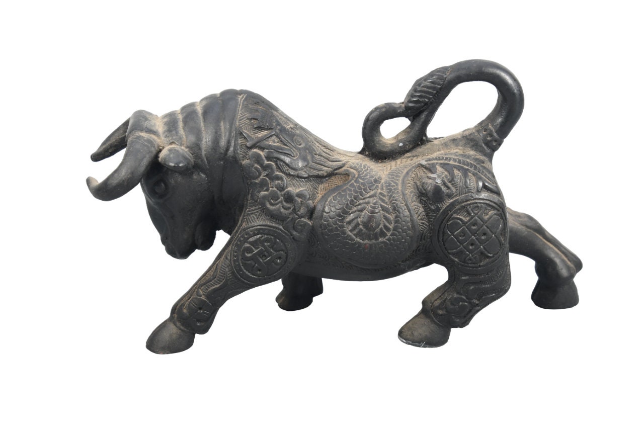 Antique Resin Angry Bull Figurine - Handmade Decorative Statue