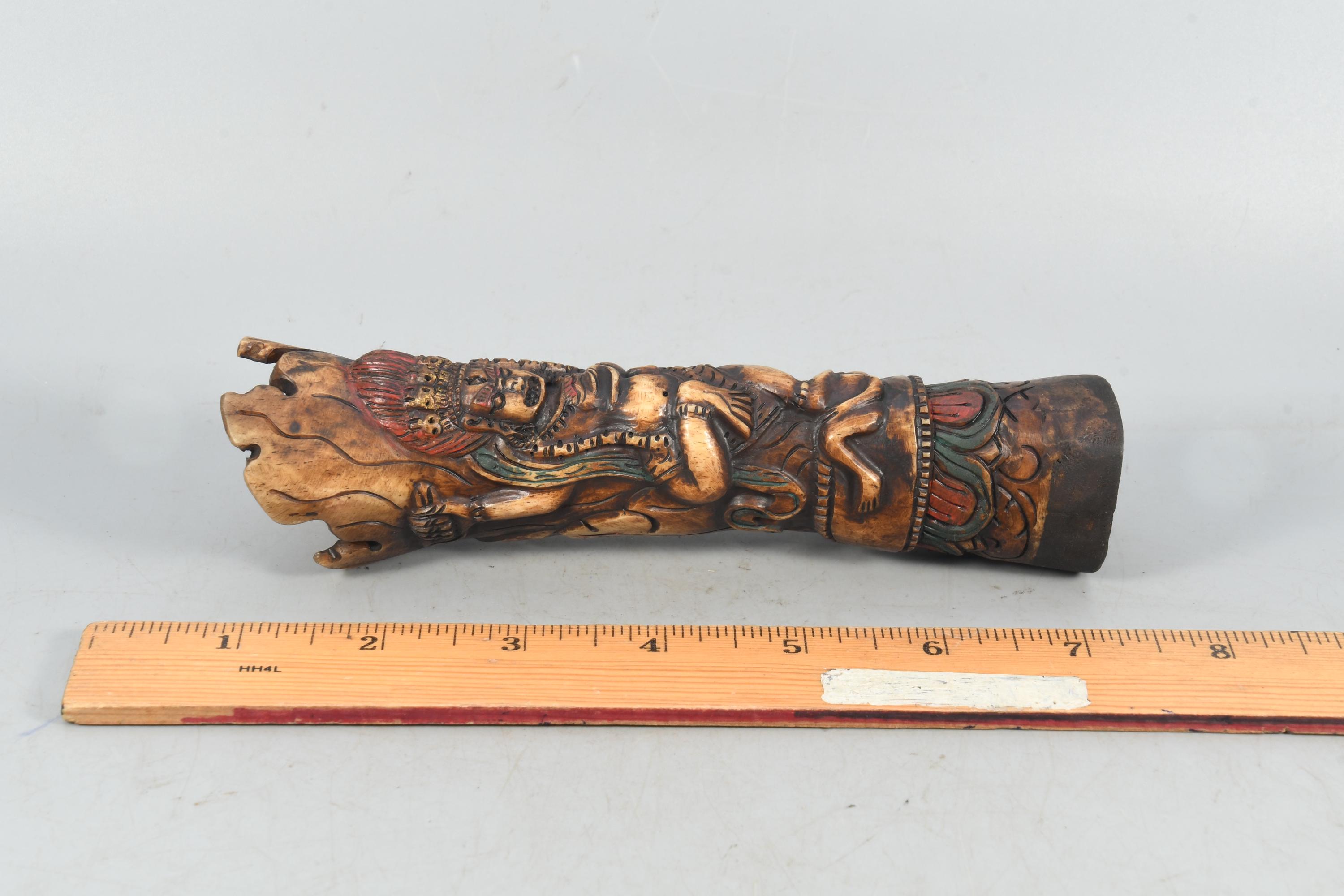 Handmade Antique Tibetan Standing Mahakala Seal – Tantric Ritual Collectible, Fierce Deity Craft Tool