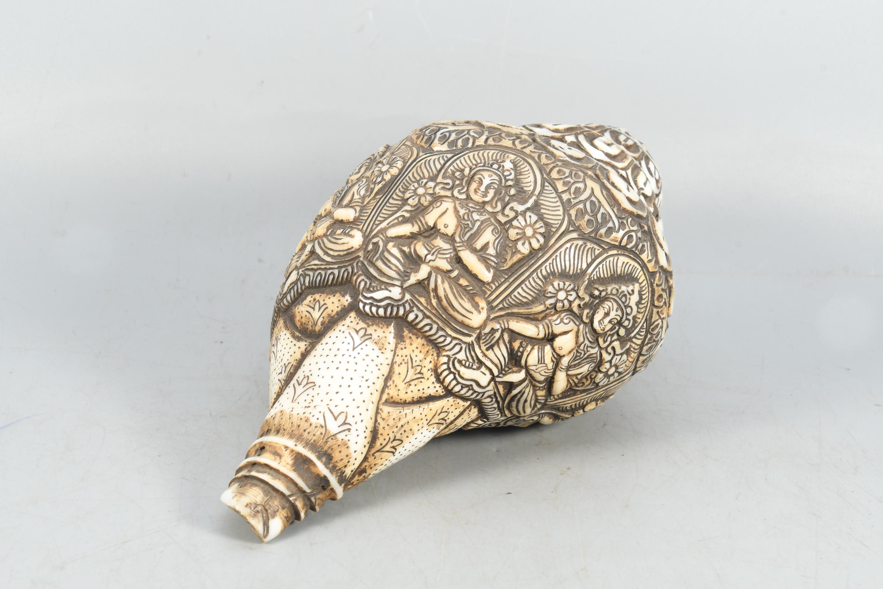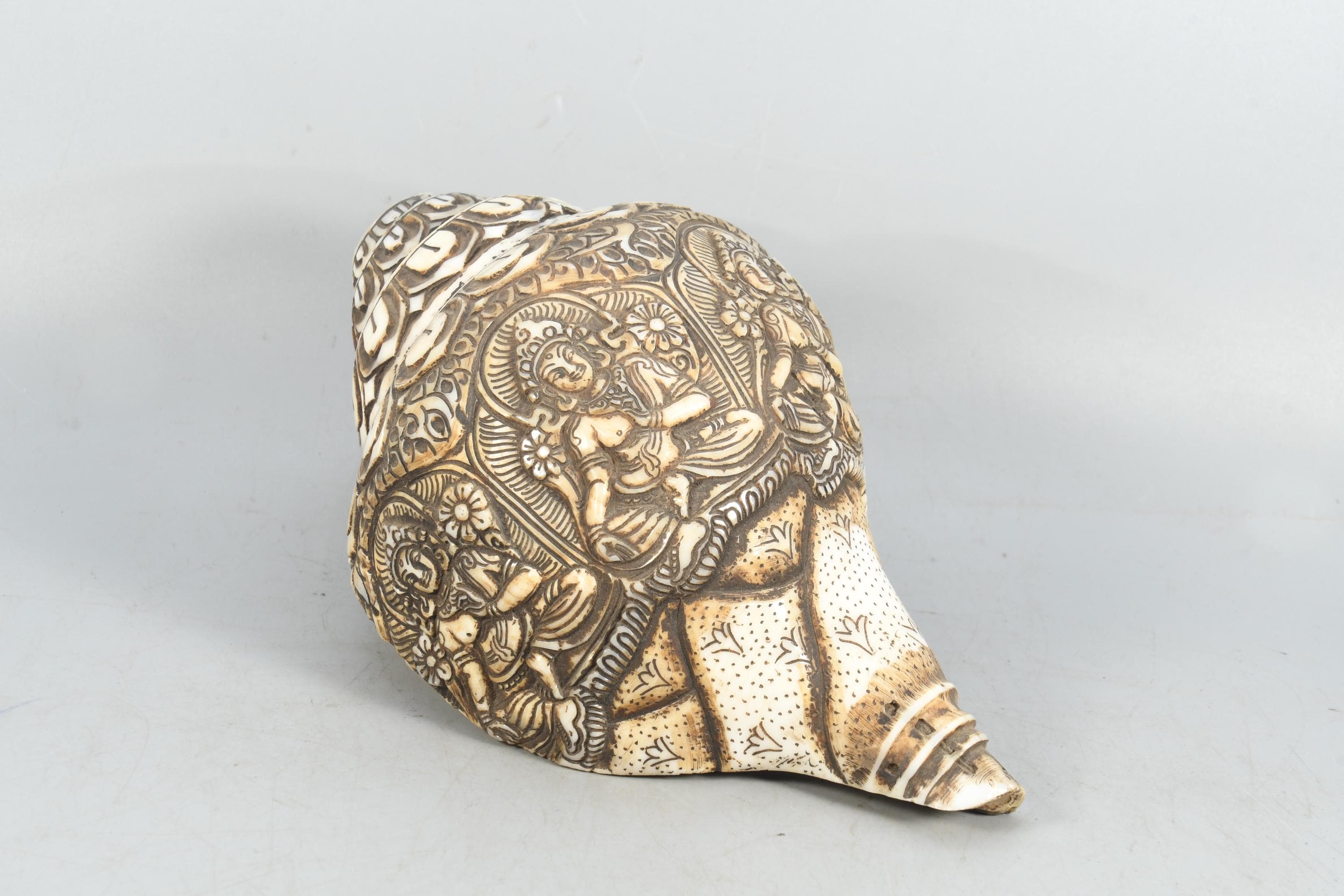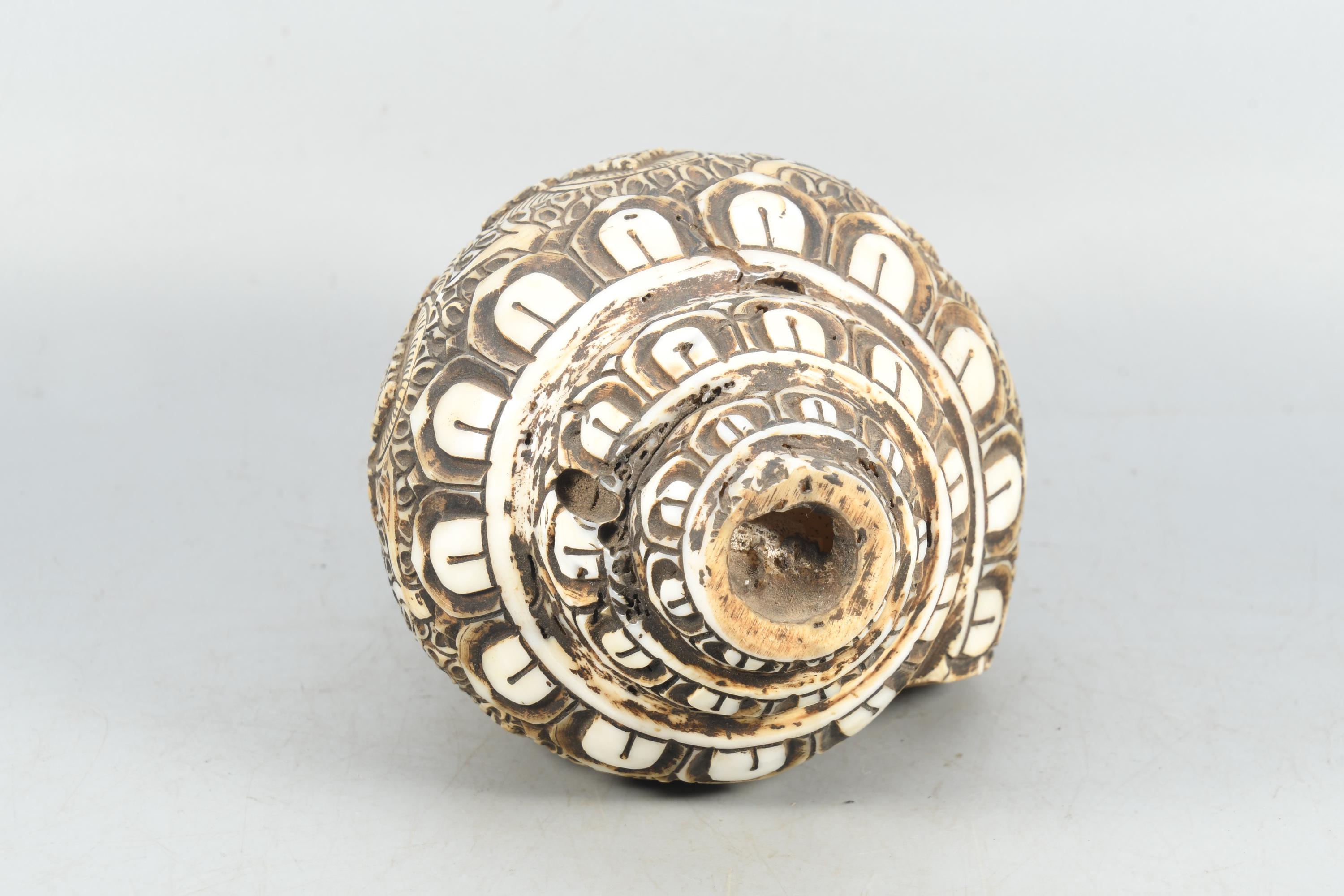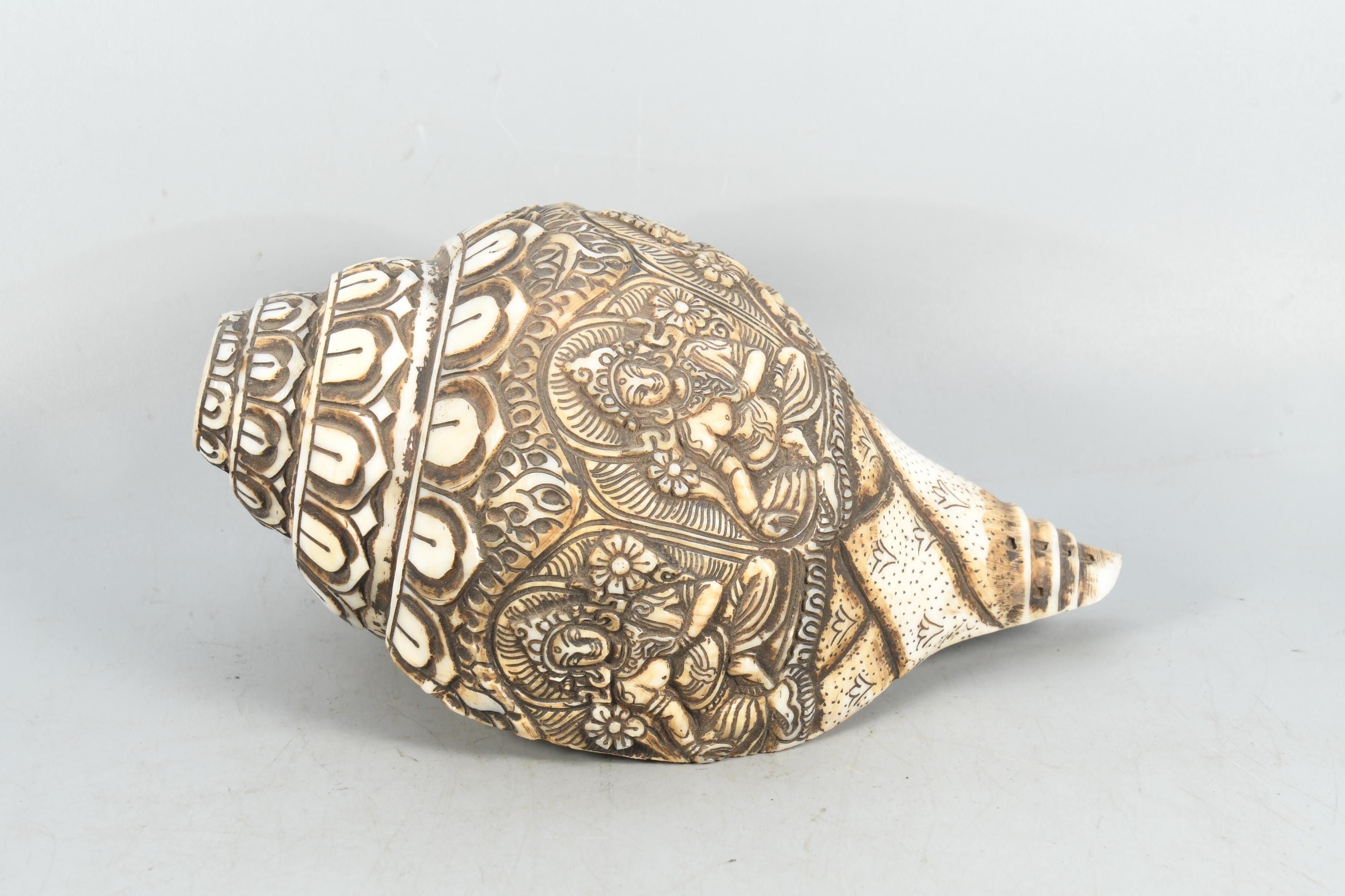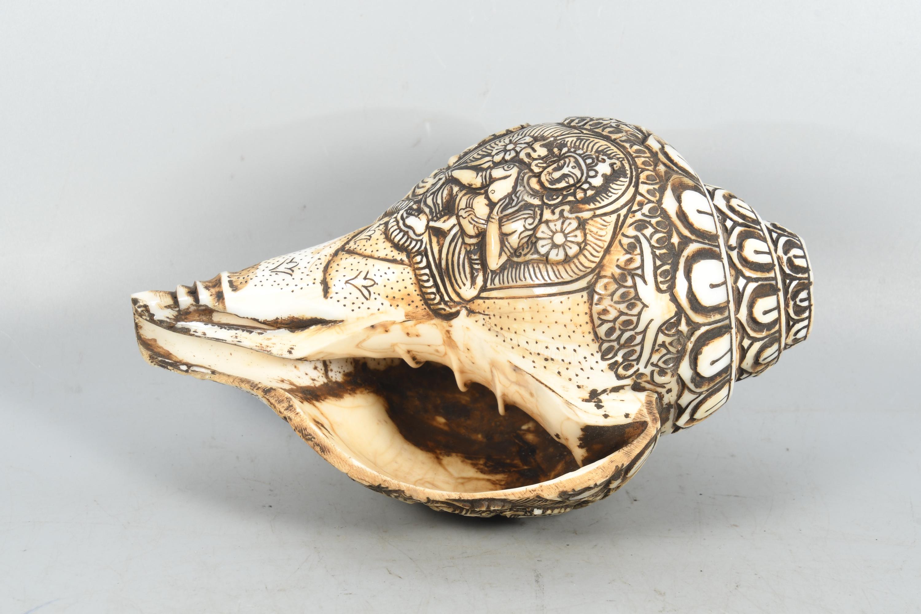 Hand-Carved Goddess Tara Conch Shell | Antique Jetsun Dolma Sankha | Vintage Sound Healing Decor