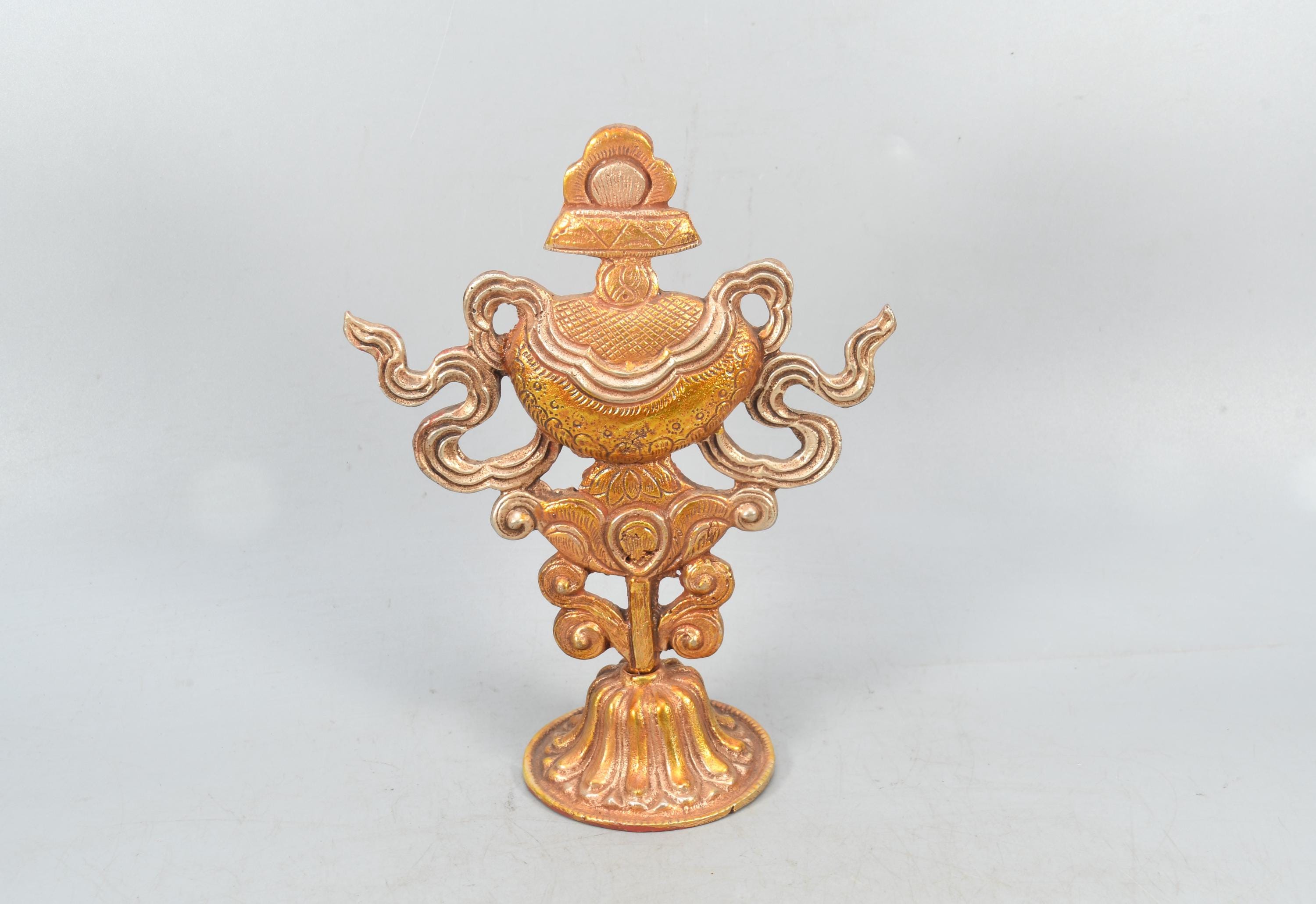 Antique Handmade Gold-Tone Vintage Tibetan Silver Ethnic Table Decor – Unique Home Art Collection Piece