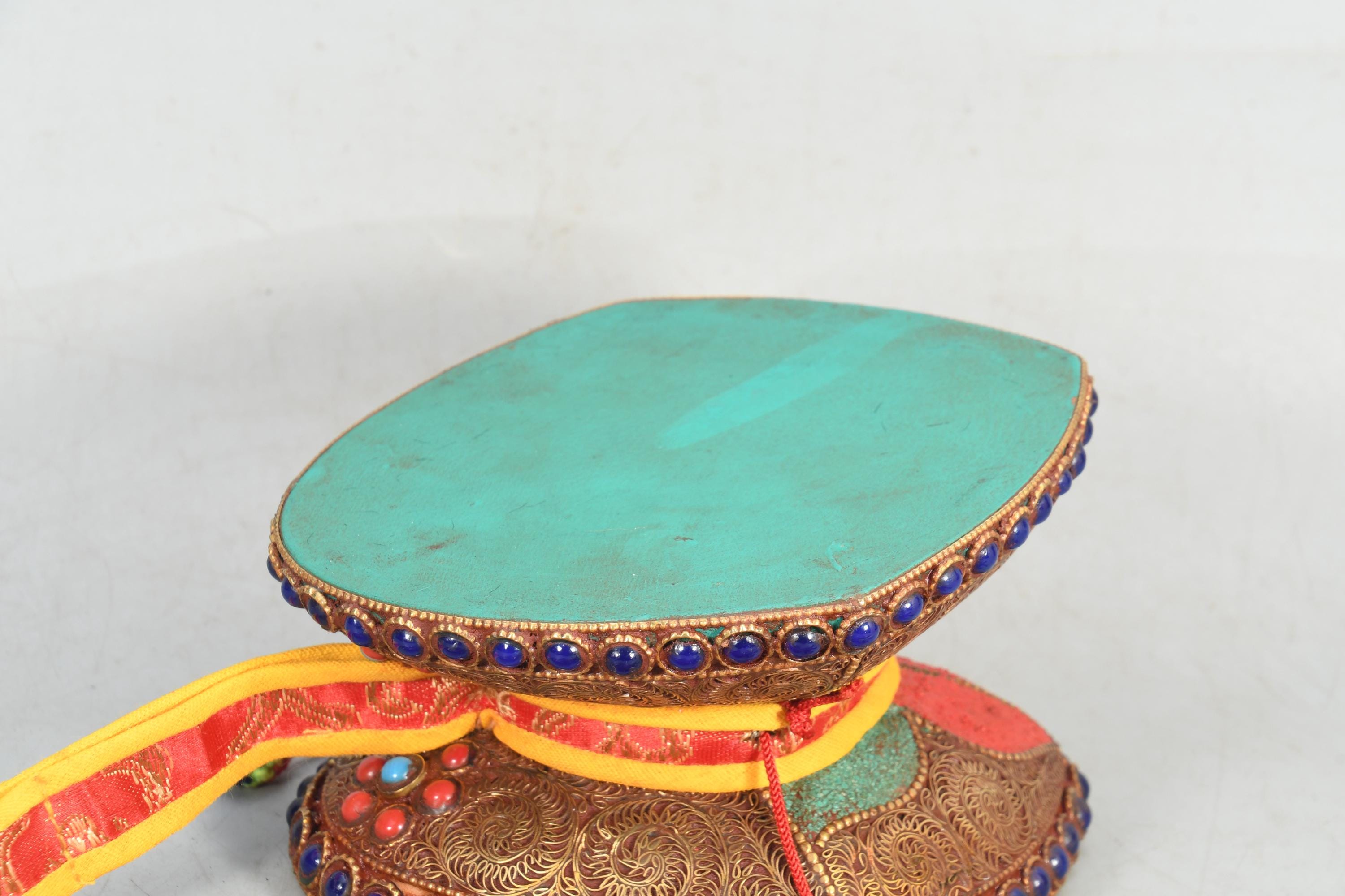 Handmade Copper & Gemstone Tibetan Damaru Drum - Antique-Style Leather Musical Instrument - Lord Shiva Inspired Craft