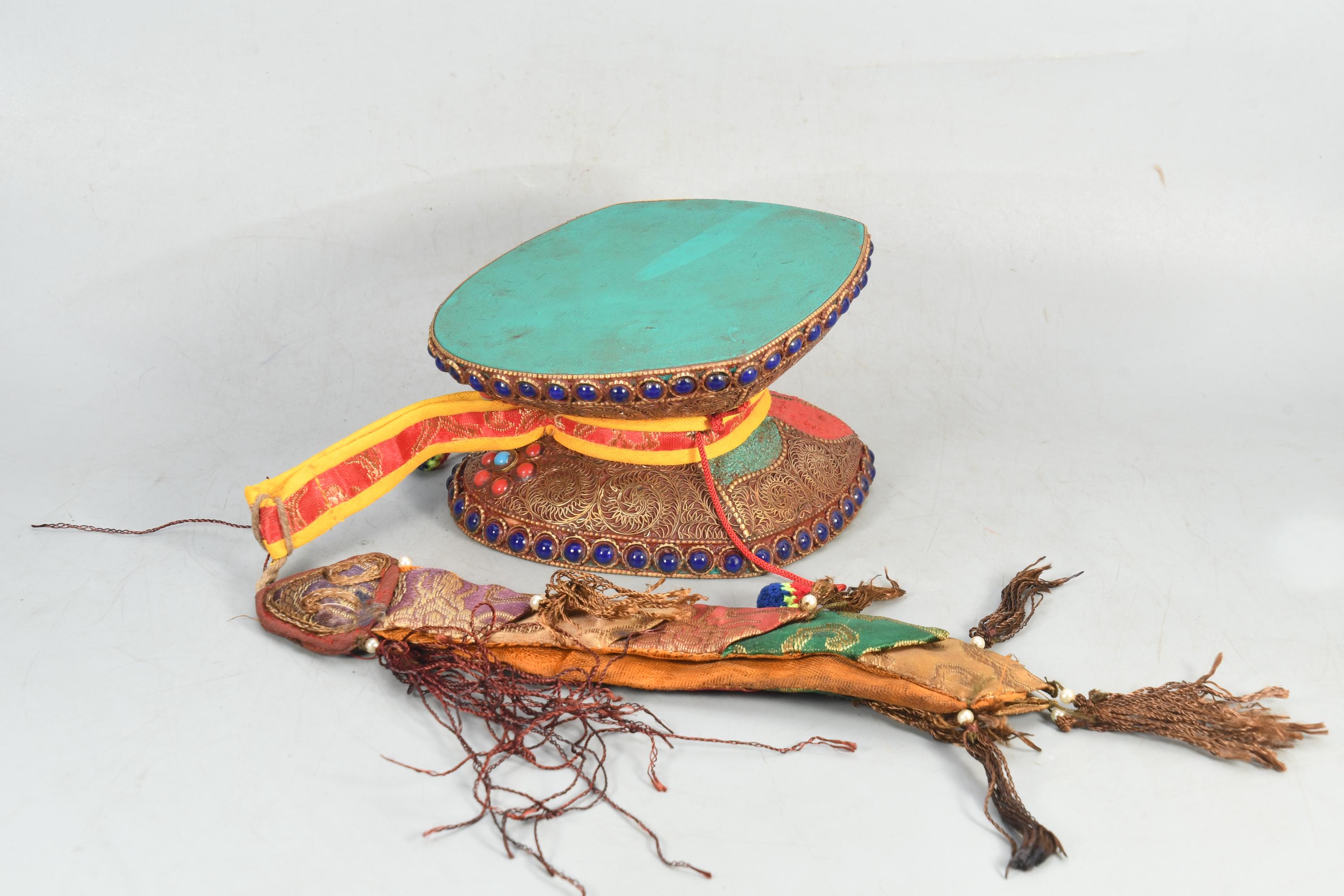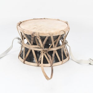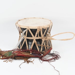 This item was sourced near the mountain district near tibet from Nepal it comes with a drum cover for safety and carrying silk cloth .