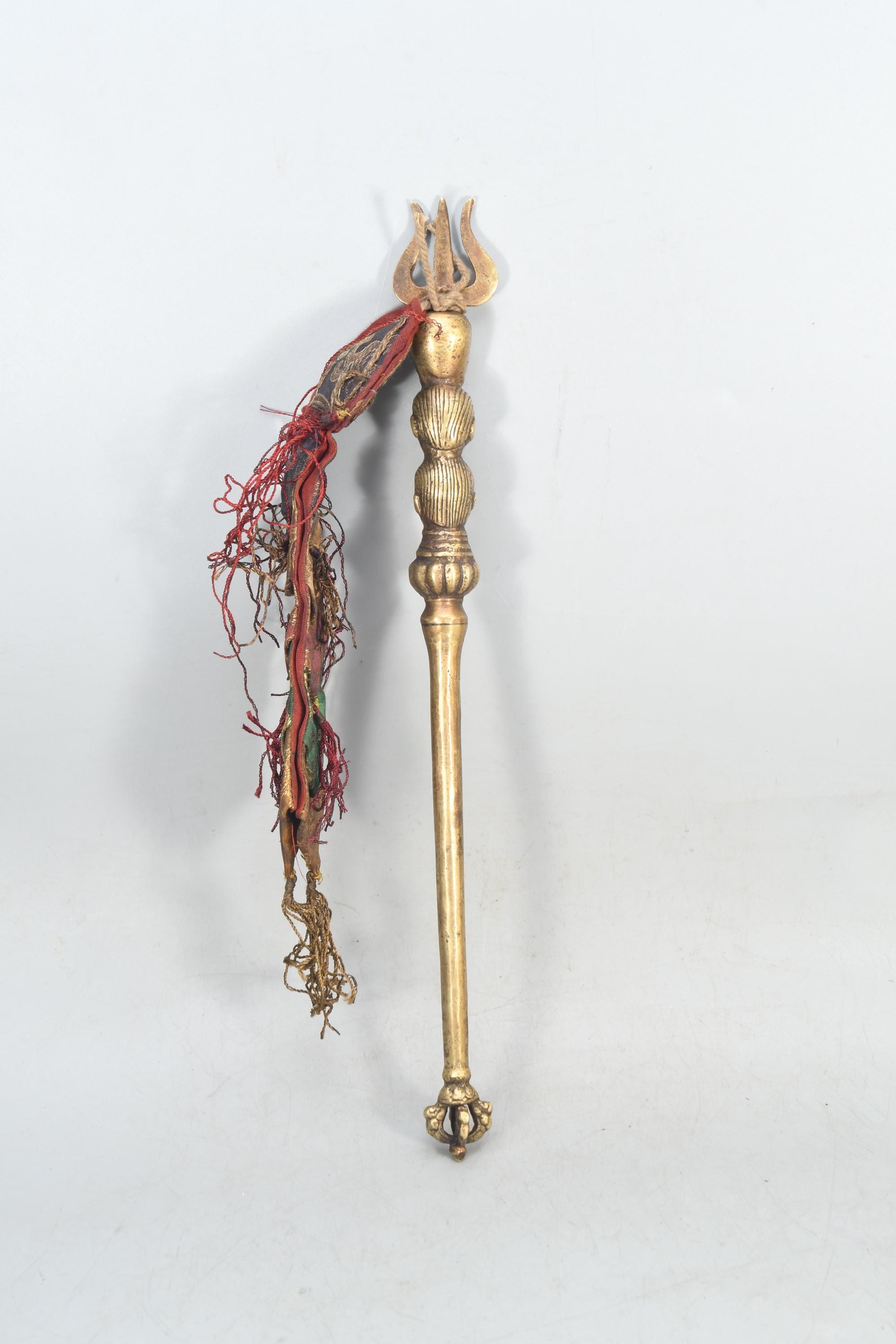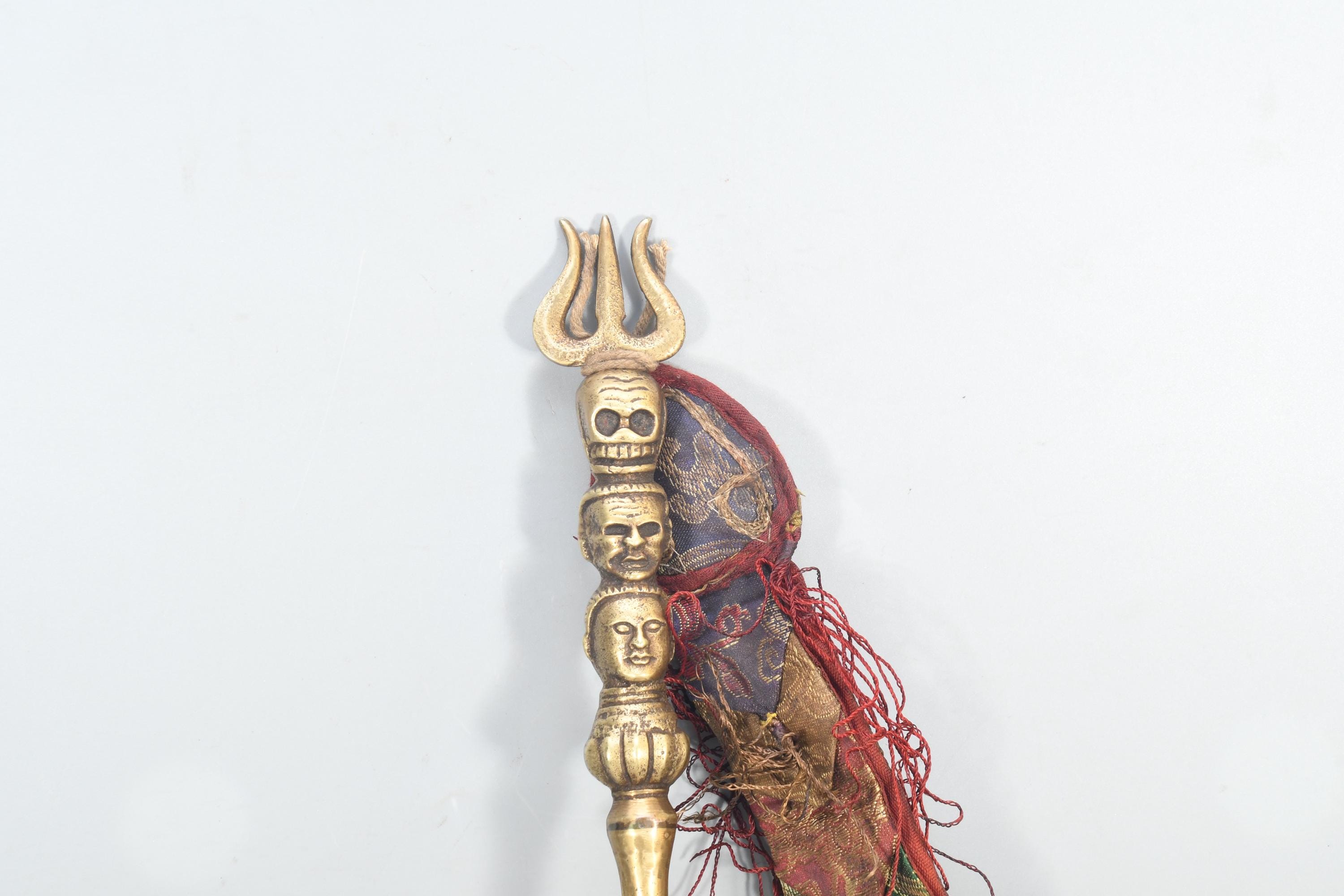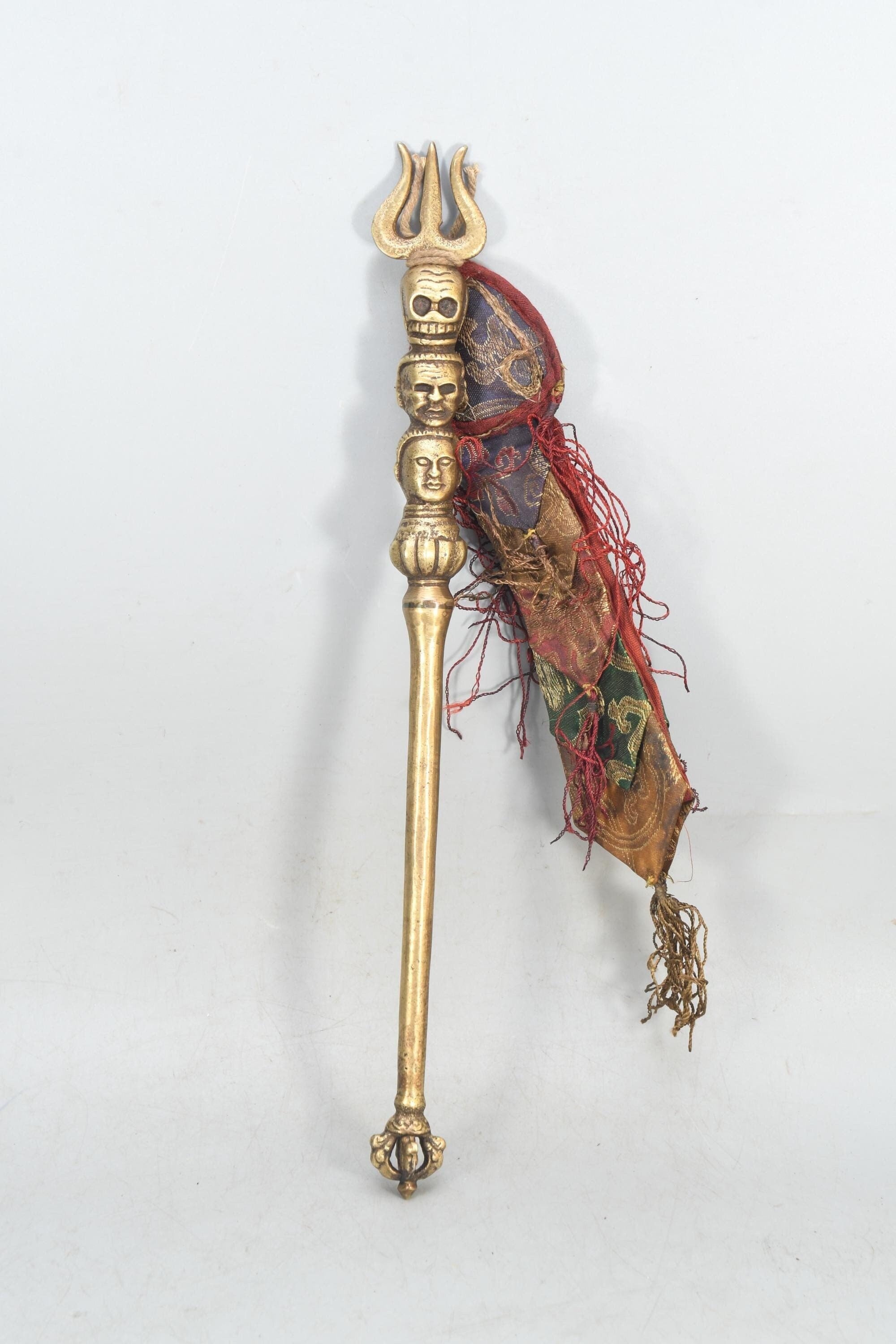Antique Brass Khatvanga – Tibetan Triple Skull Dagger, Nepal