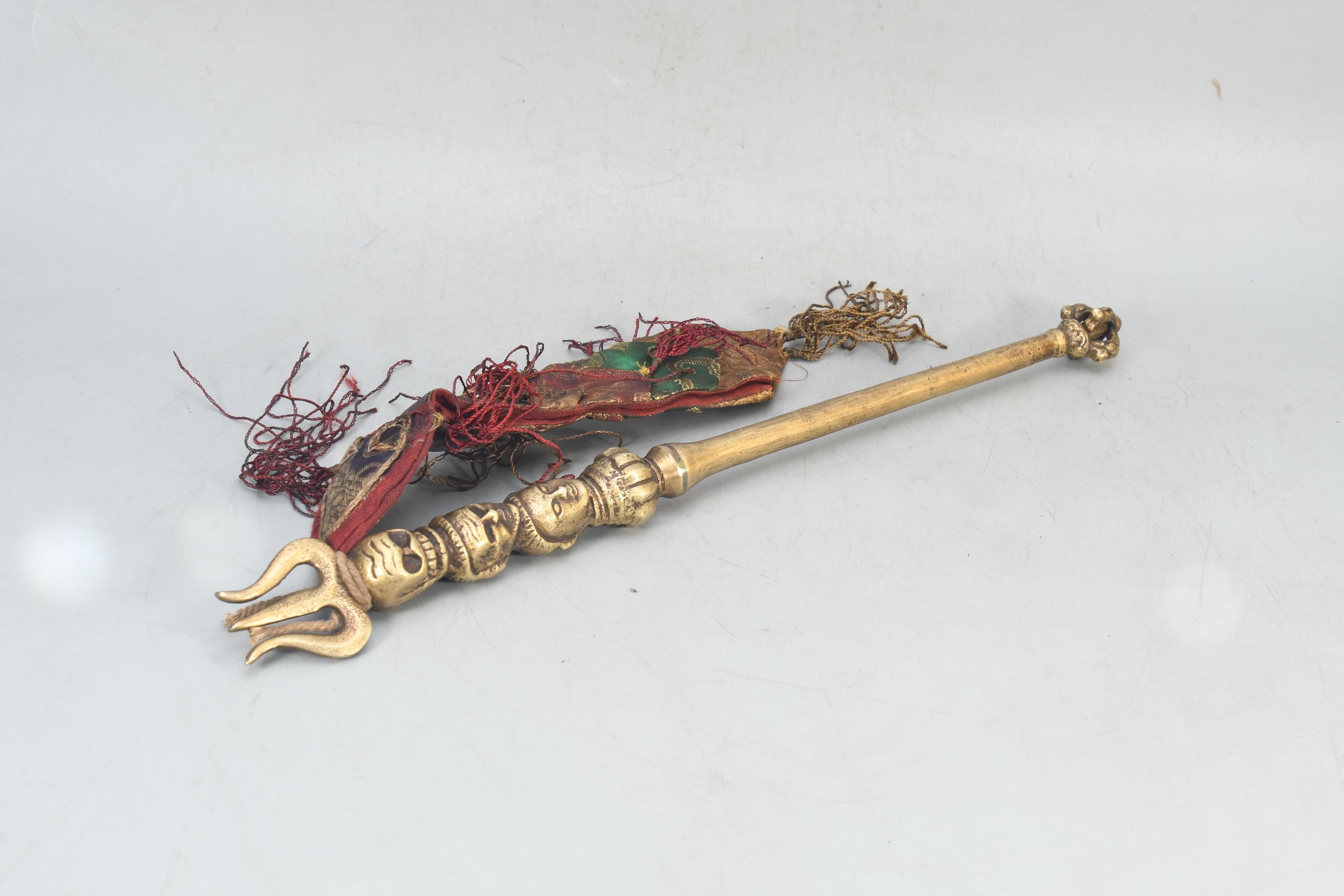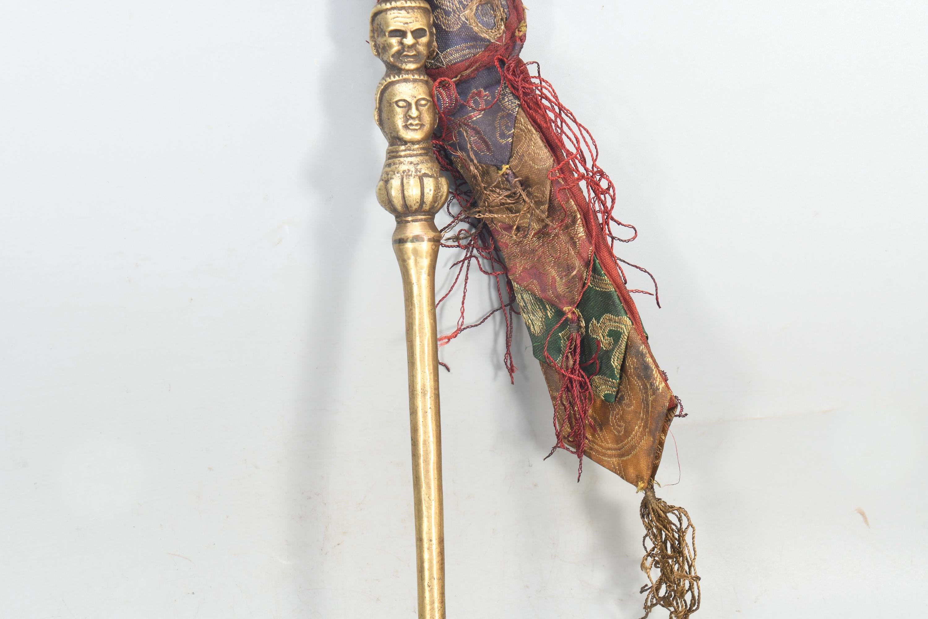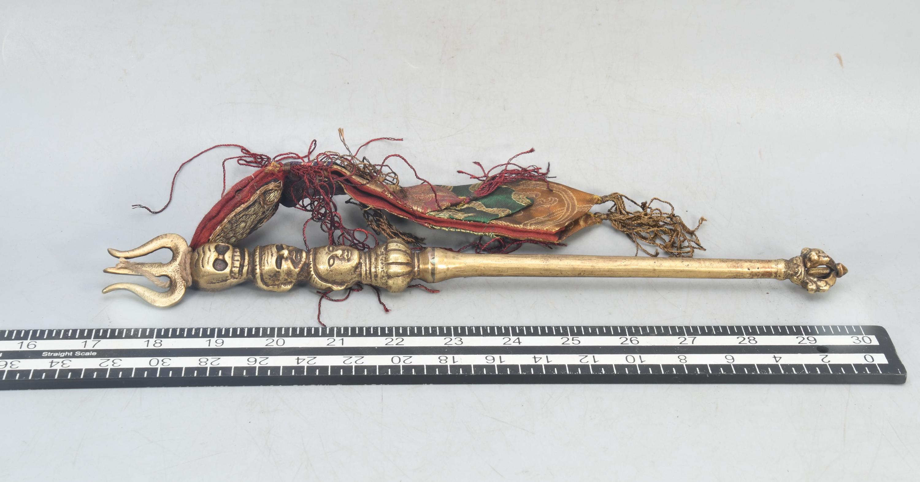 Antique Brass Khatvanga – Tibetan Triple Skull Dagger, Nepal