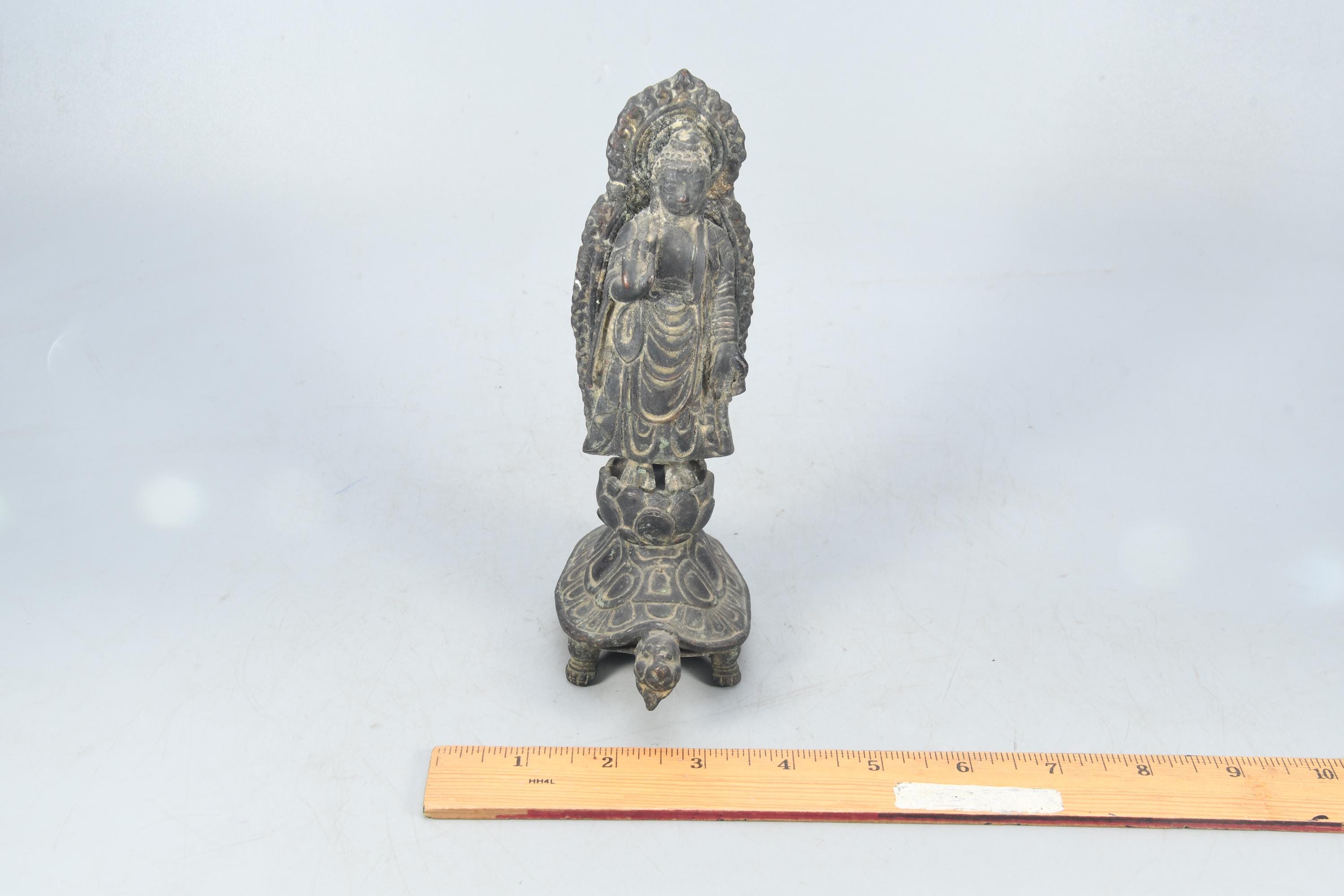 Handmade Brass Lord Buddha on Tortoise | Antique Carved Vintage Sculpture | Home Décor Figurine