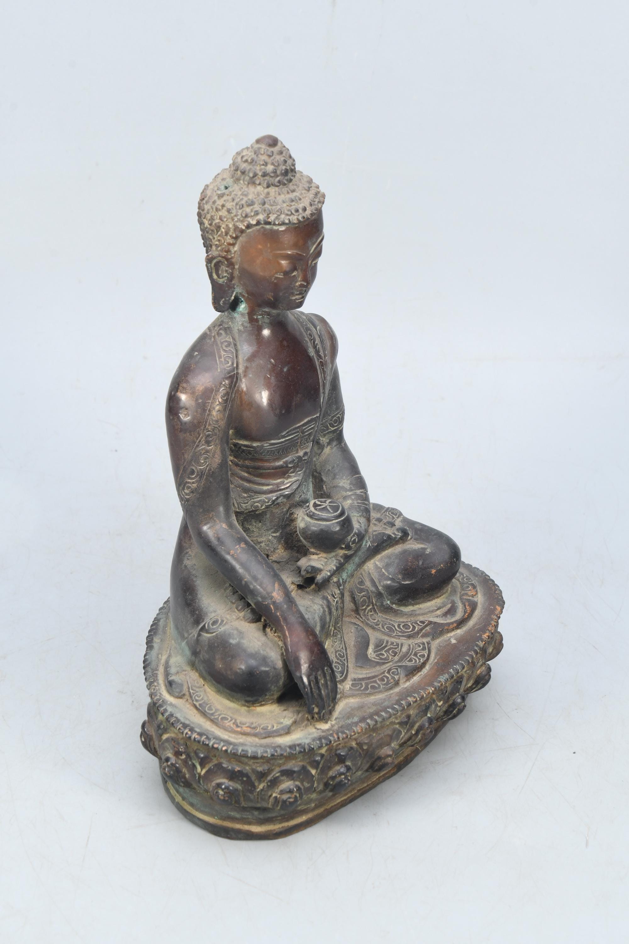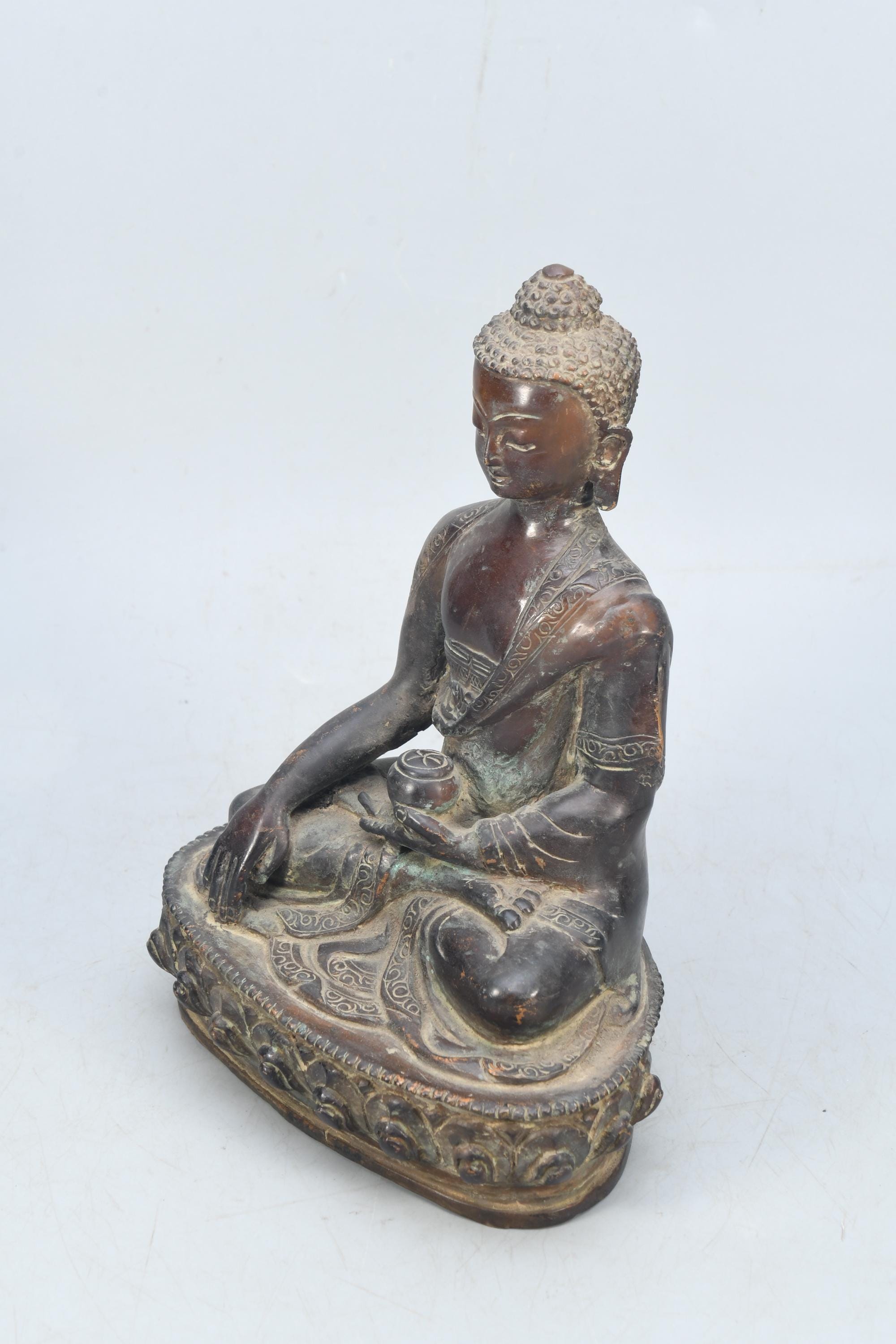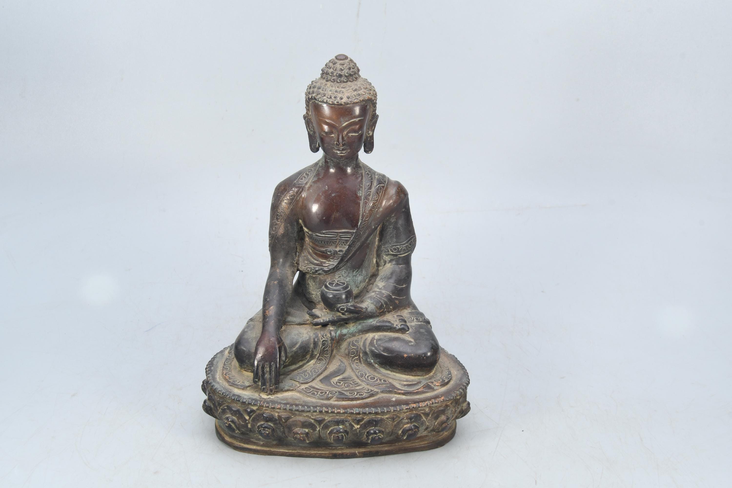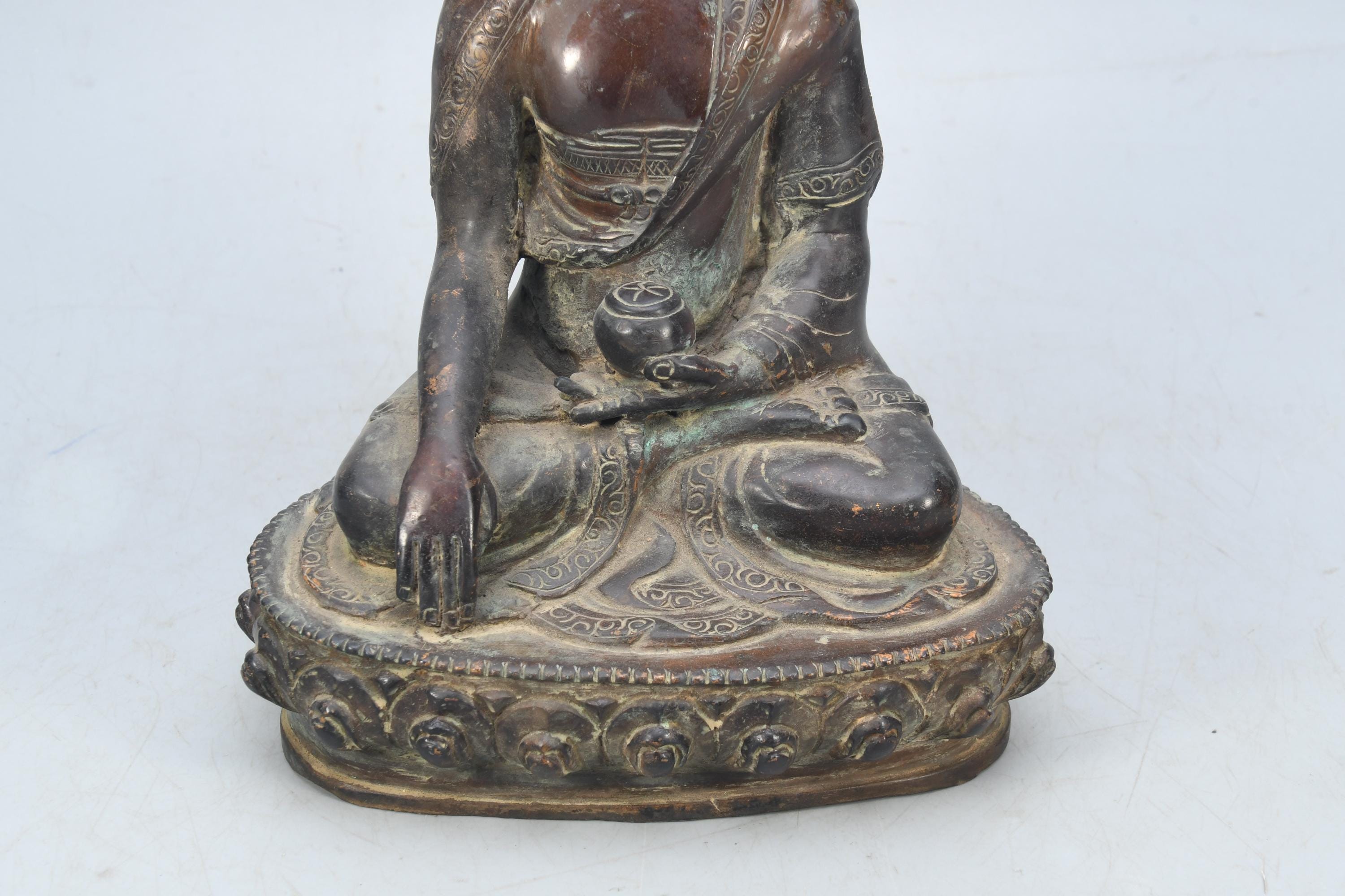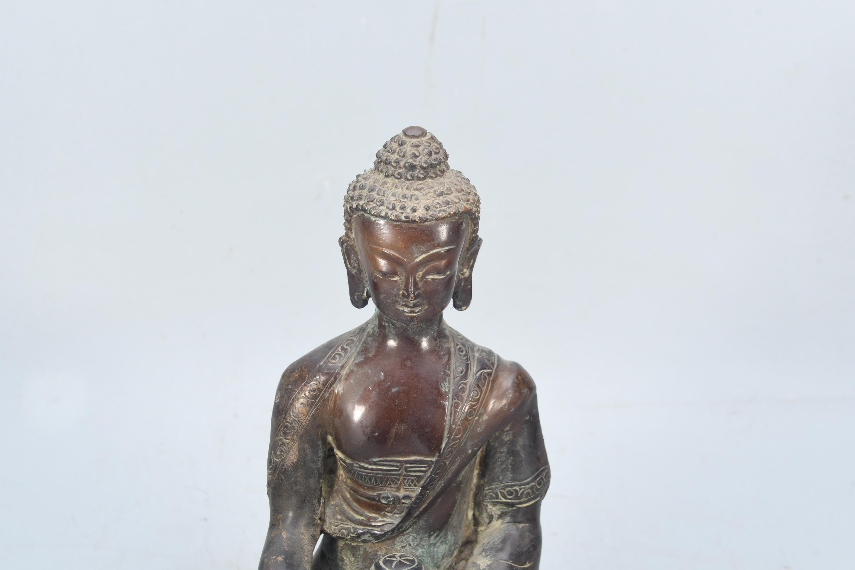 An absolutely astonishing one-of-a-kind Shakyamuni Buddha statue! We've never seen anything quite like it. Handmade in Nepal by a 4th and 5th generation crafting family, the statue is made of hand carved quartz crystal that is wrapped in bronze and then gold-plated. It is hand detailed and expertly carved by master craftsmen. This process takes considerable time and skill. The details are truly incredible, including pieces of hand inlaid antique coral and intricately etched designs.