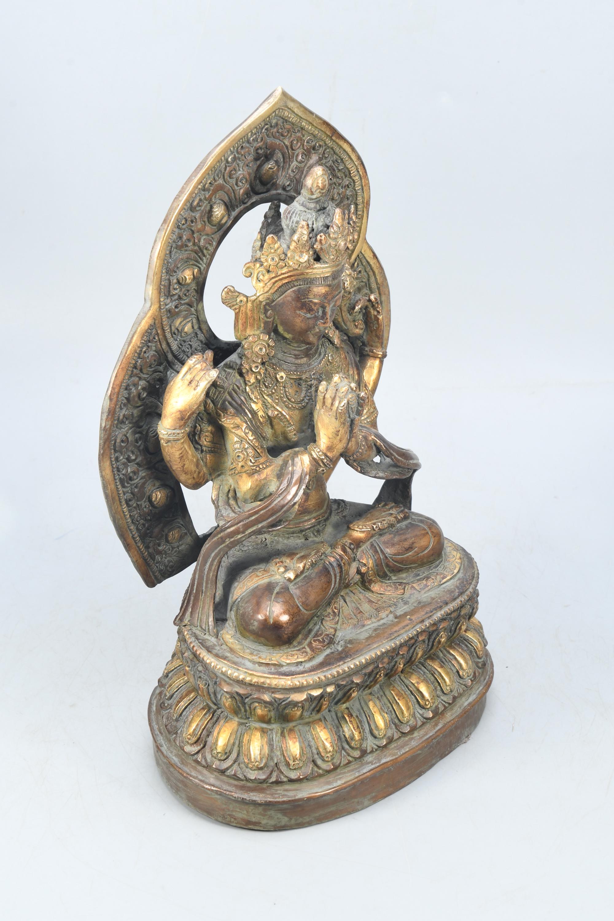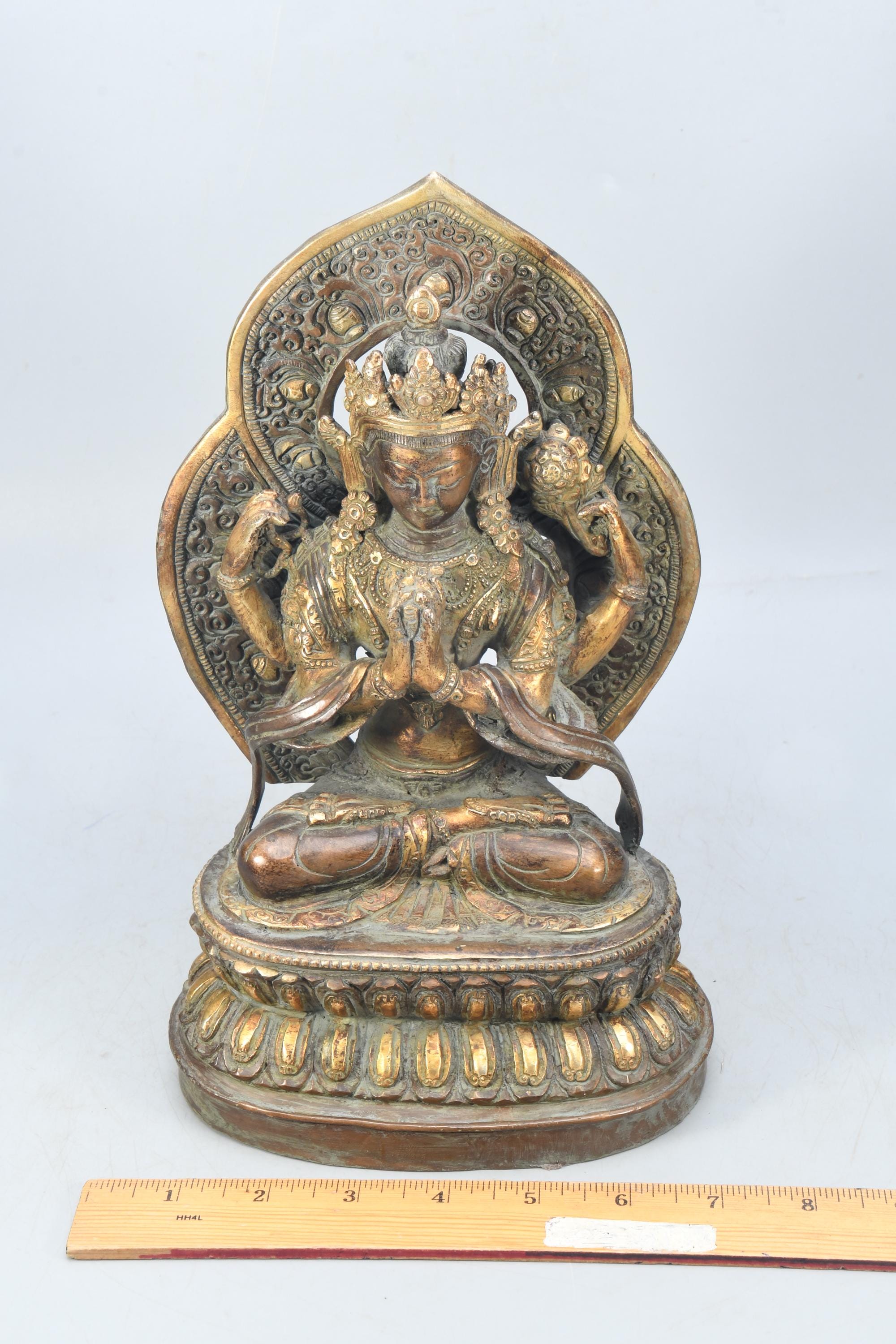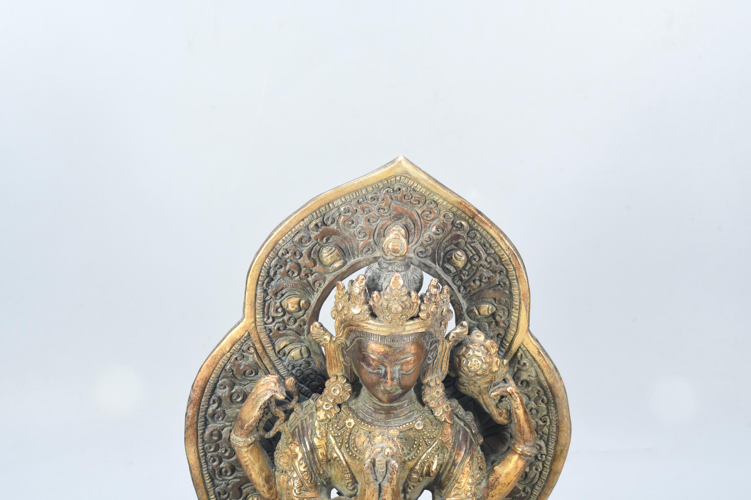 He is the earthly incarnation of the celestial Buddha Amitabha, and he guards our world during the interval between the historical Buddha, Shakyamuni, and the future Buddha, Maitreya. Chenrezig is universally cherished in all branches of Buddhism and is considered the patron Bodhisattva of Tibet. Even in non-Buddhist countries, most people are familiar with his mantra Om Mani Padme Hum. Chenrezig courageously vowed that so long as even one being remains caught in samsara, he will continue to work for the benefit of living creatures. His wisdom, compassion, and endurance know no bounds, and he is especially revered for granting realizations and spiritual attainments to those who meditate upon him.
