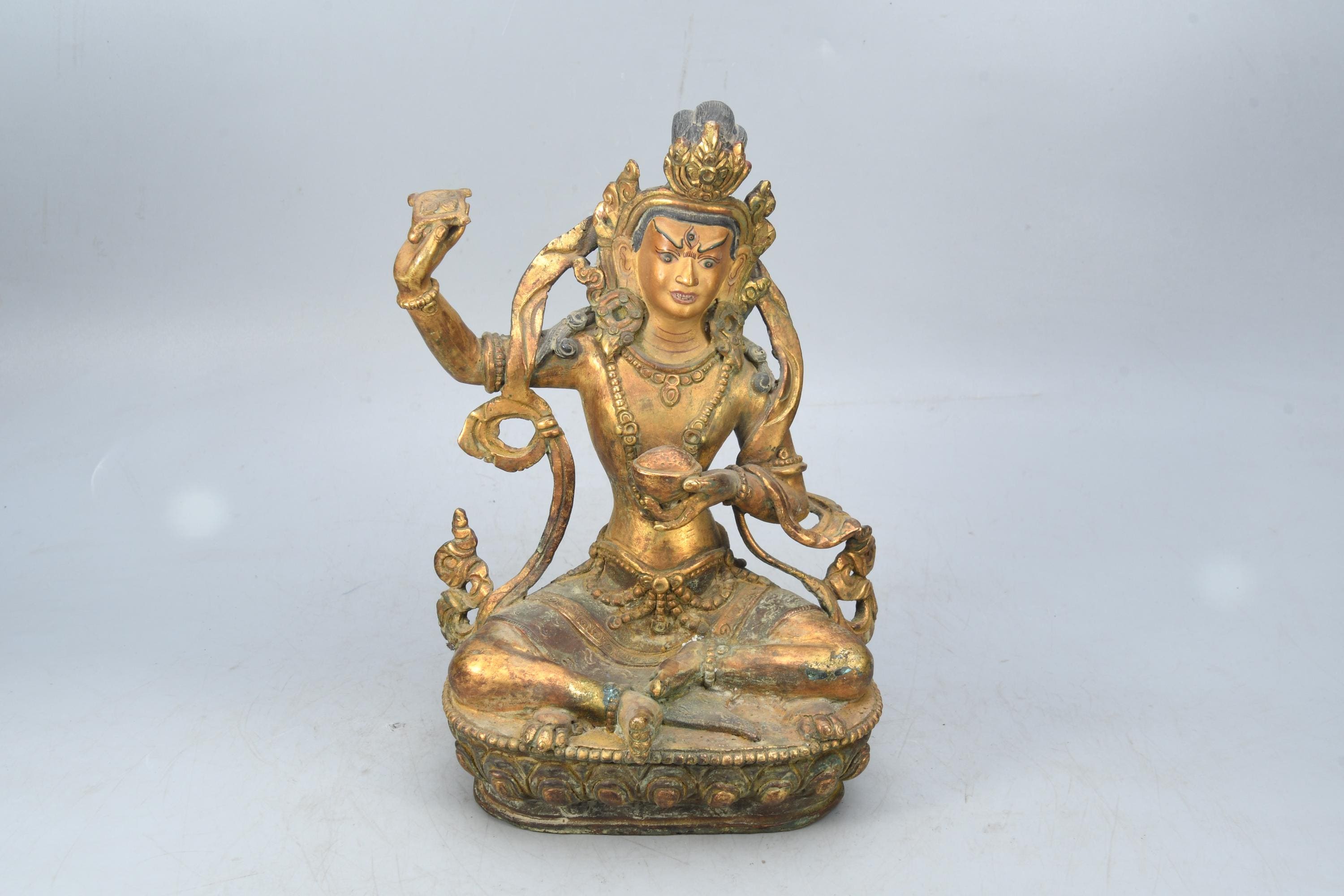 Gold Gilded Green Tara Statue – Handmade Tibetan Buddhist Goddess Figurine
