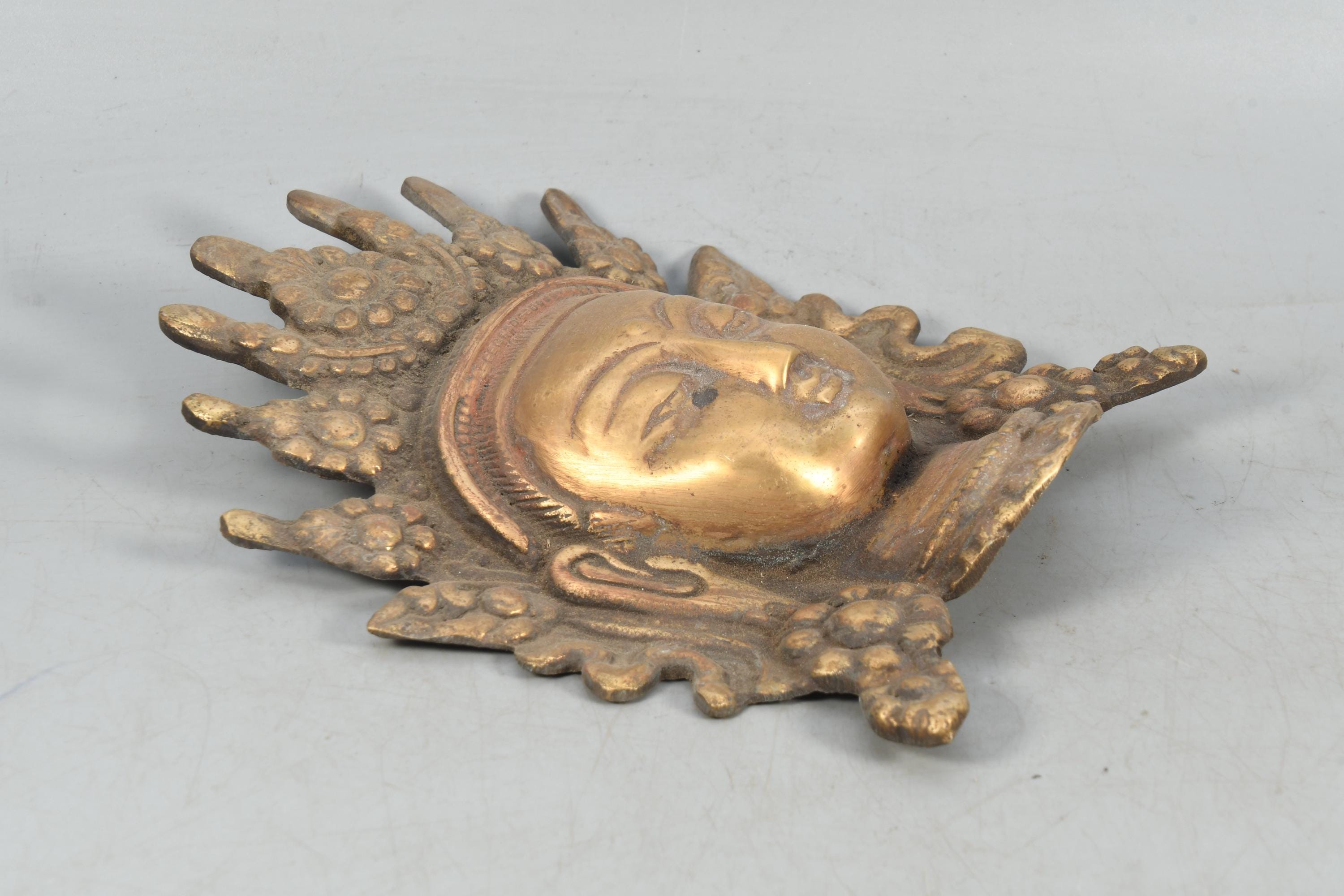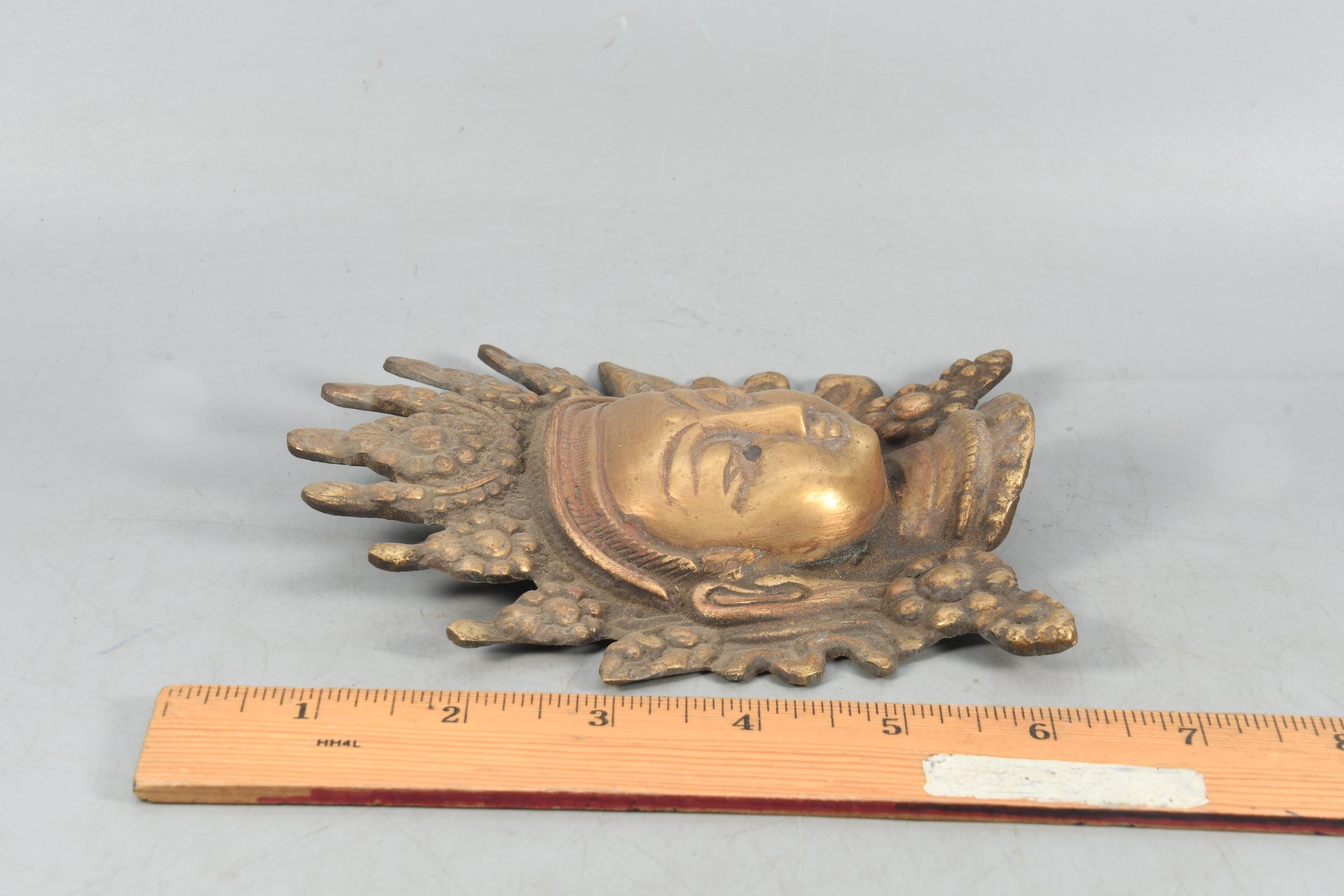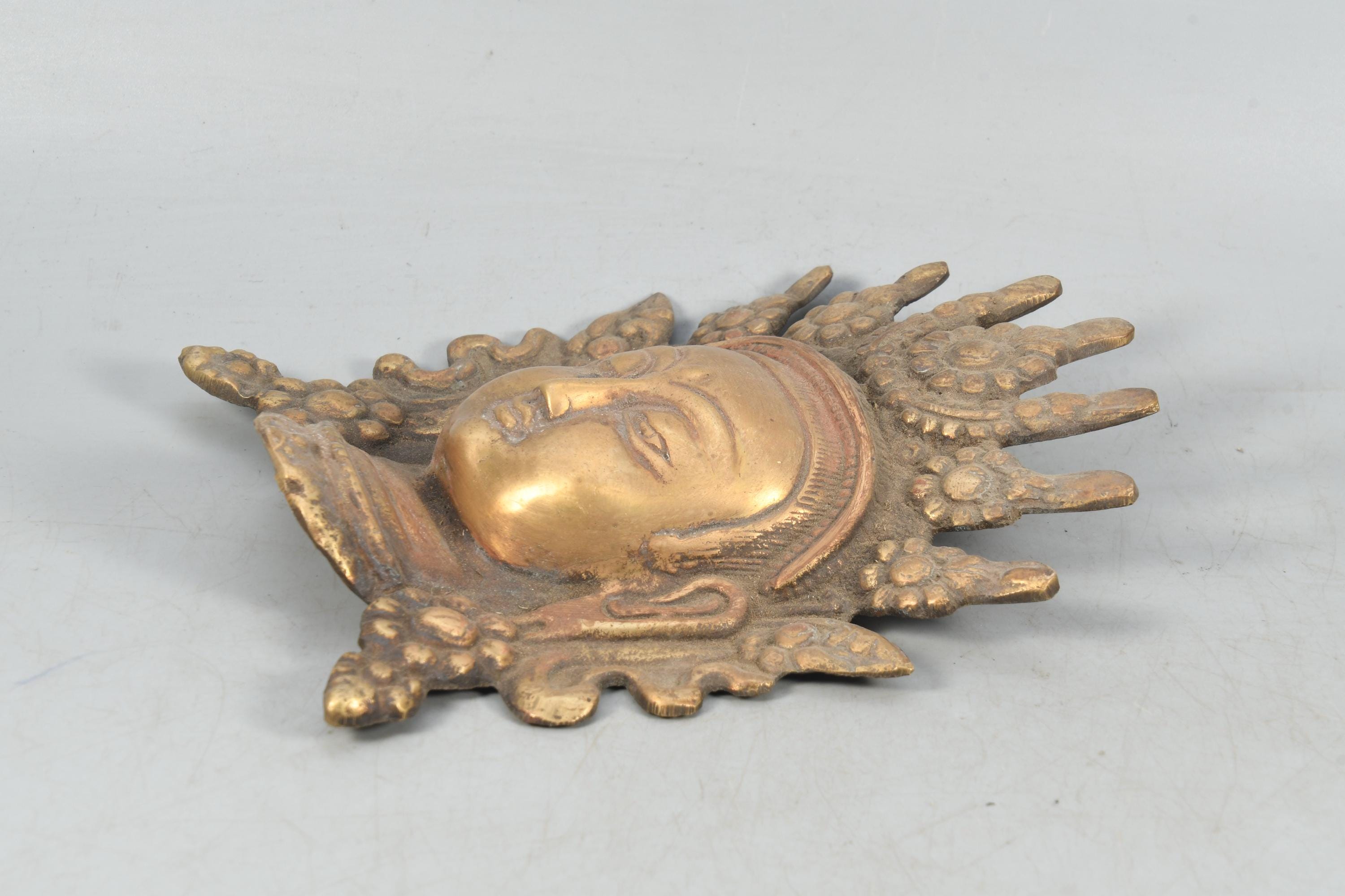 Brass Lord Buddha Head - Antique Handmade Tibetan Wall Hanging | Vintage Carved Art Decor