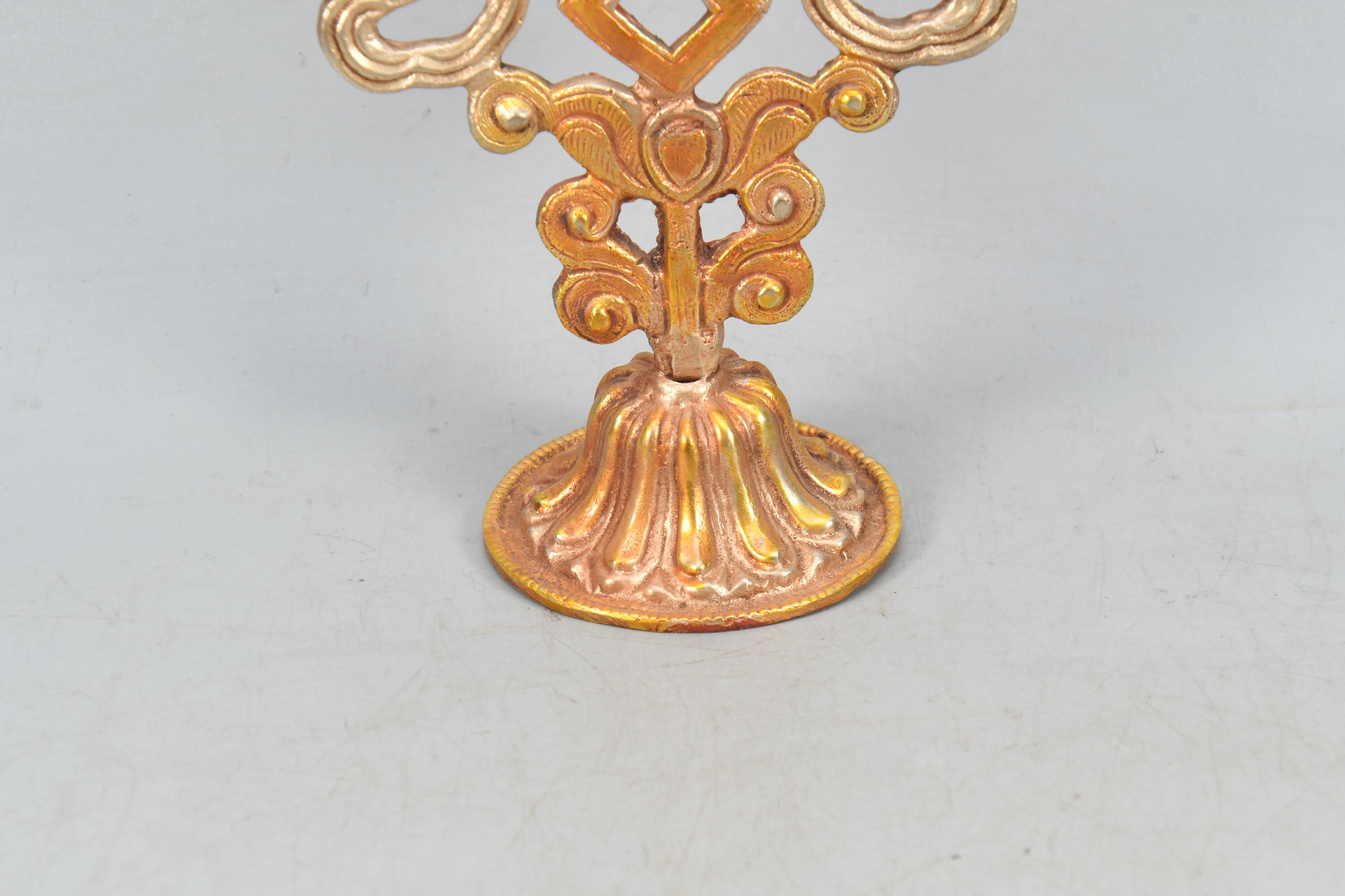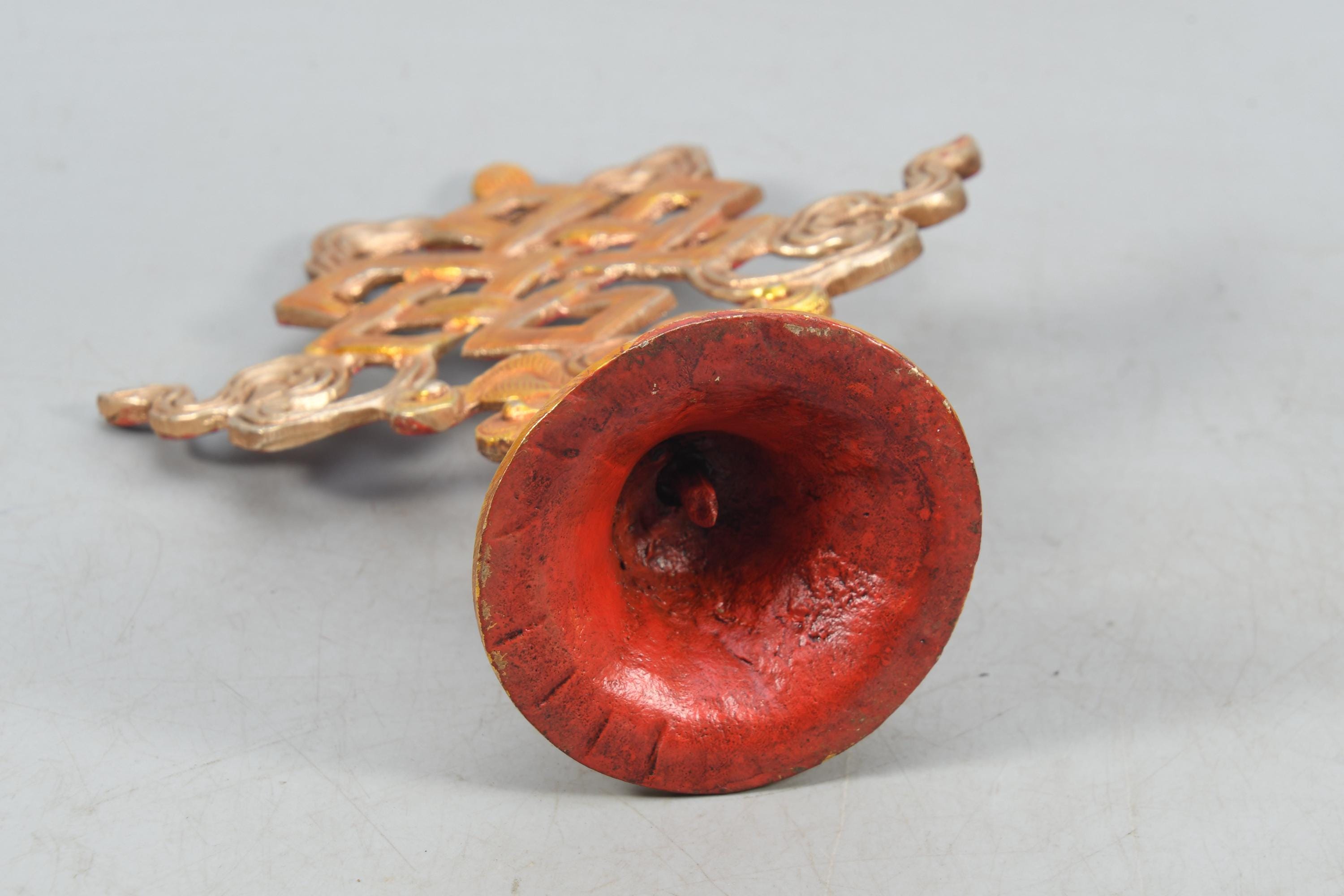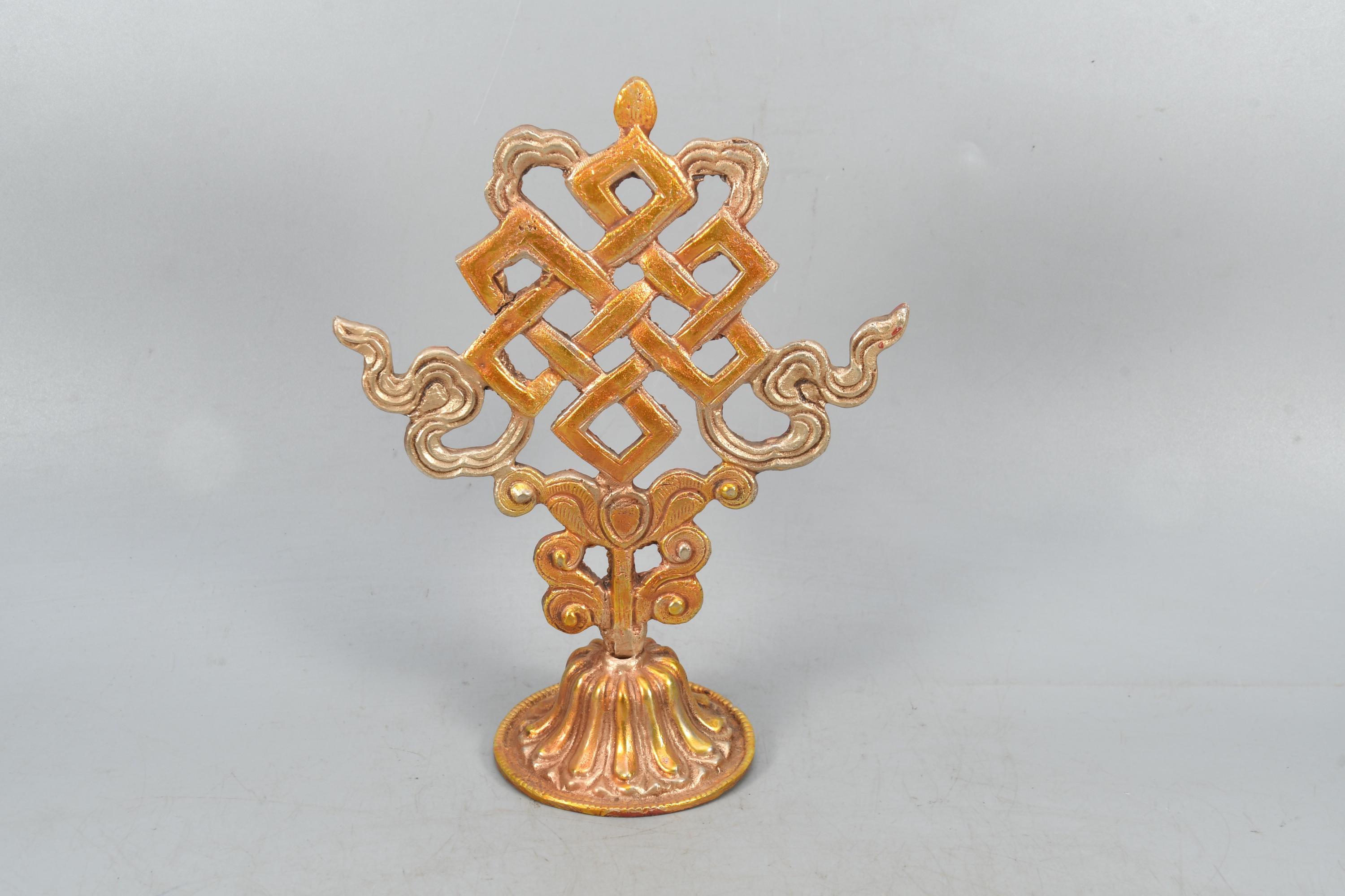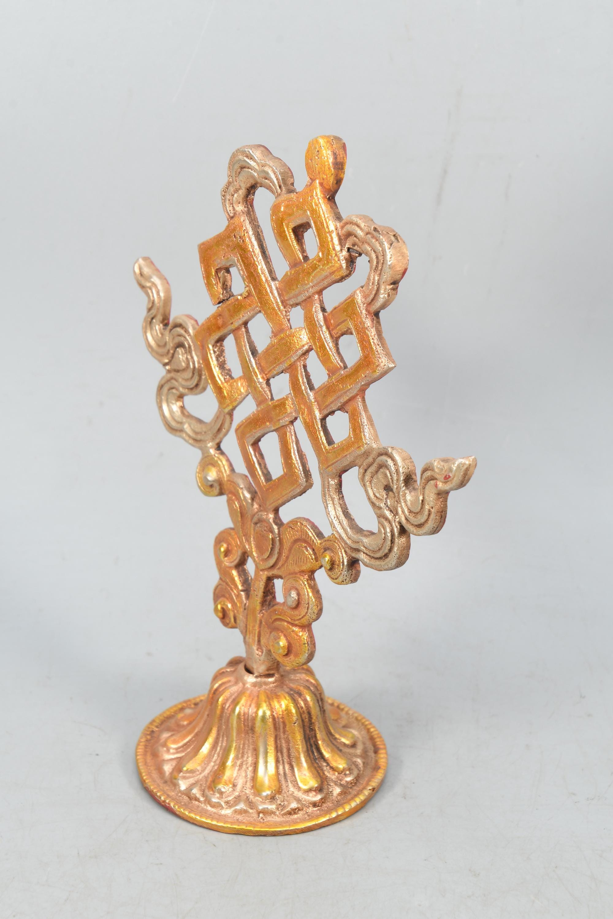 Antique Handmade Gold Colored Endless Knot | Vintage Tibetan Buddhism Symbol | Auspicious Carved Art Decor
