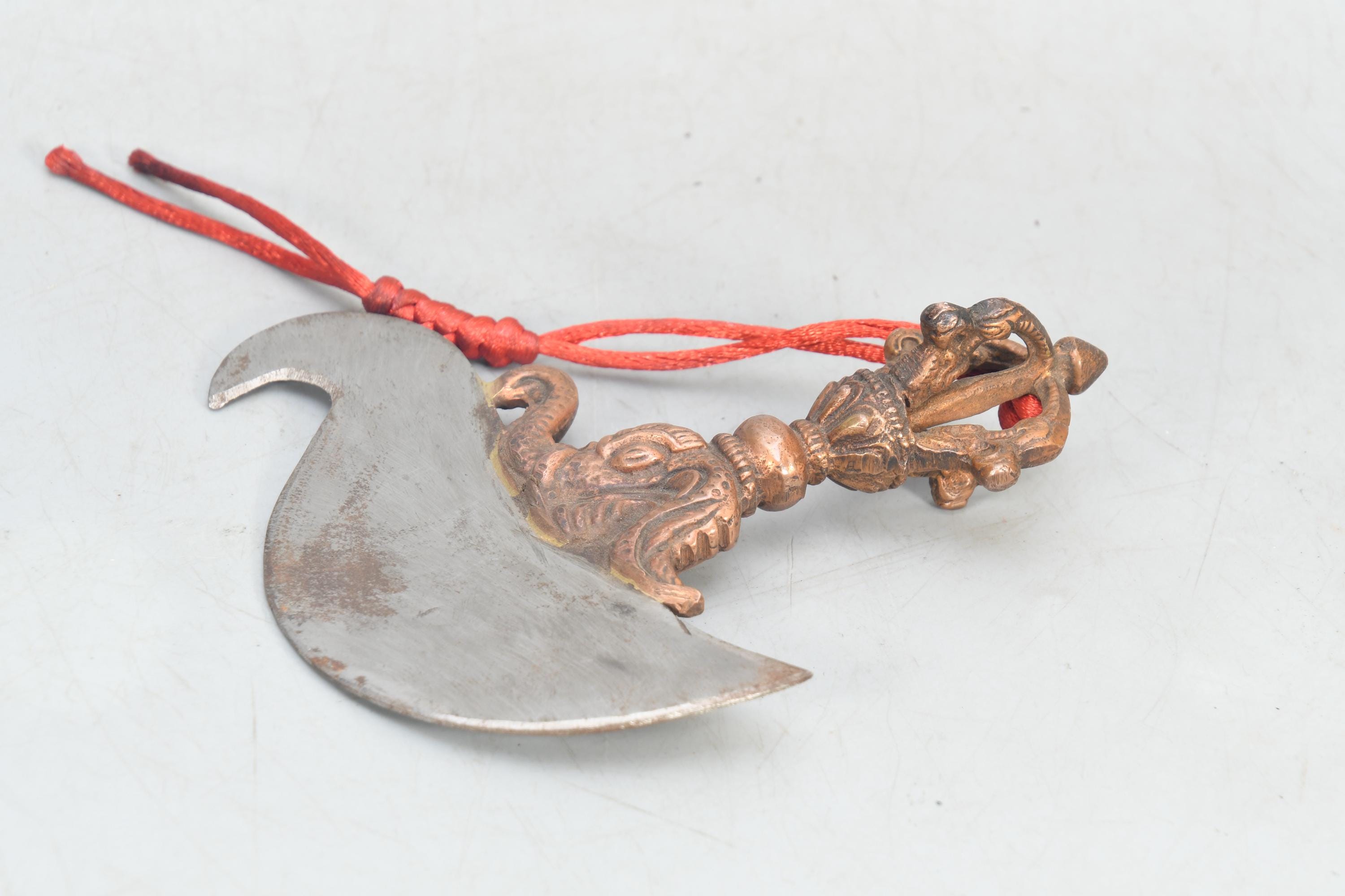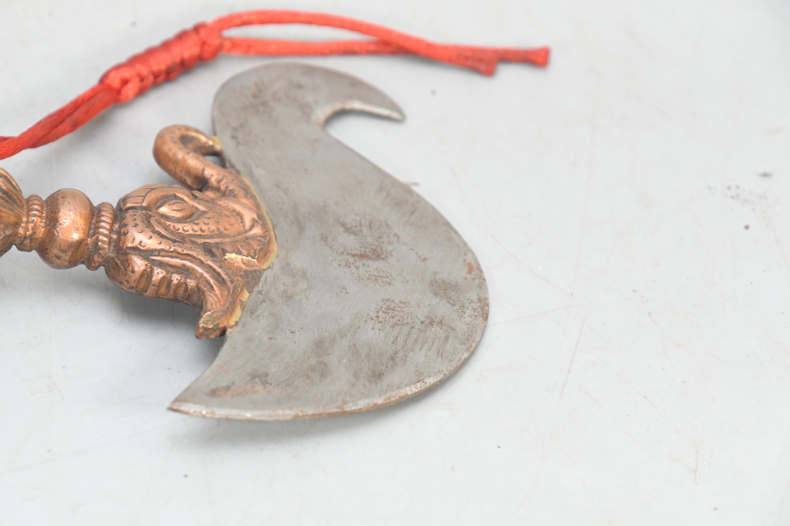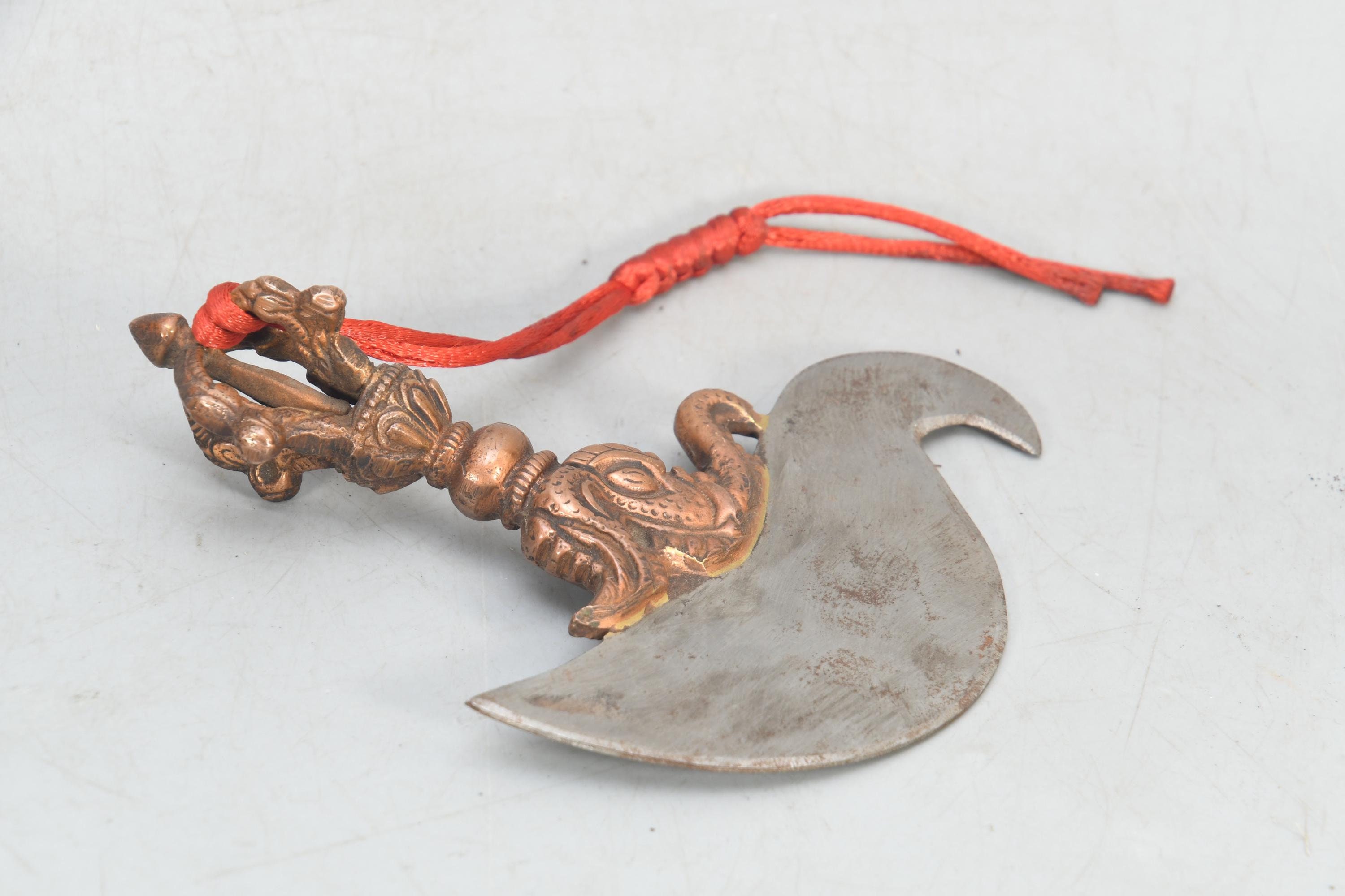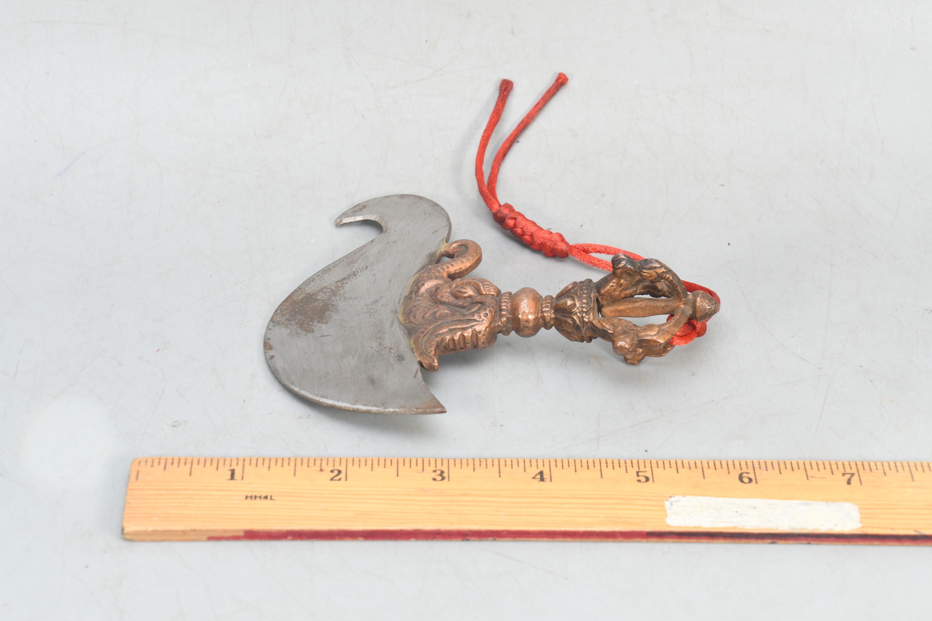 Handmade Copper Antique Tibetan Tantric Axe Wand | Khatvang Kartika Weapon Dagger | Vintage Spiritual Tool