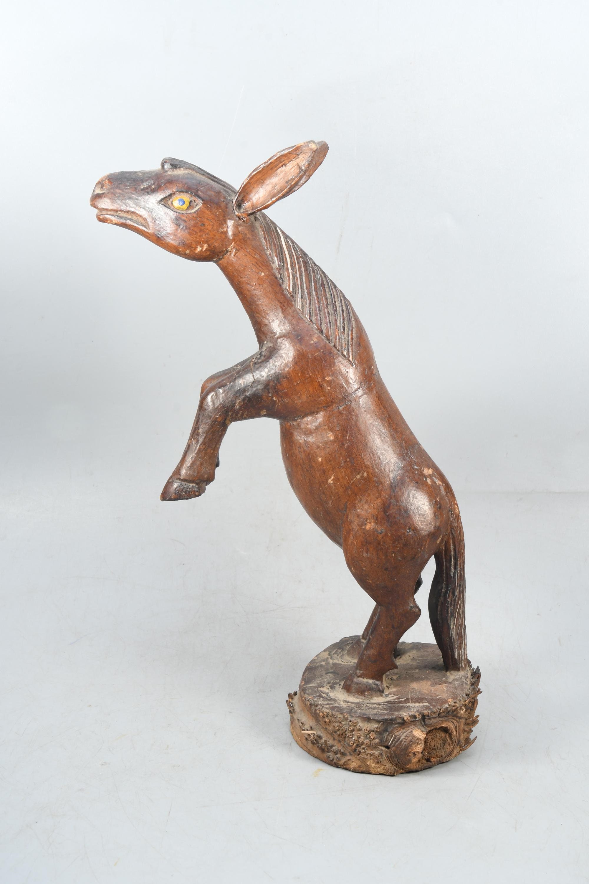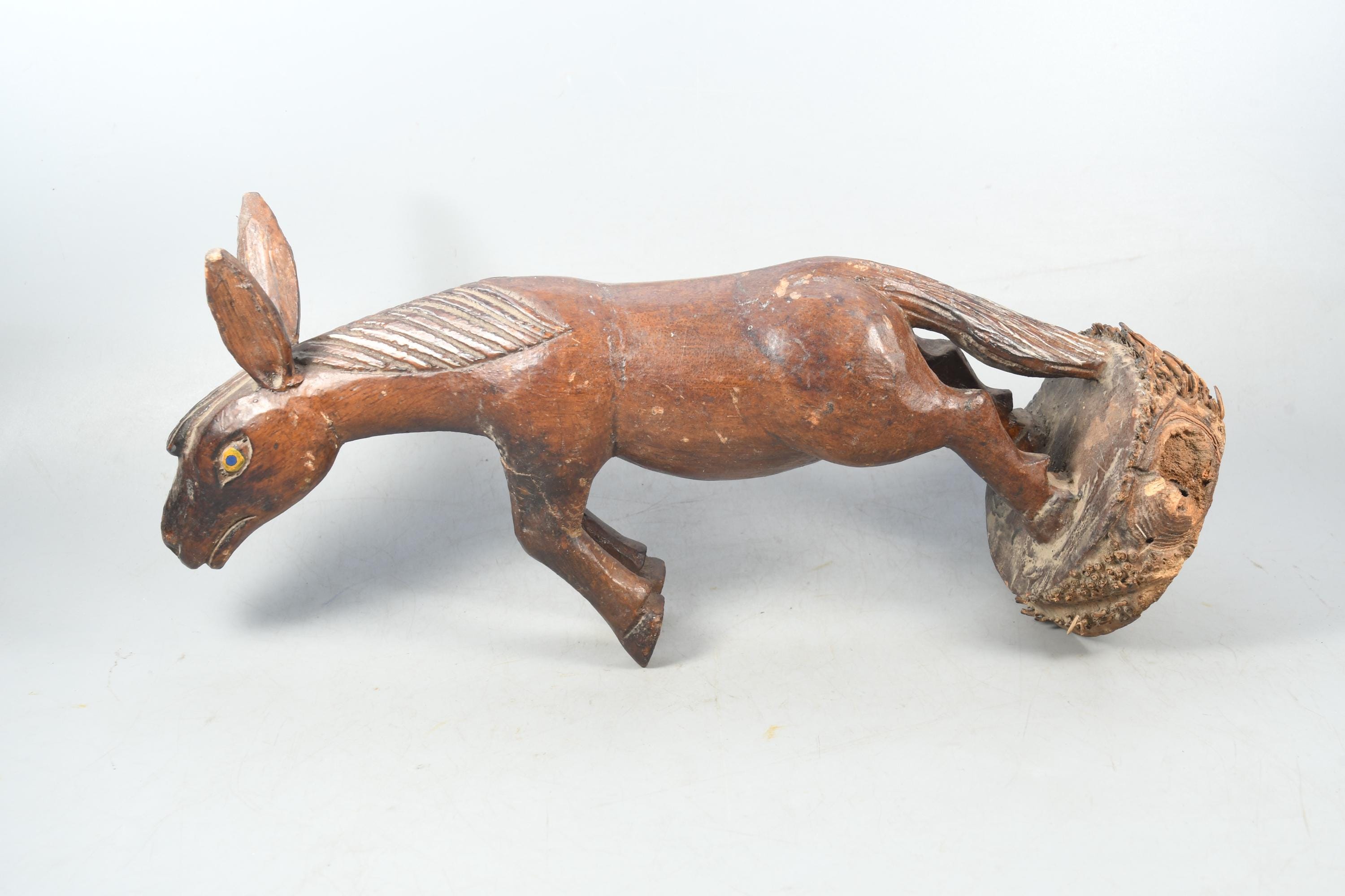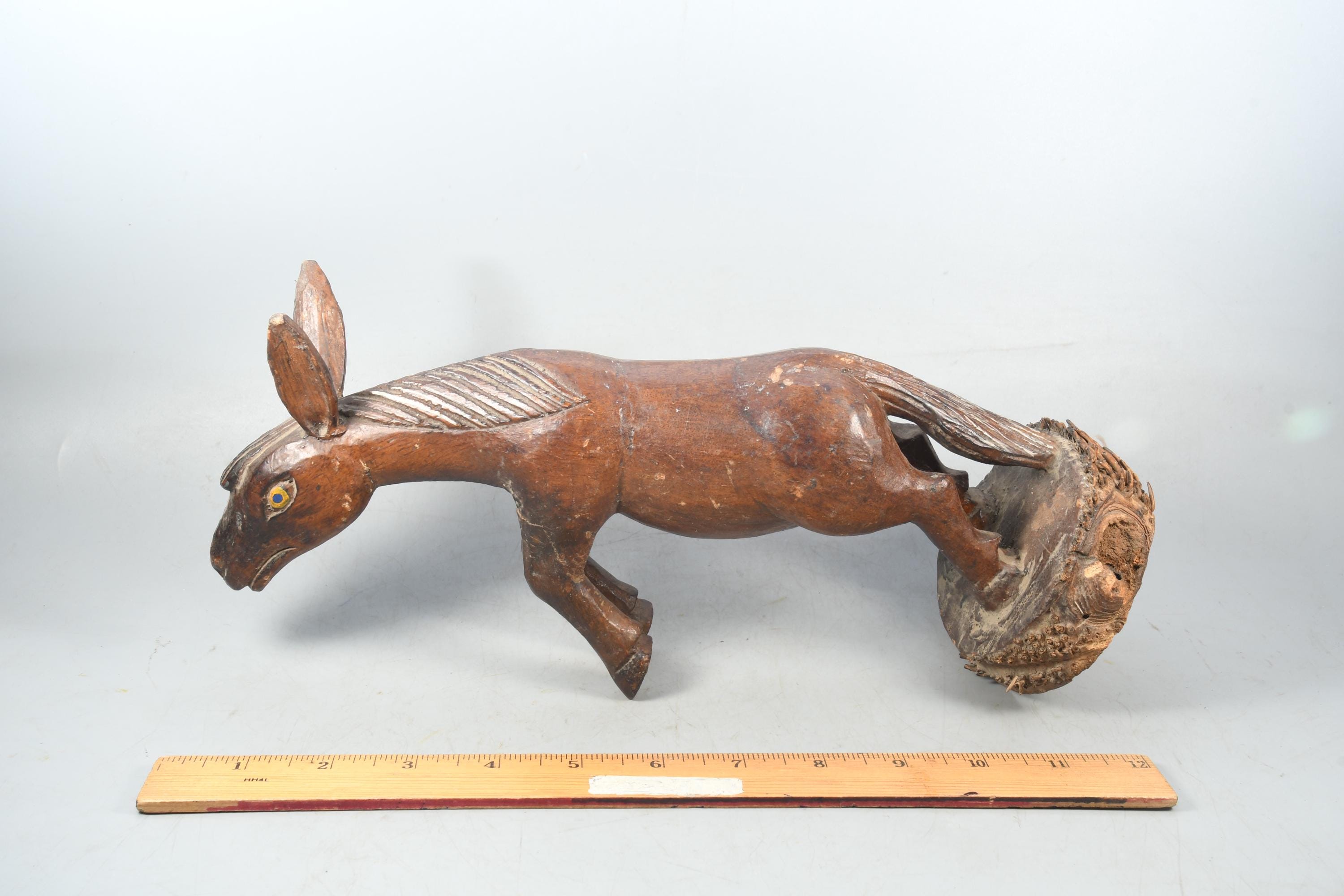 Hand-Carved Wooden Donkey Statue - Tibetan Vintage Souvenir Figurine - Antique Handmade Decorative Collectible