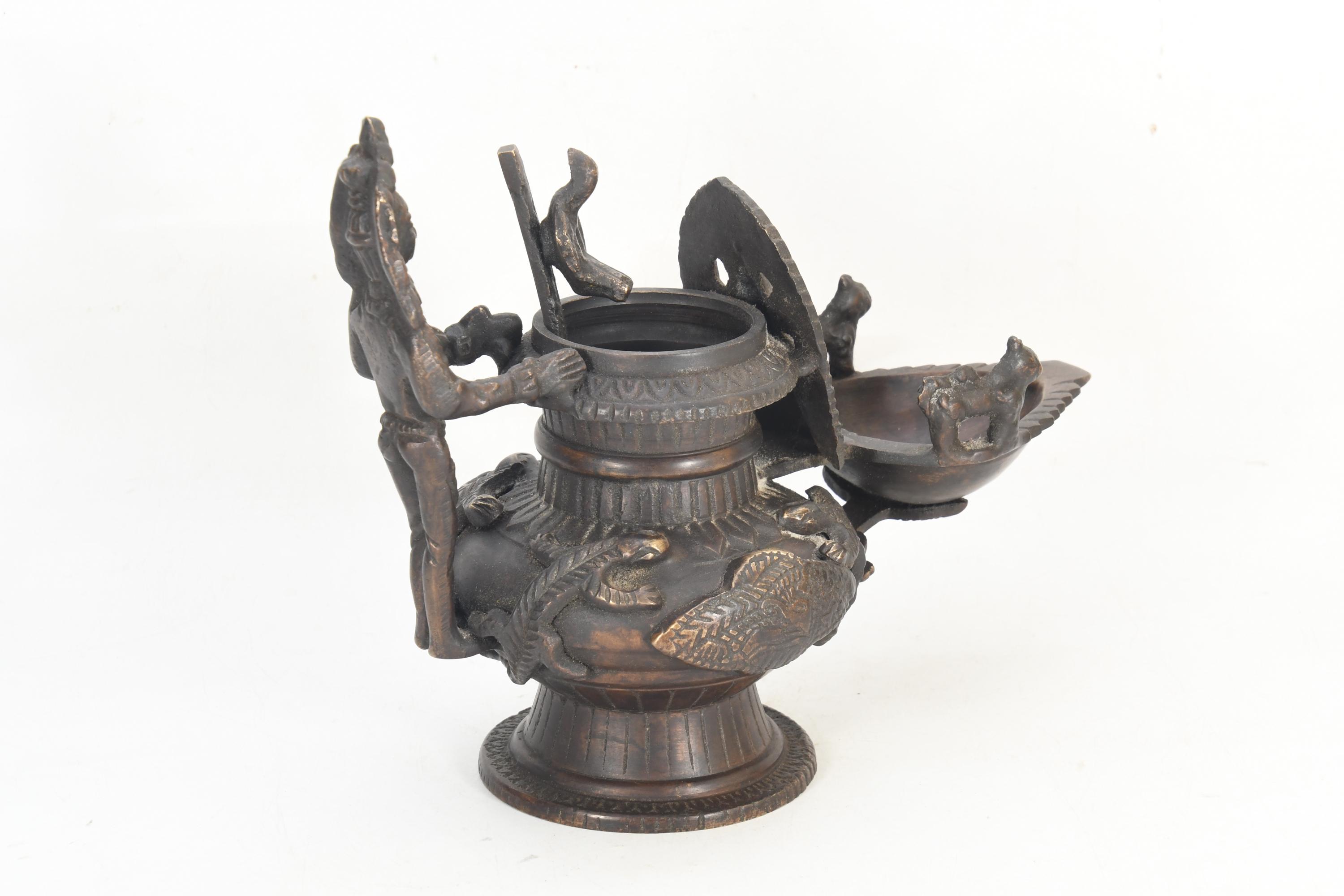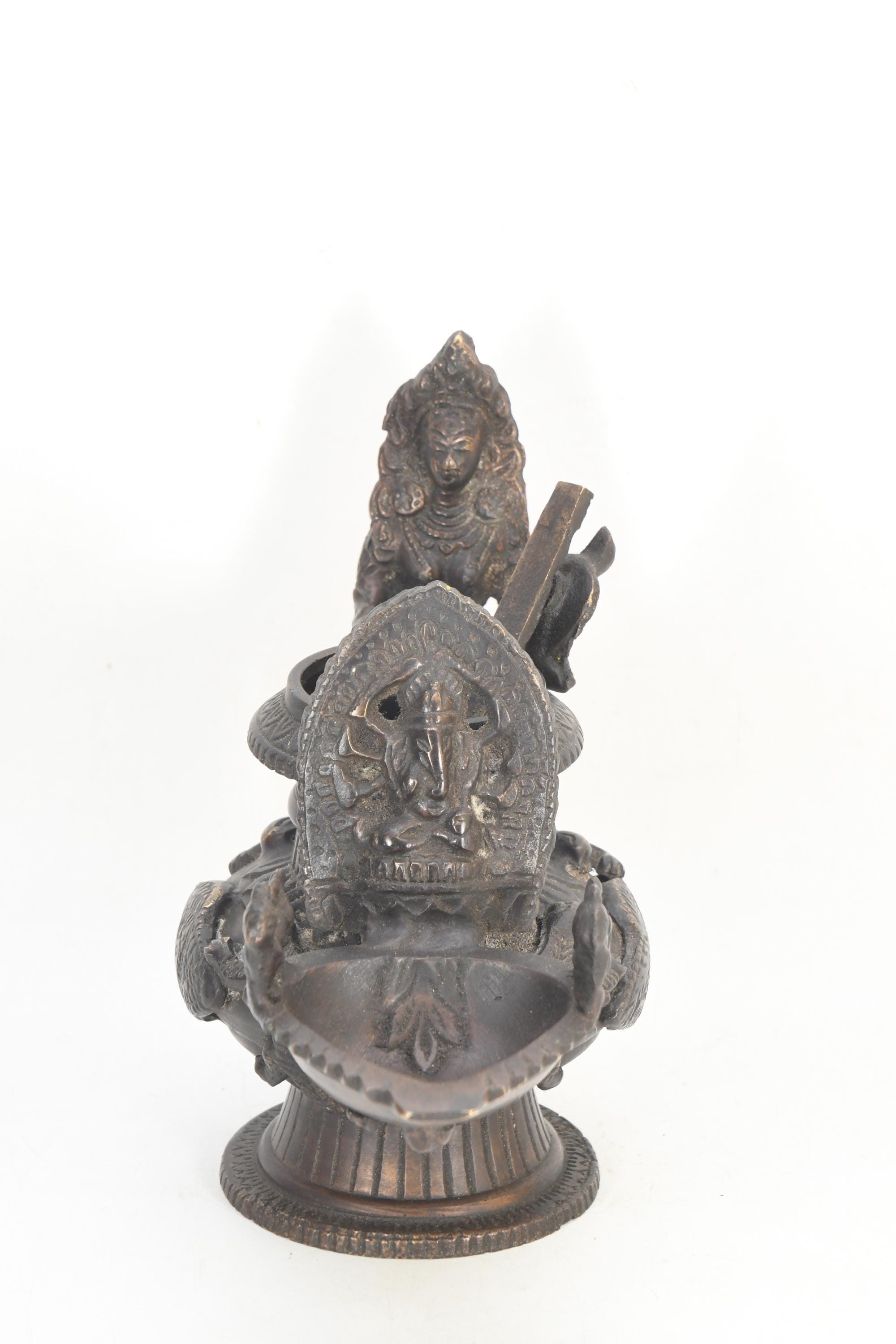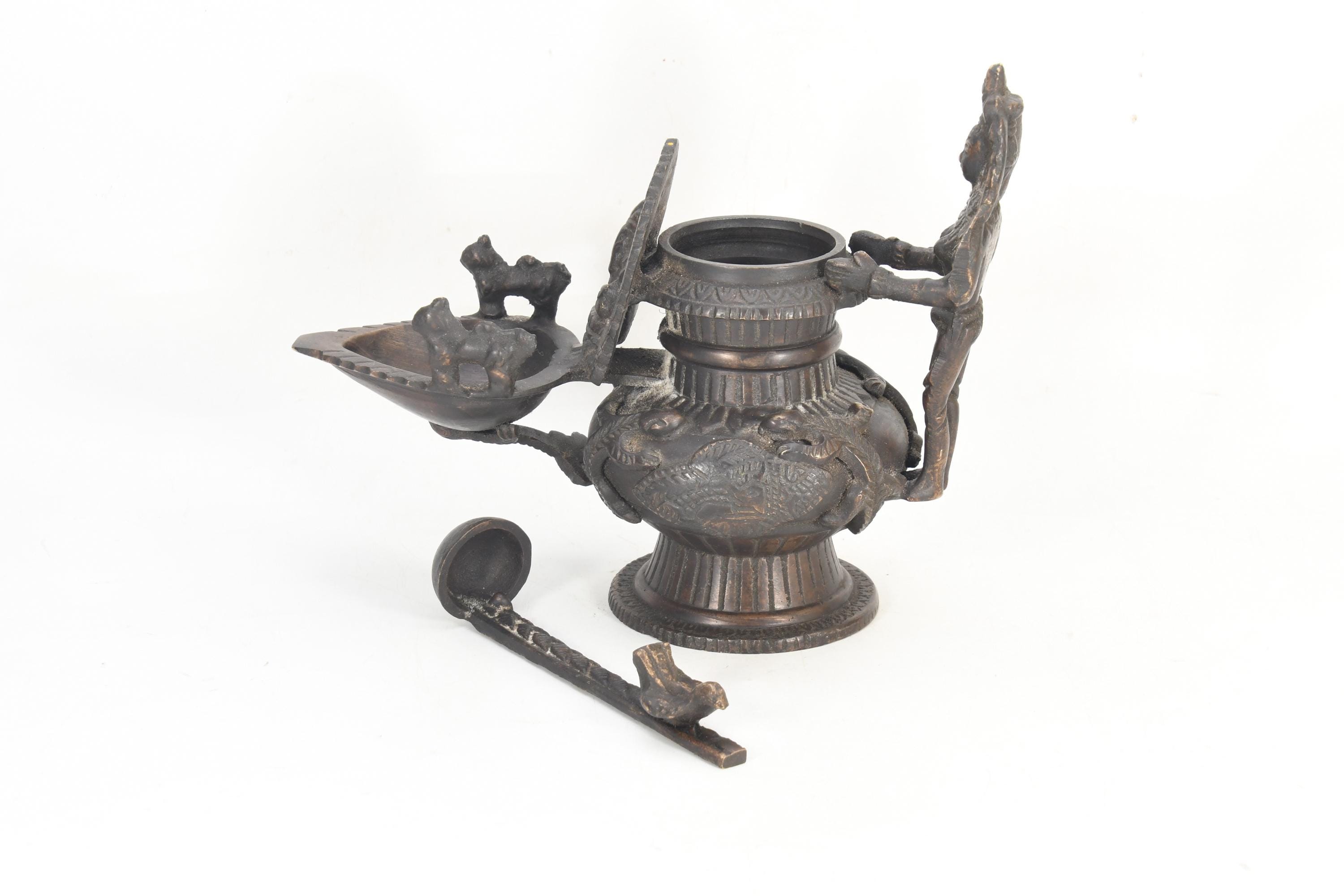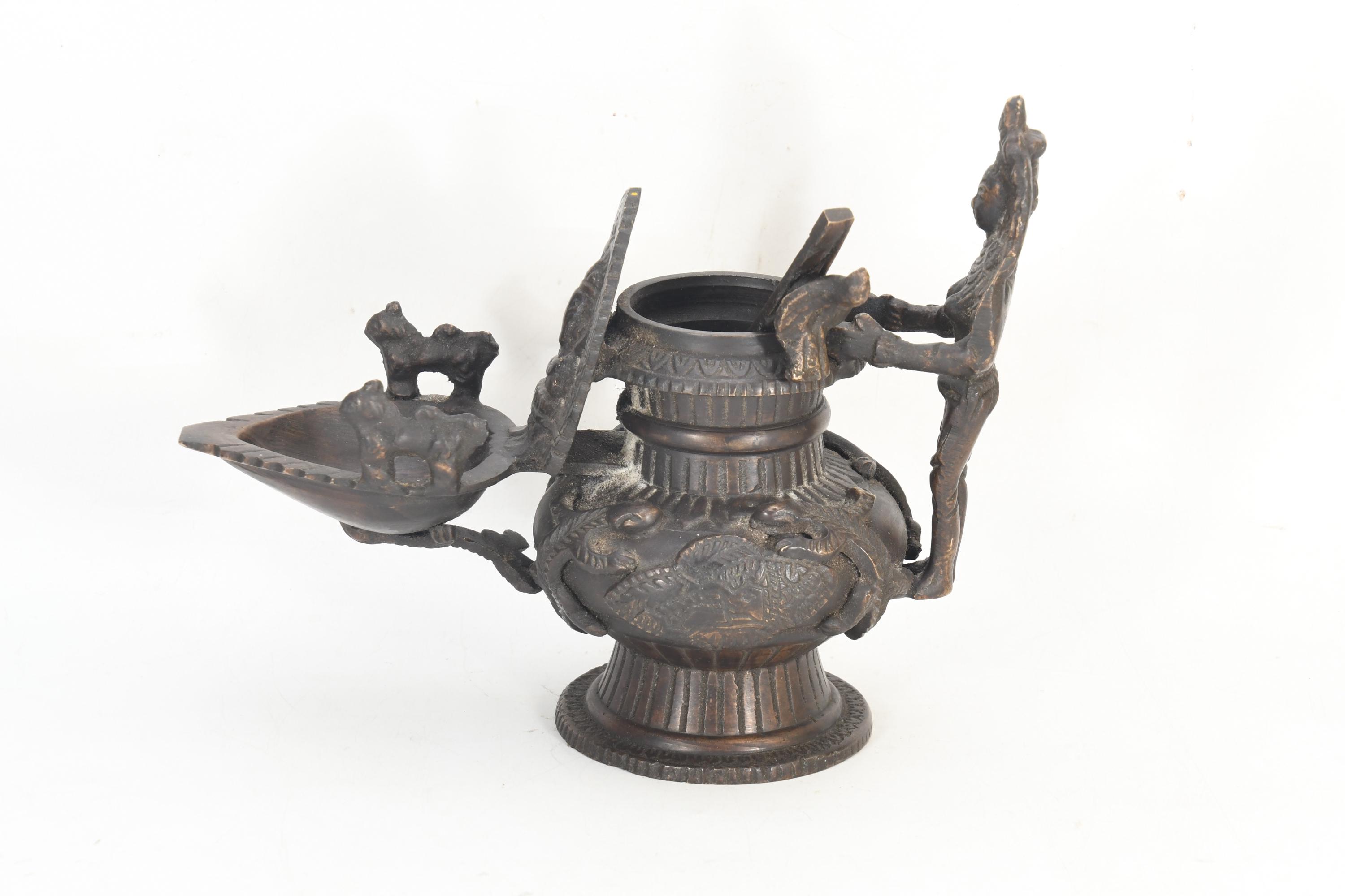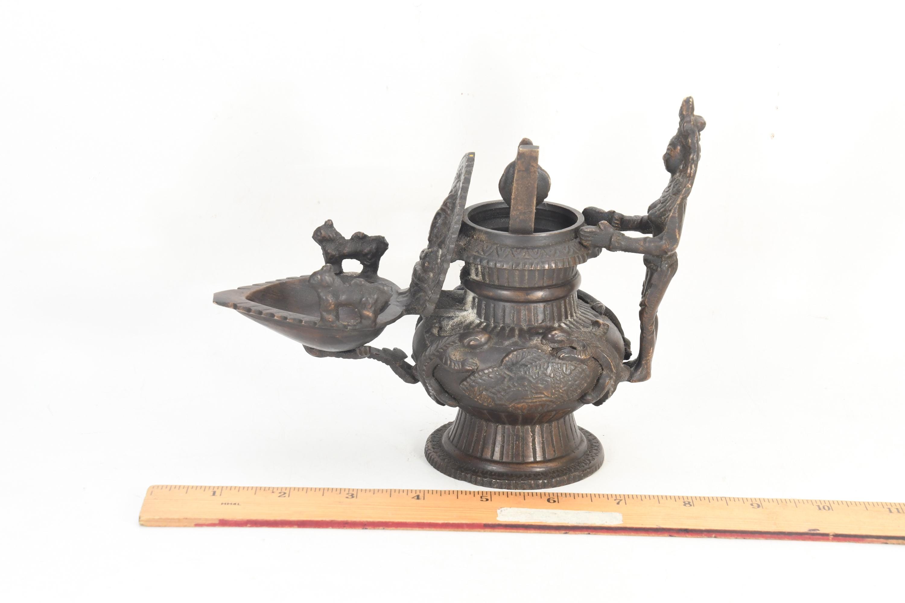 Antique Brass Sukunda Oil Lamp, Handmade Nepalese Buddhist Art