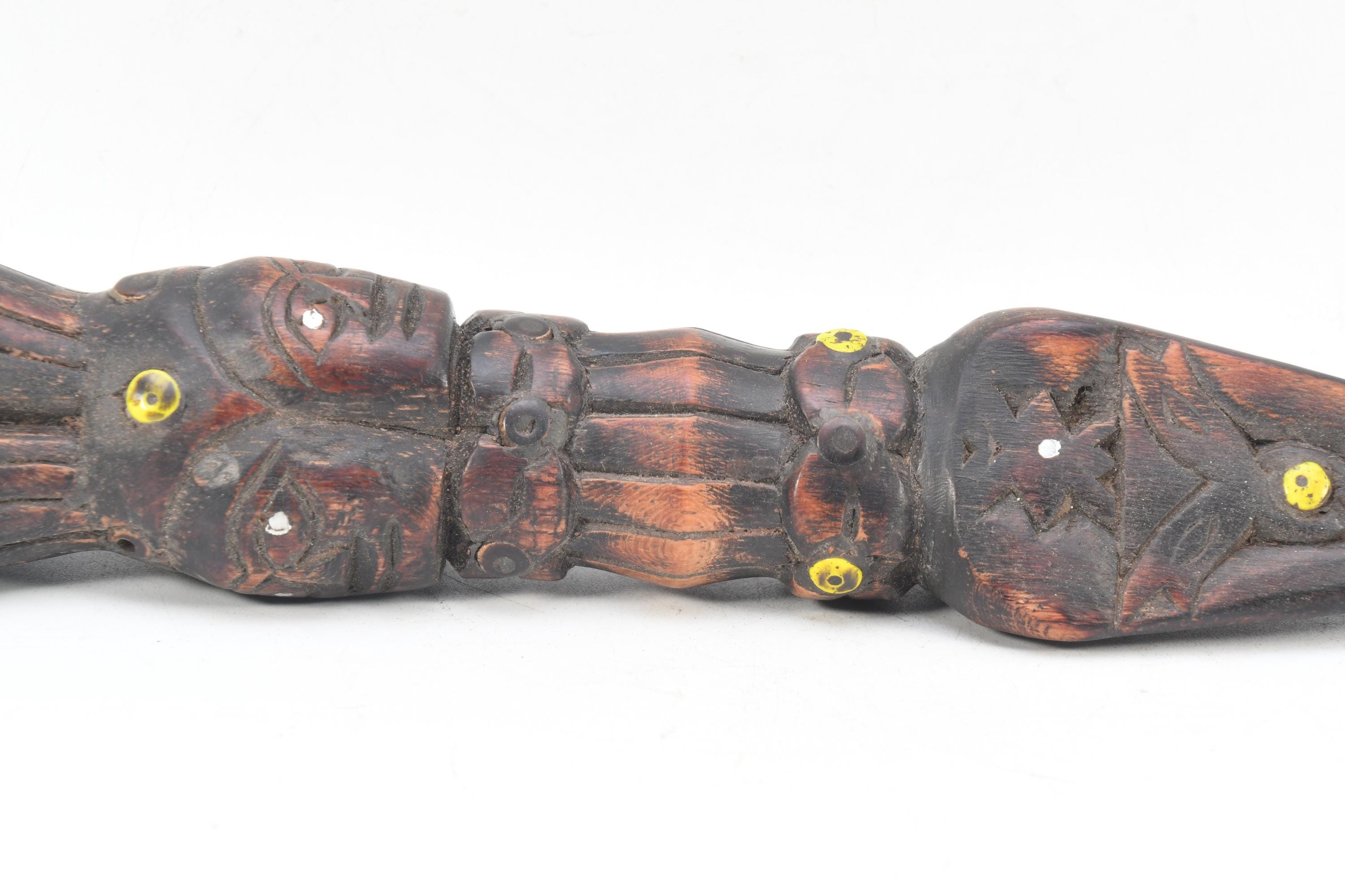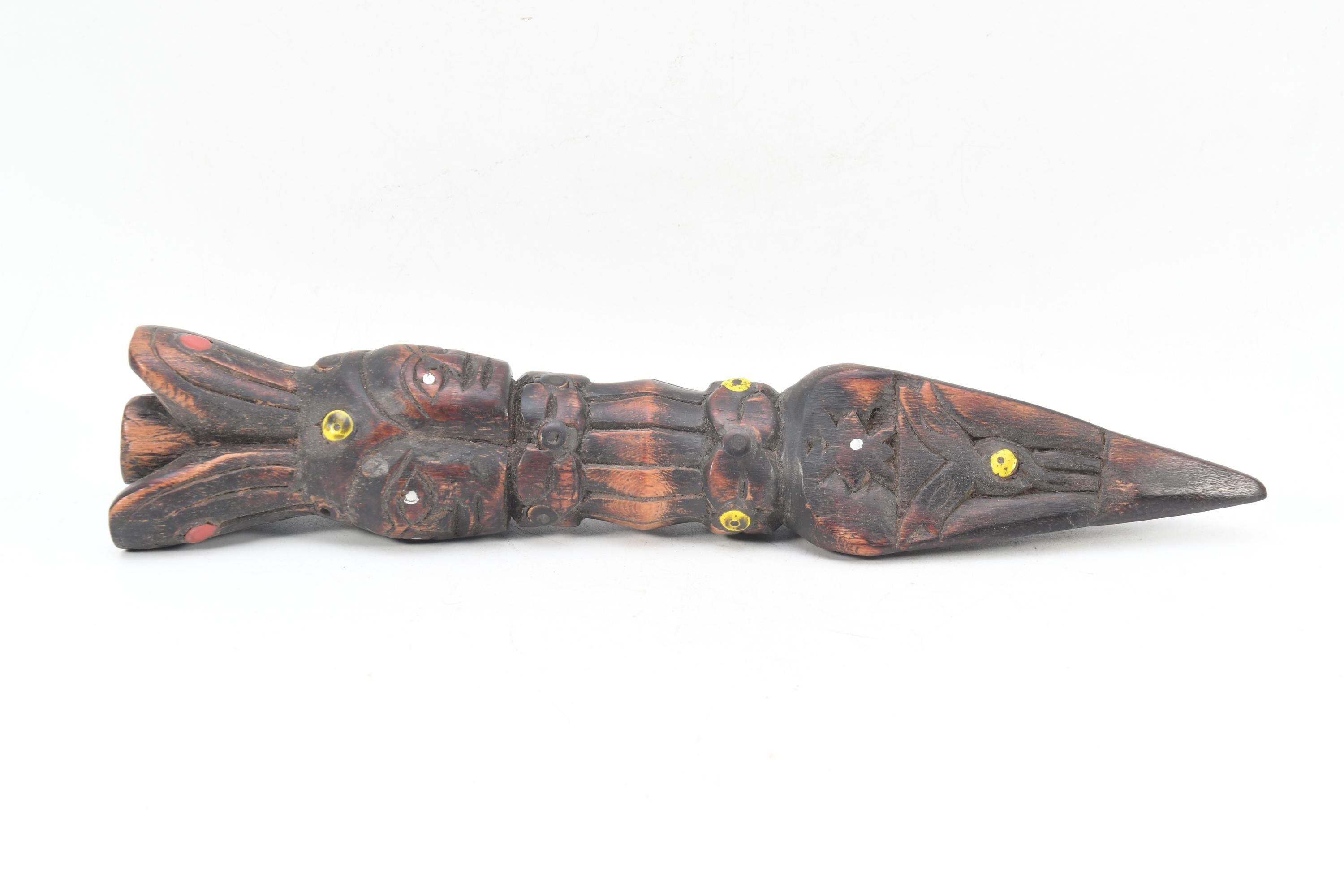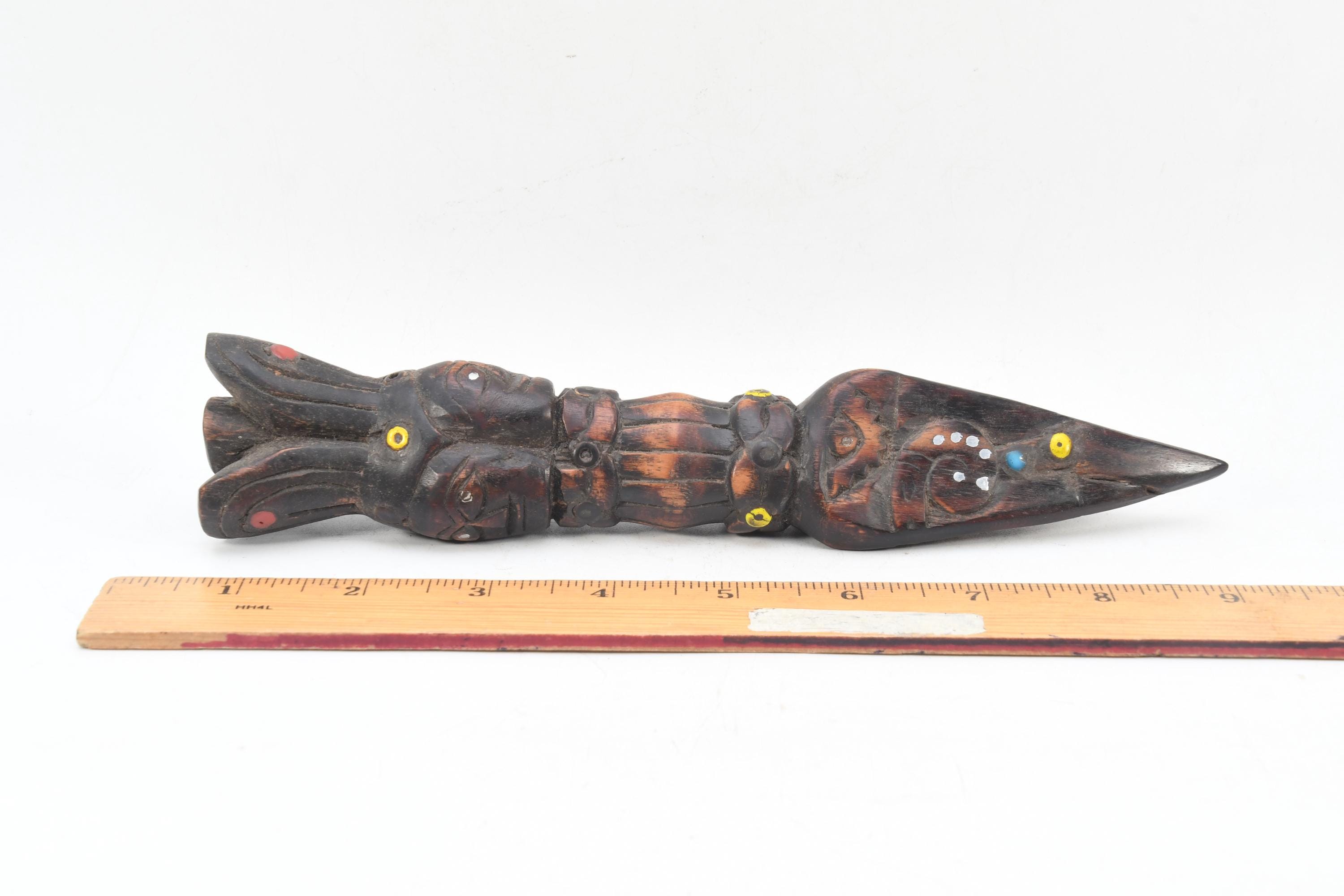 Antique Handmade Wooden Phurba Dagger – Three Face Carved Tibetan Ritual Knife, Vintage Spiritual Decor