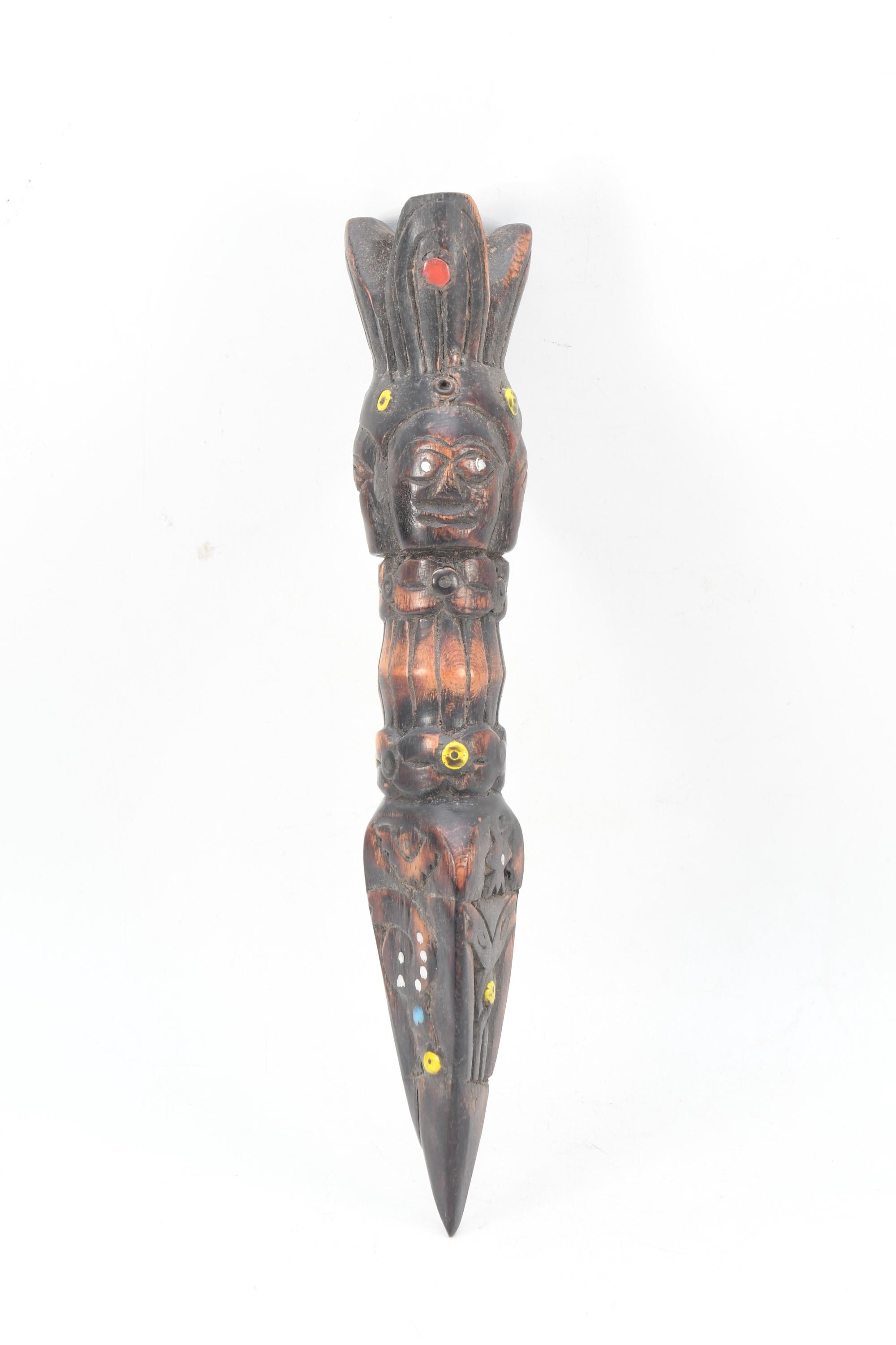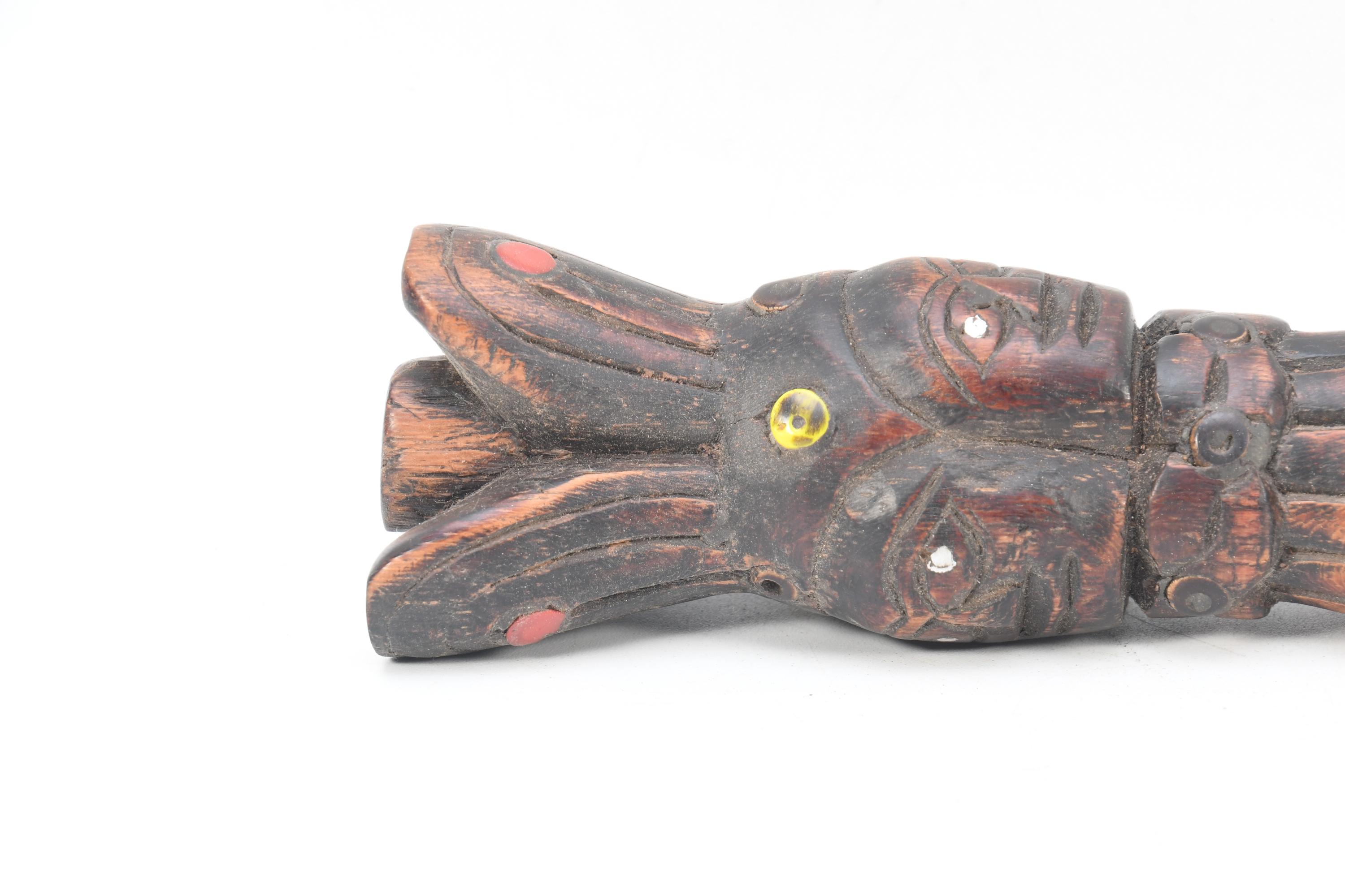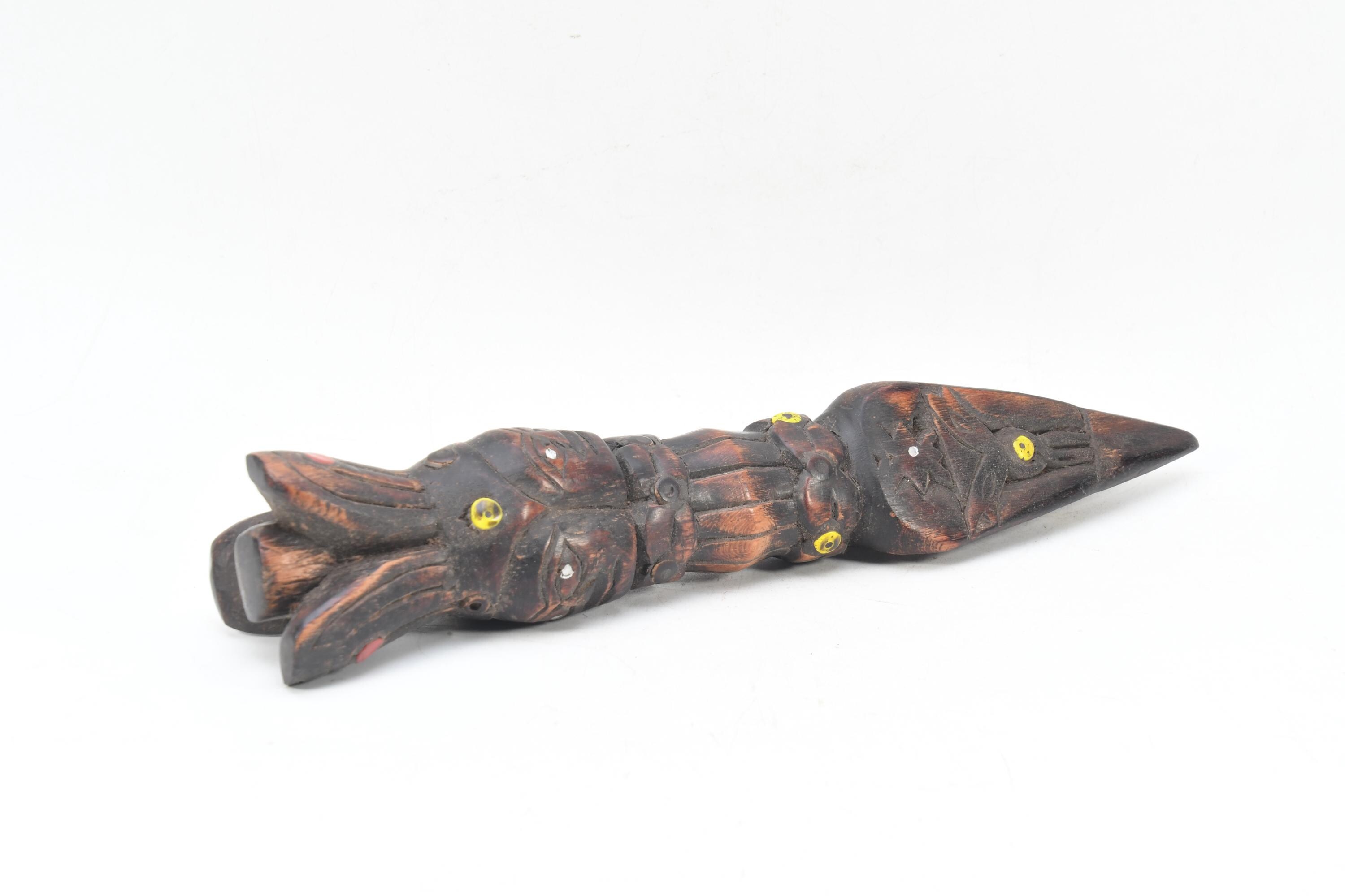 Antique Handmade Wooden Phurba Dagger – Three Face Carved Tibetan Ritual Knife, Vintage Spiritual Decor