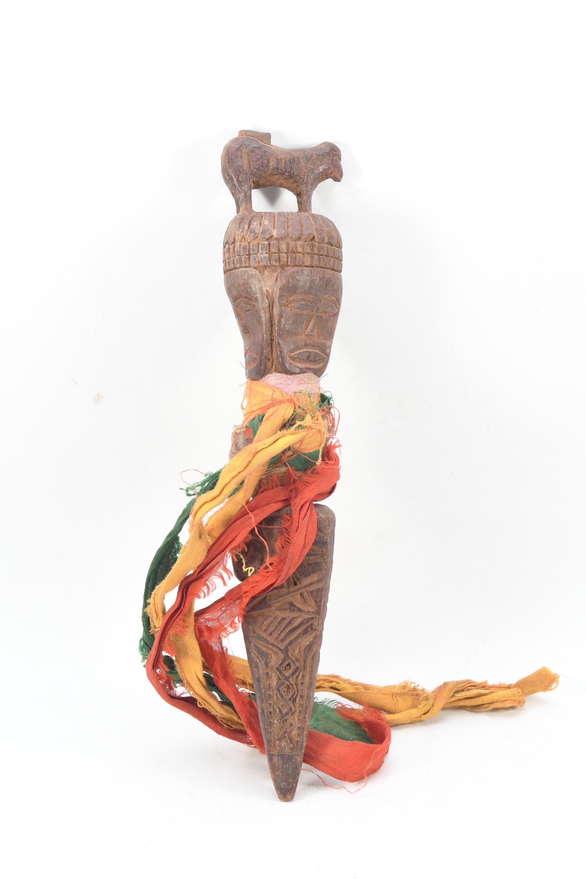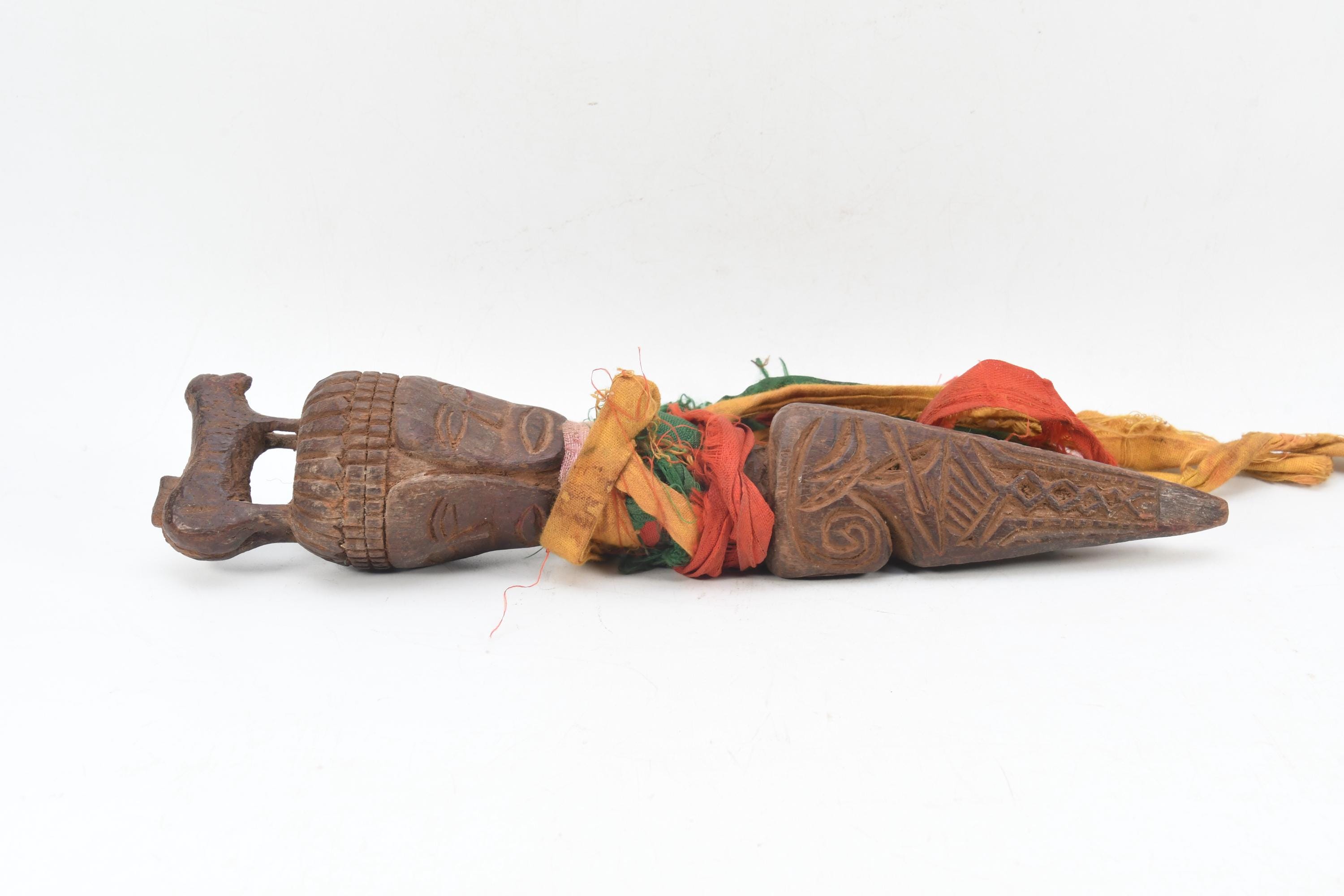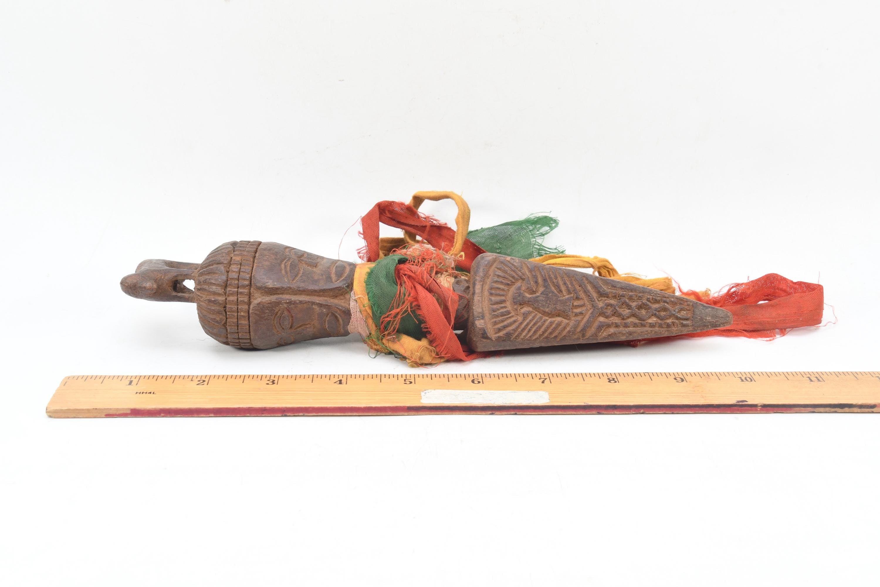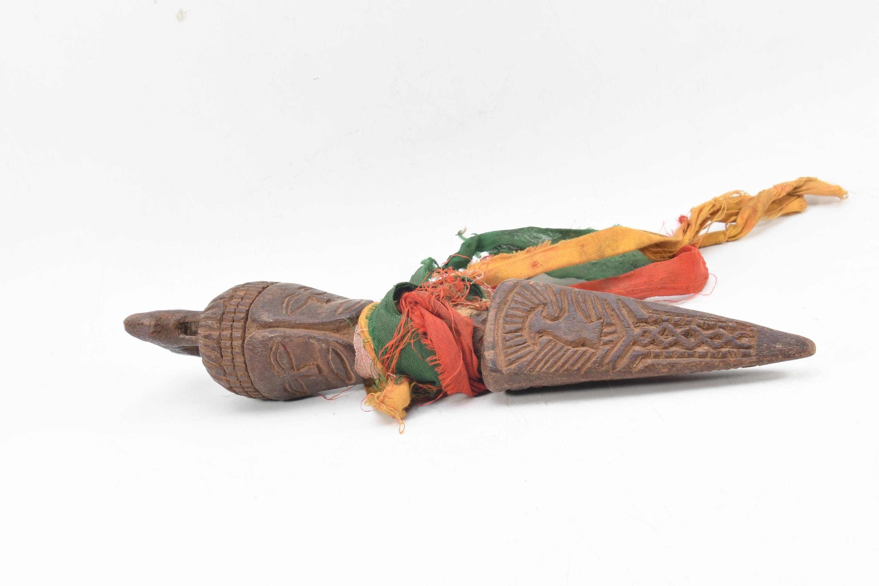 Handcrafted Wooden Phurba Dagger – Tibetan Ritual Artifact with Three Faces – Antique-Style Ceremonial Tool