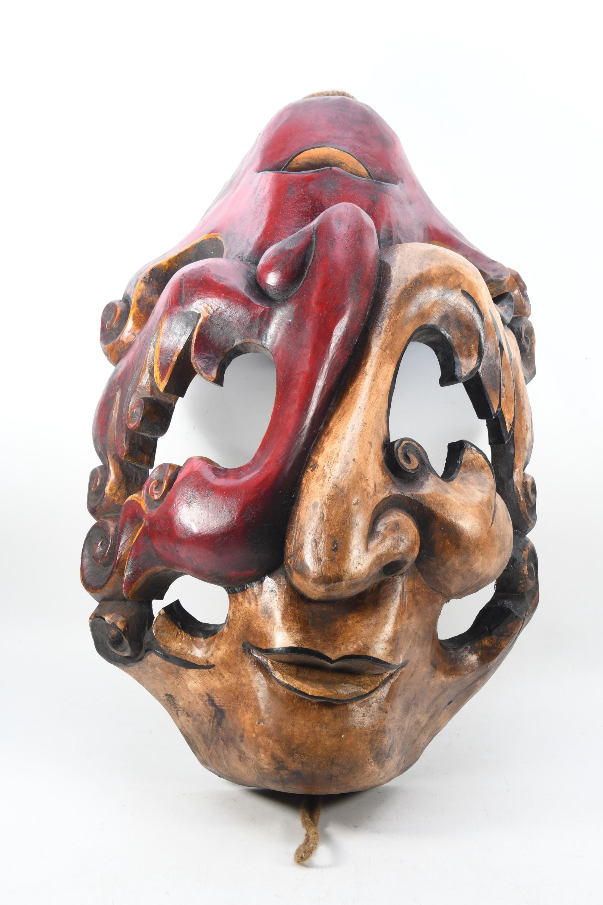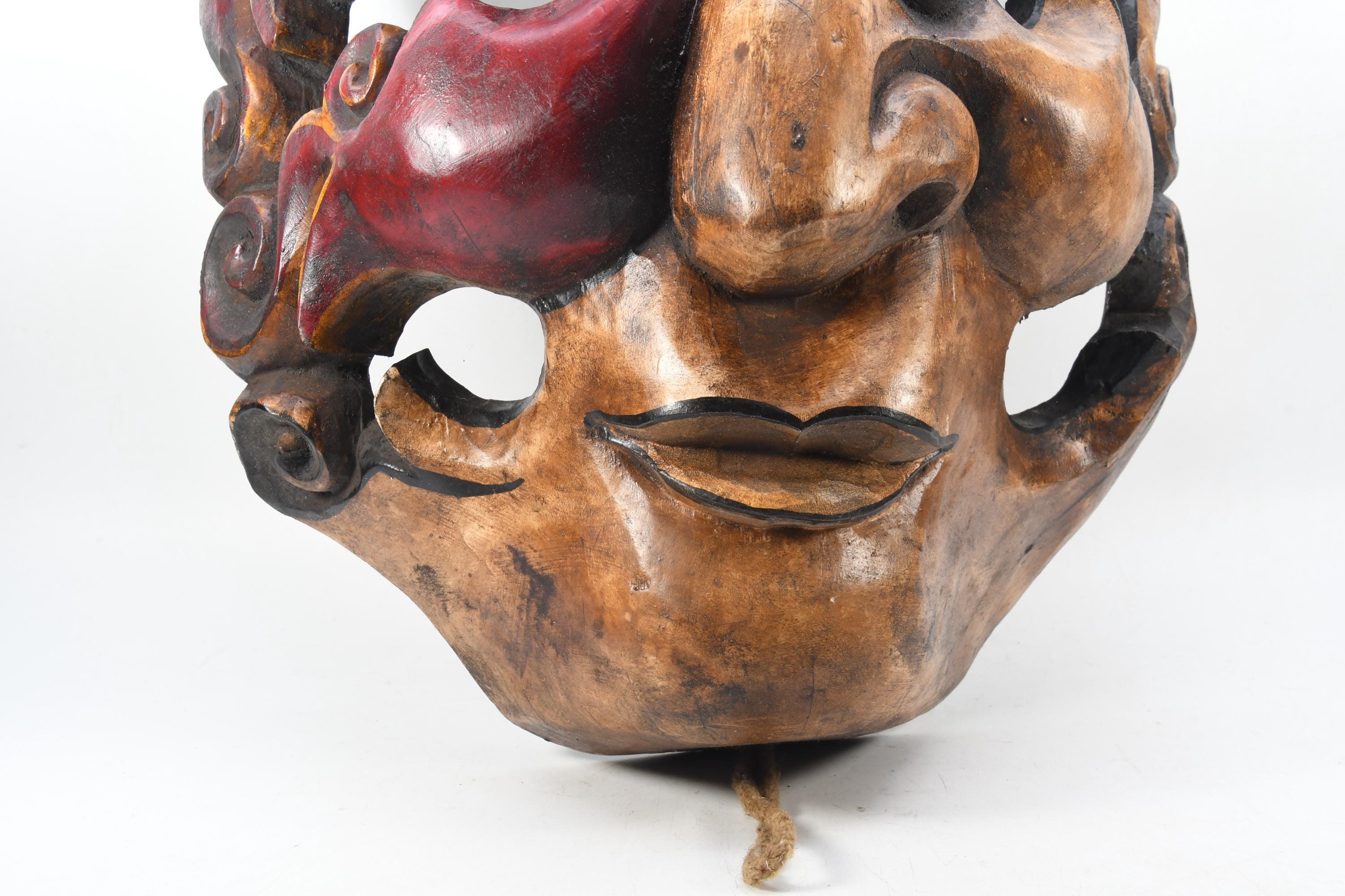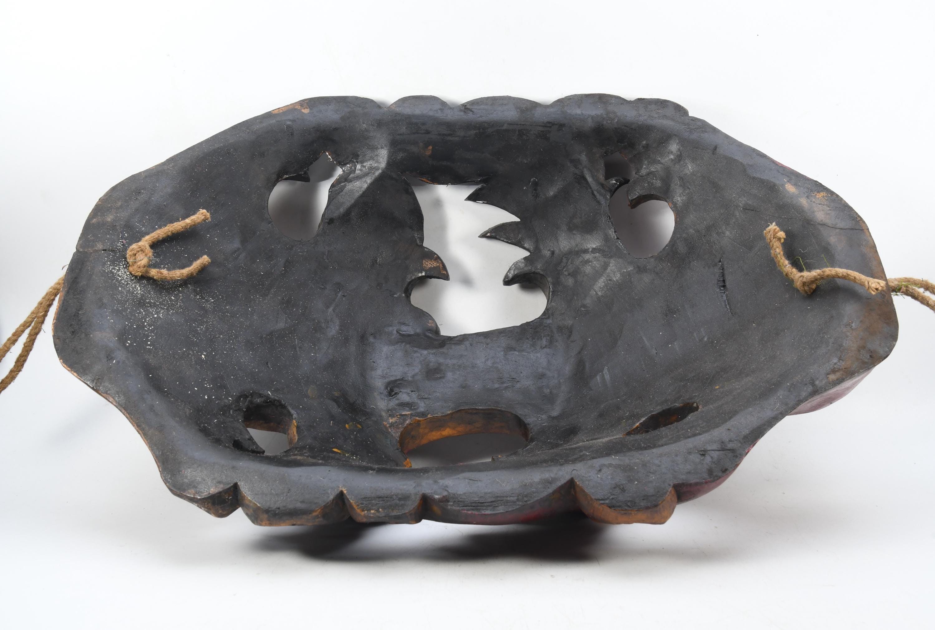 In the valleys and foothills on the southern slopes of the Himalayas, within the region of the so-called ‘Middle Hills’ in Nepal, there are tribes where belief in ancient ‘pre-Buddhist’ shamanism is still prevalent to this day. These tribes, such as the Tamang, Magar, Gurung, Rai, and others, which are native to the northern and western part of the central Kathmandu valley, have a long-standing mask tradition. These masks are among the most primitive in use in the world and are made by carving wood, coating it with yak butterfat, and charring it over a smoky fire. Their shamans and special dancers perform at ceremonies, theatrical performances, and dances wearing masks and costumes. Their masks appear simpler, seemingly more ‘primitive’ than the large, colorful masks used for the Buddhist-Lamaist ‘cham dances’ in the Buddhist monasteries and temples of Nepal. These masks of the Shamanist tribes are smaller, yet alluring in their straightforward simplicity and are called ‘Middle-Hills-masks’.