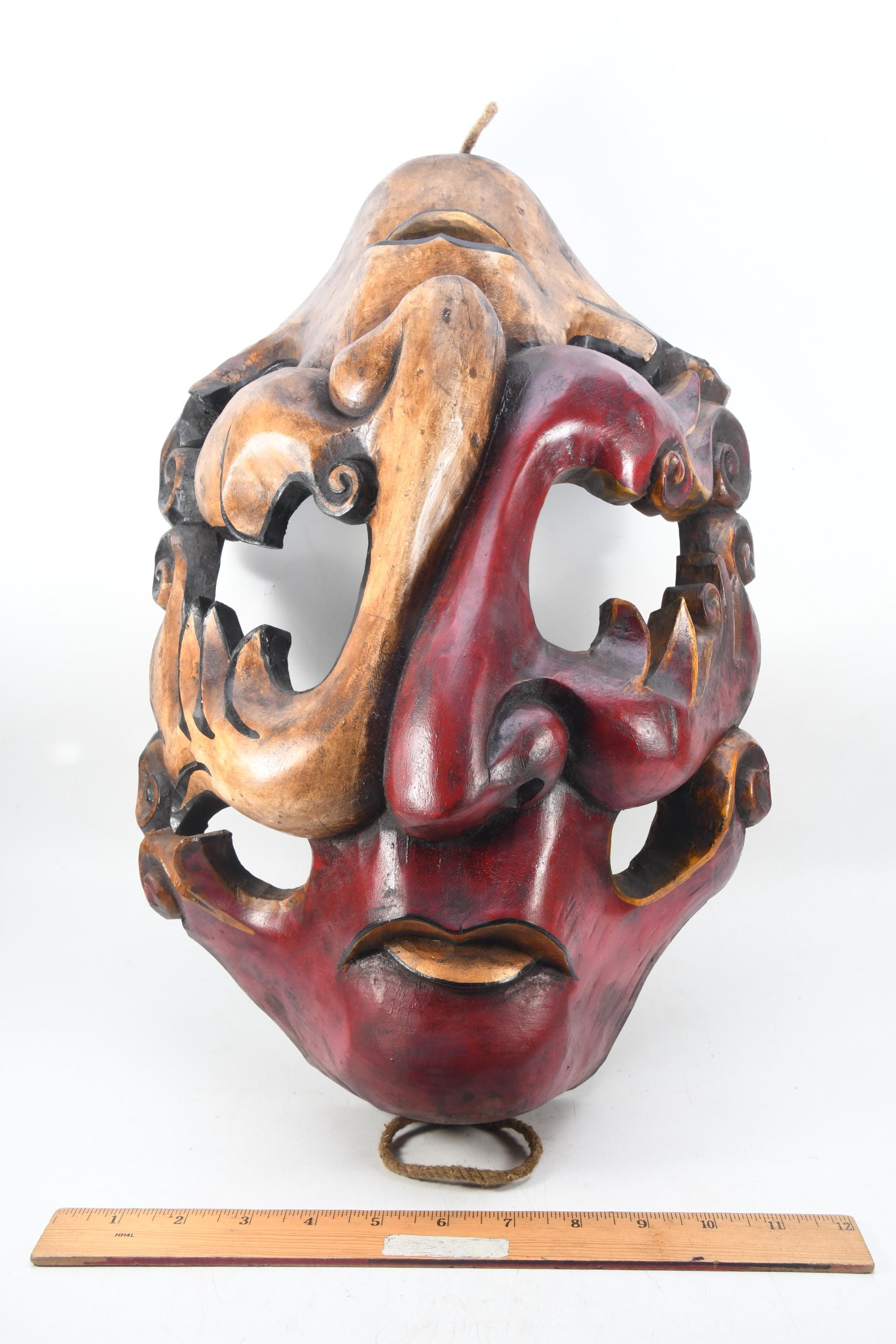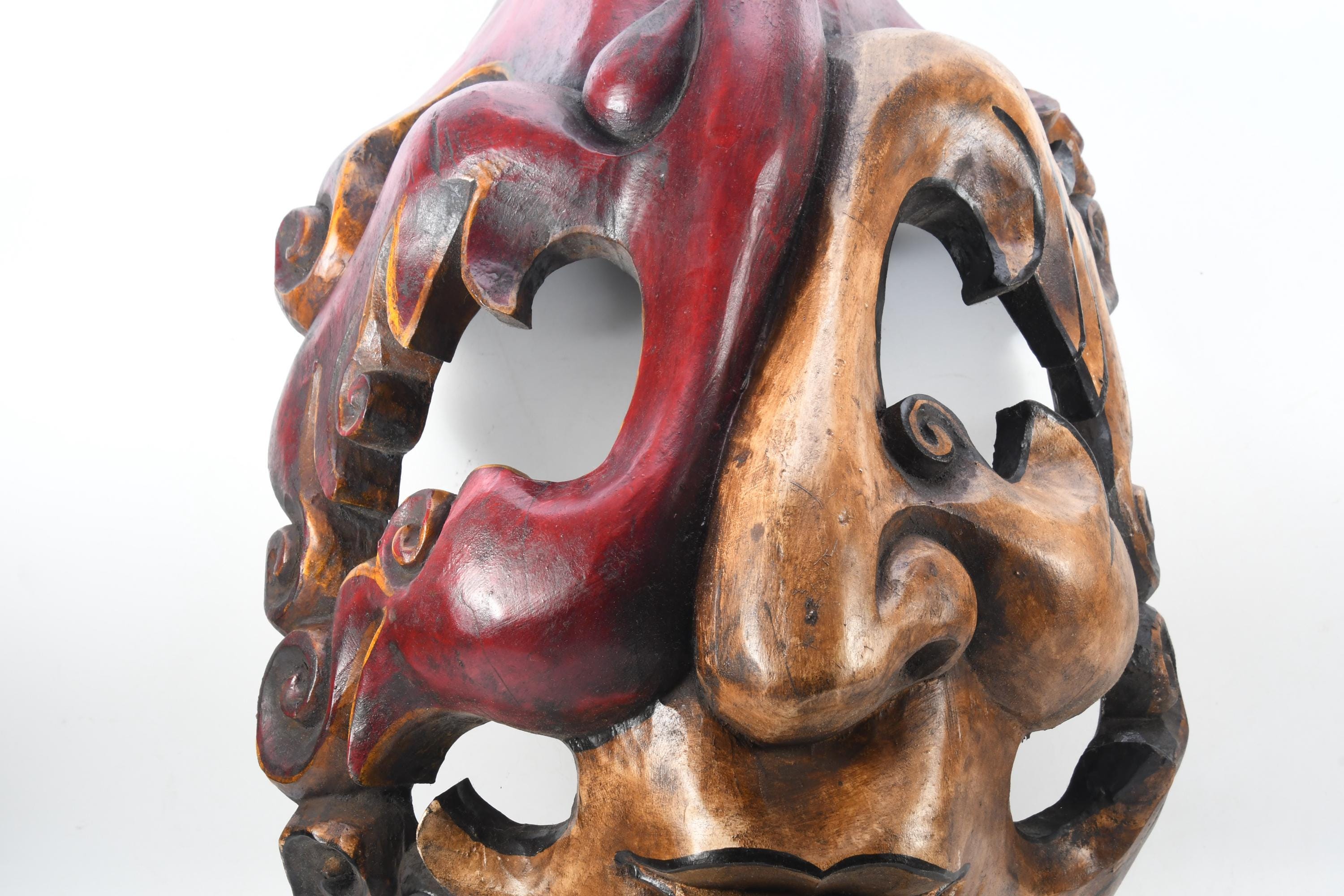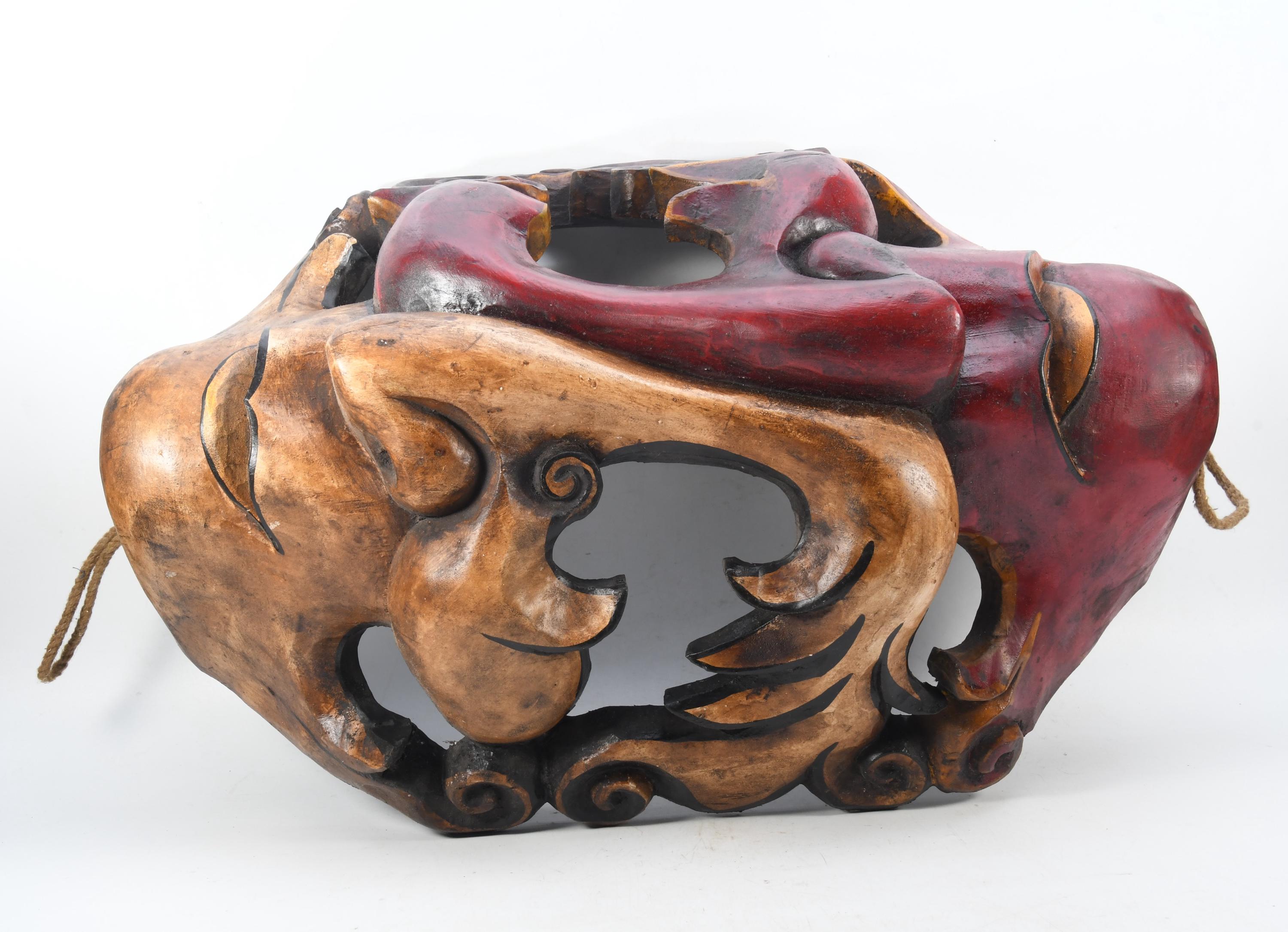 This is a beautiful antique master-quality hand-carved old wooden Tibetan Tantrik mask.