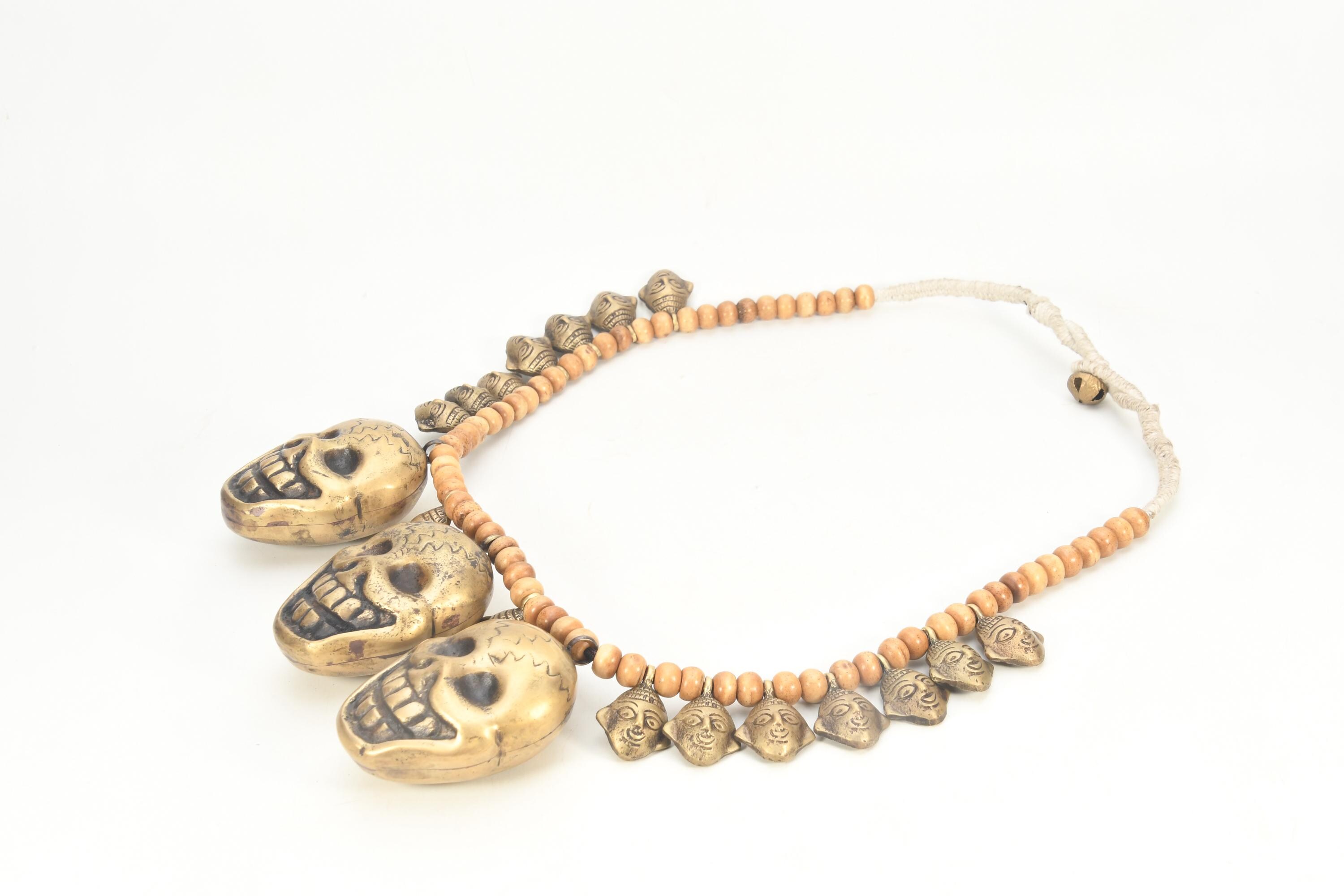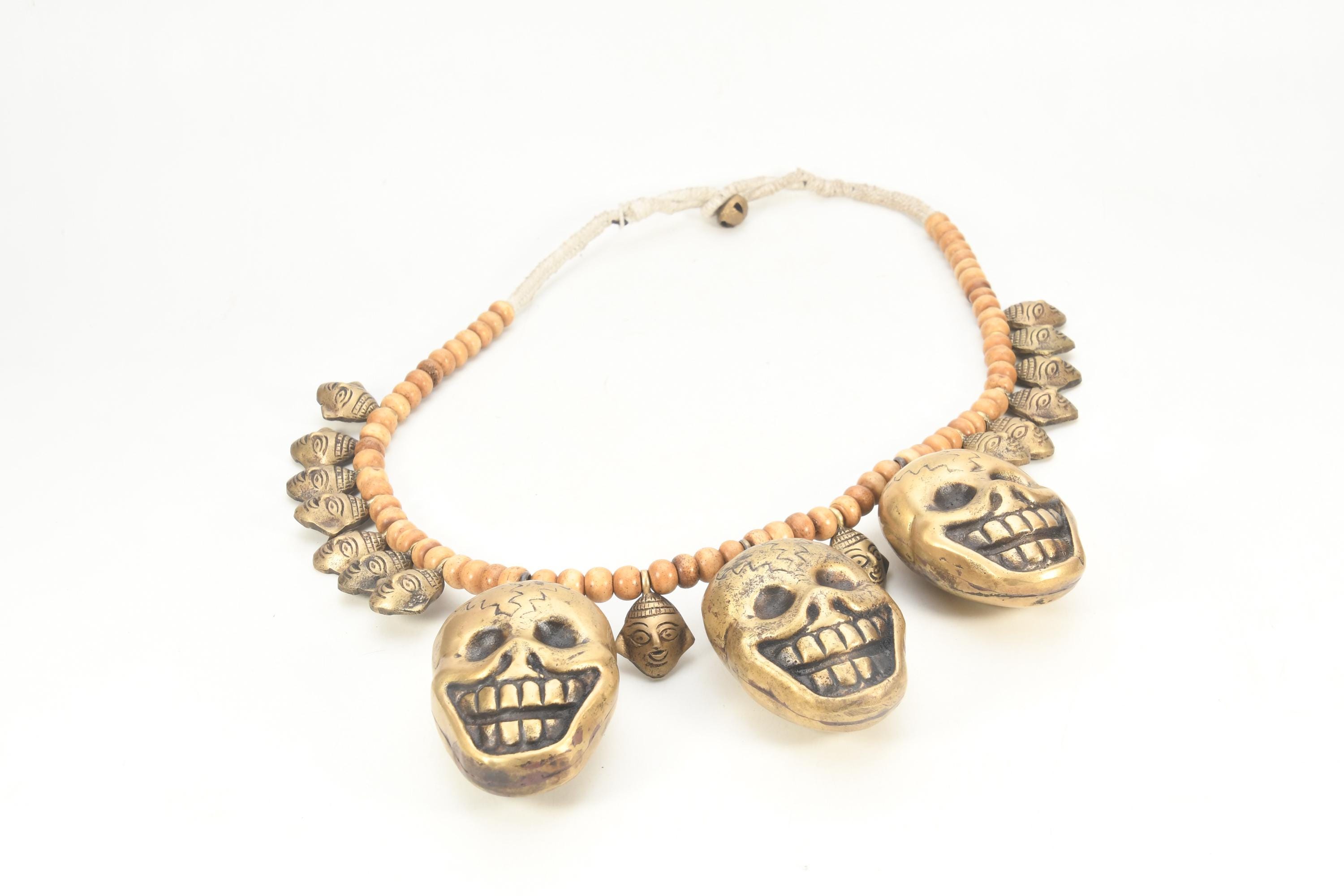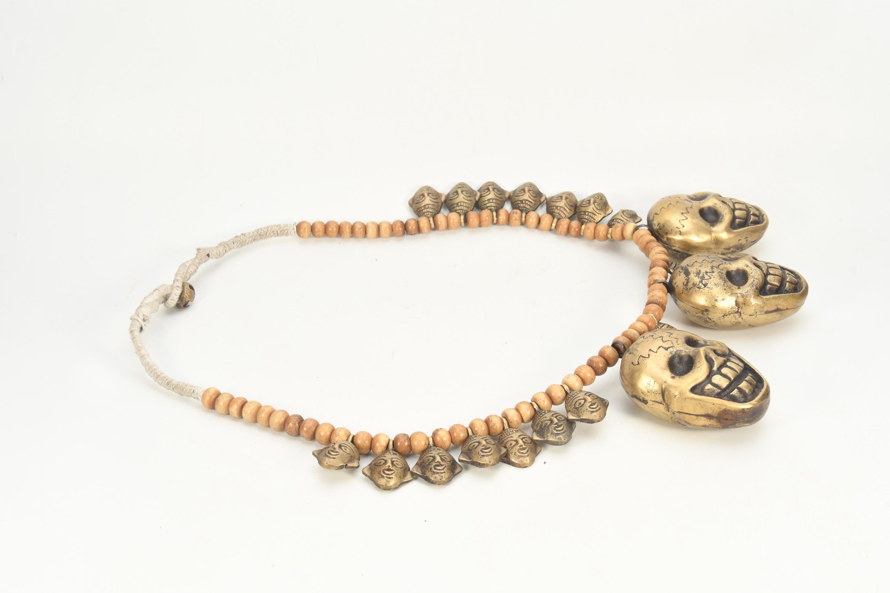Tibetan Skull Bead Necklace, Handmade Brass Jhakri Lama Mala