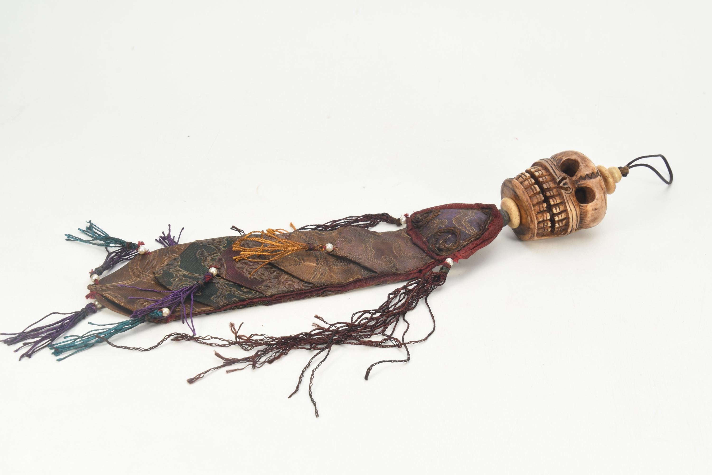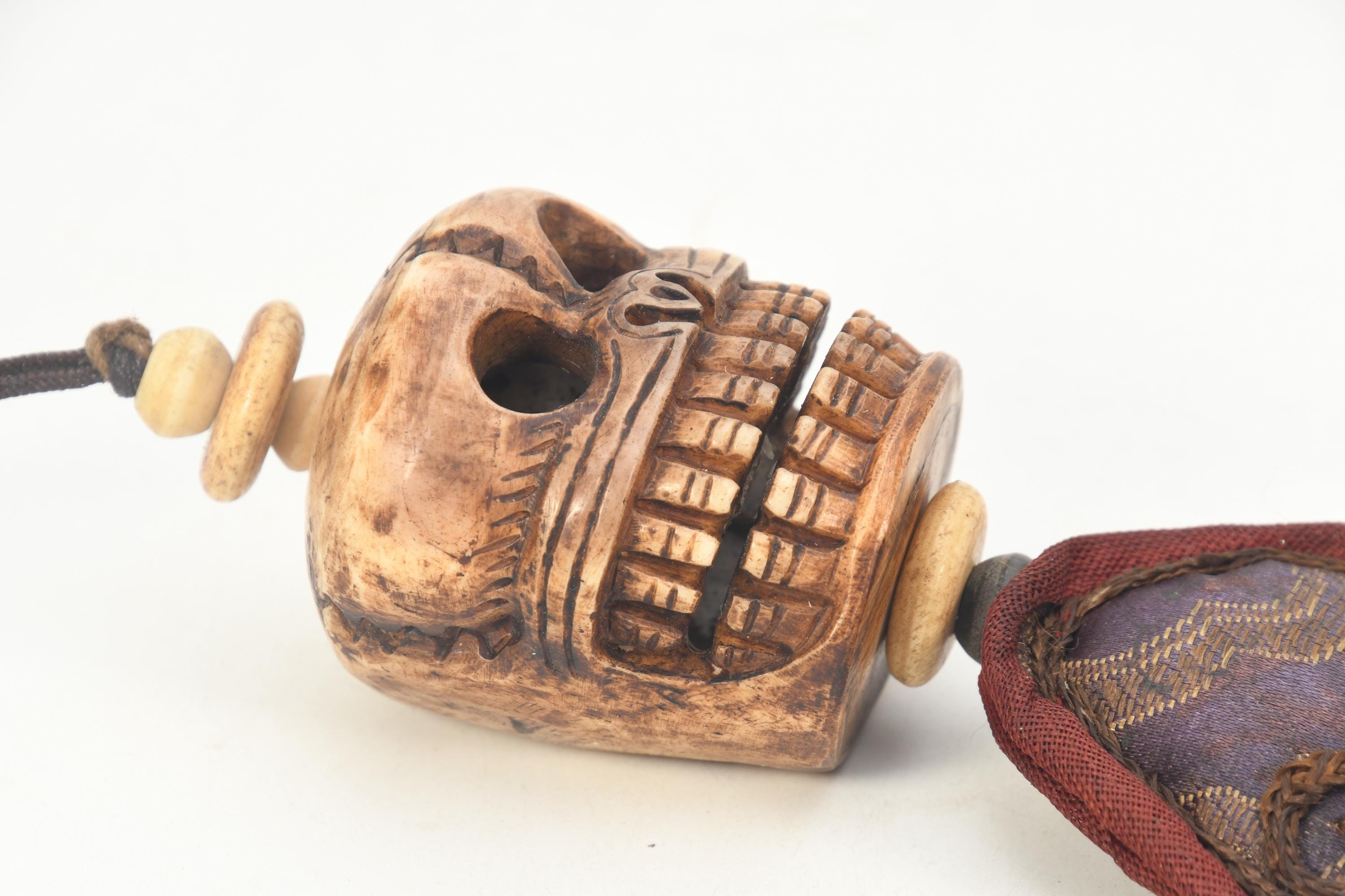 Bone Skull Carved Antique Handmade Tibetan Wall Hanging Shamanic Decor Vintage Shrine Art Collectible