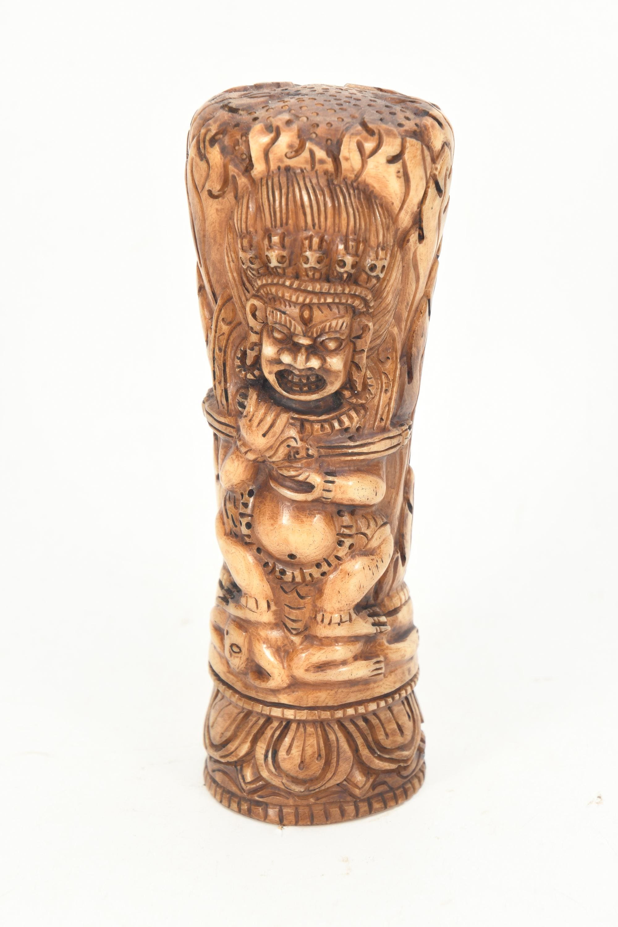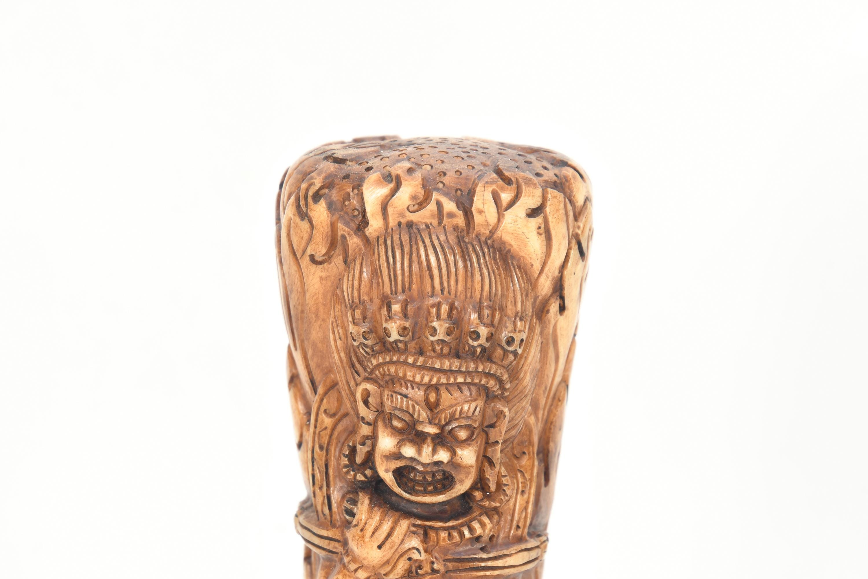 Handmade Bhairav Mahakala Carved Tibetan Stamp Seal, Vintage Collectible Art