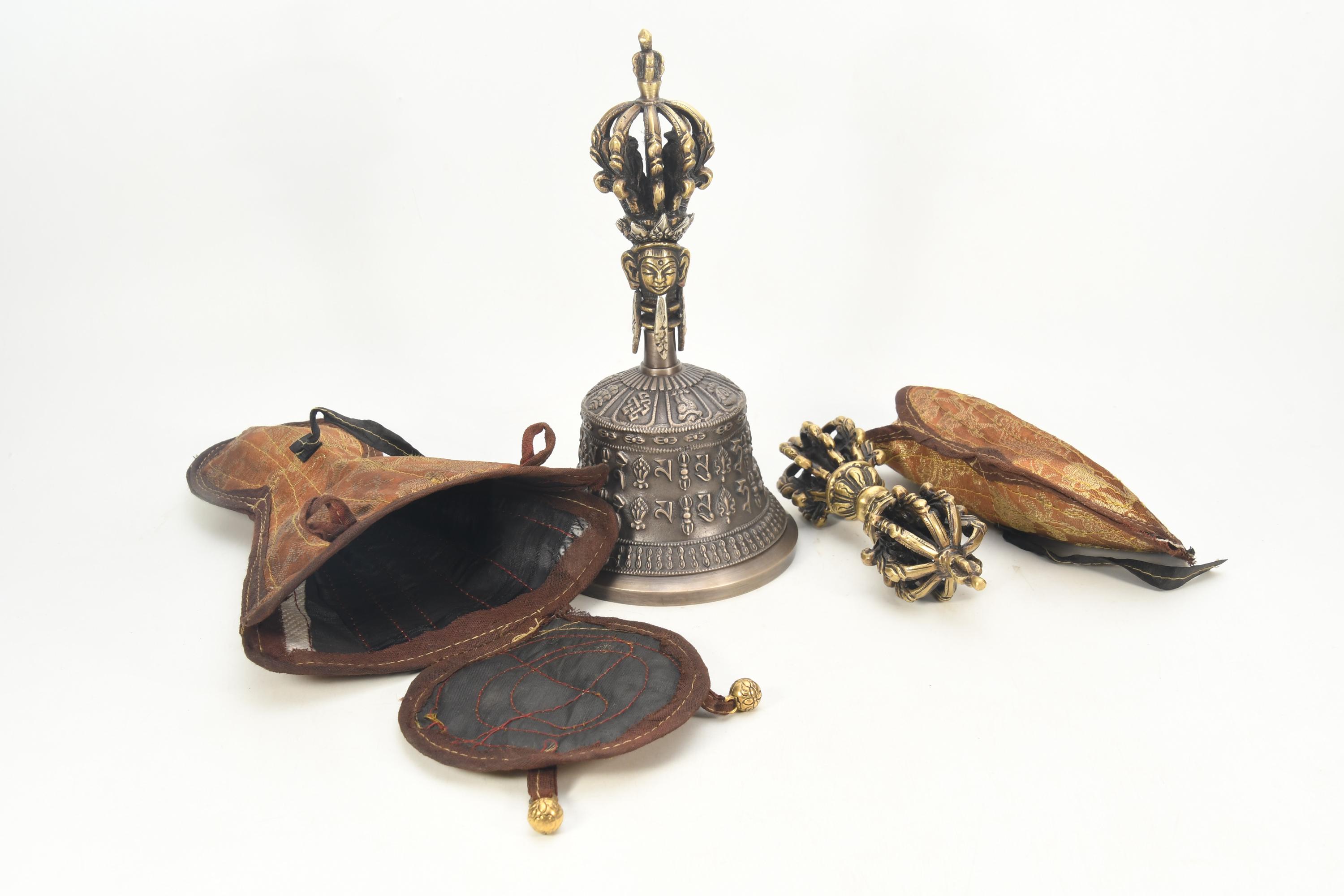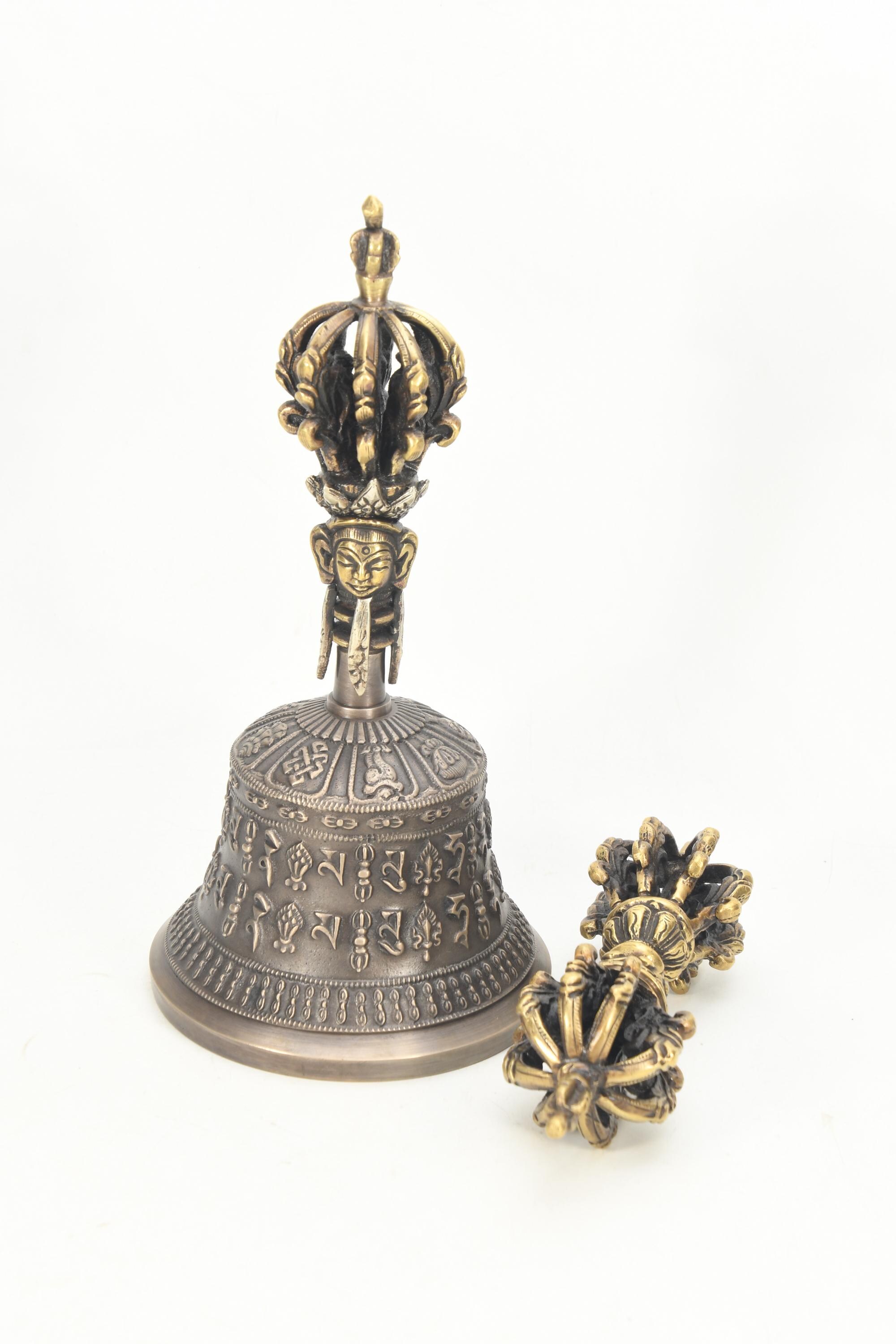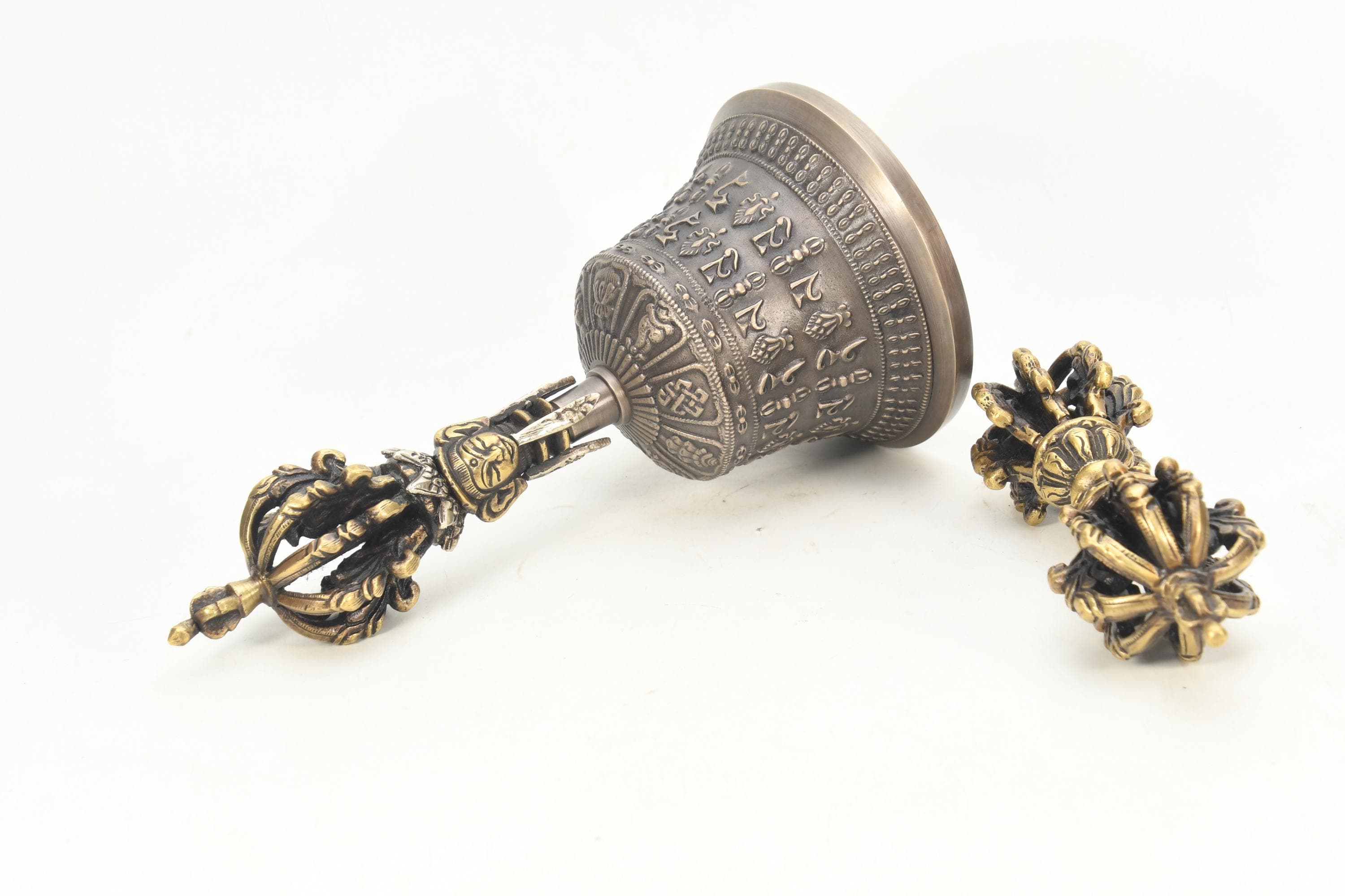 The Bell and Vajra set represents the perfect union of wisdom and compassion. The bell and vajra are used as ritual items in meditation practice, retreats and ceremonies along with other musical instruments, mudra hand gestures and dance.