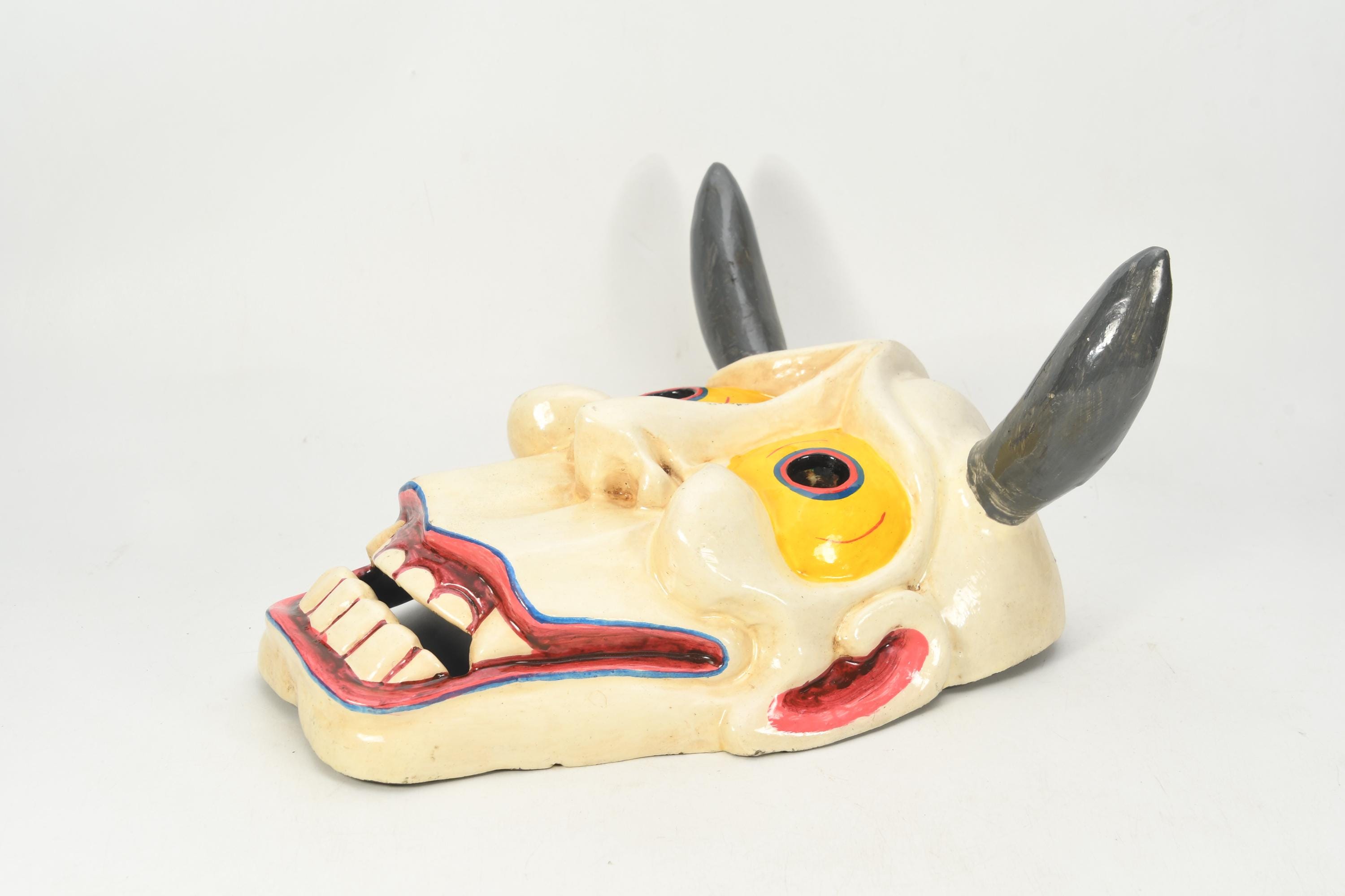 Horned Skull Citipati Mask, Antique Wooden Shaman Wall Decor