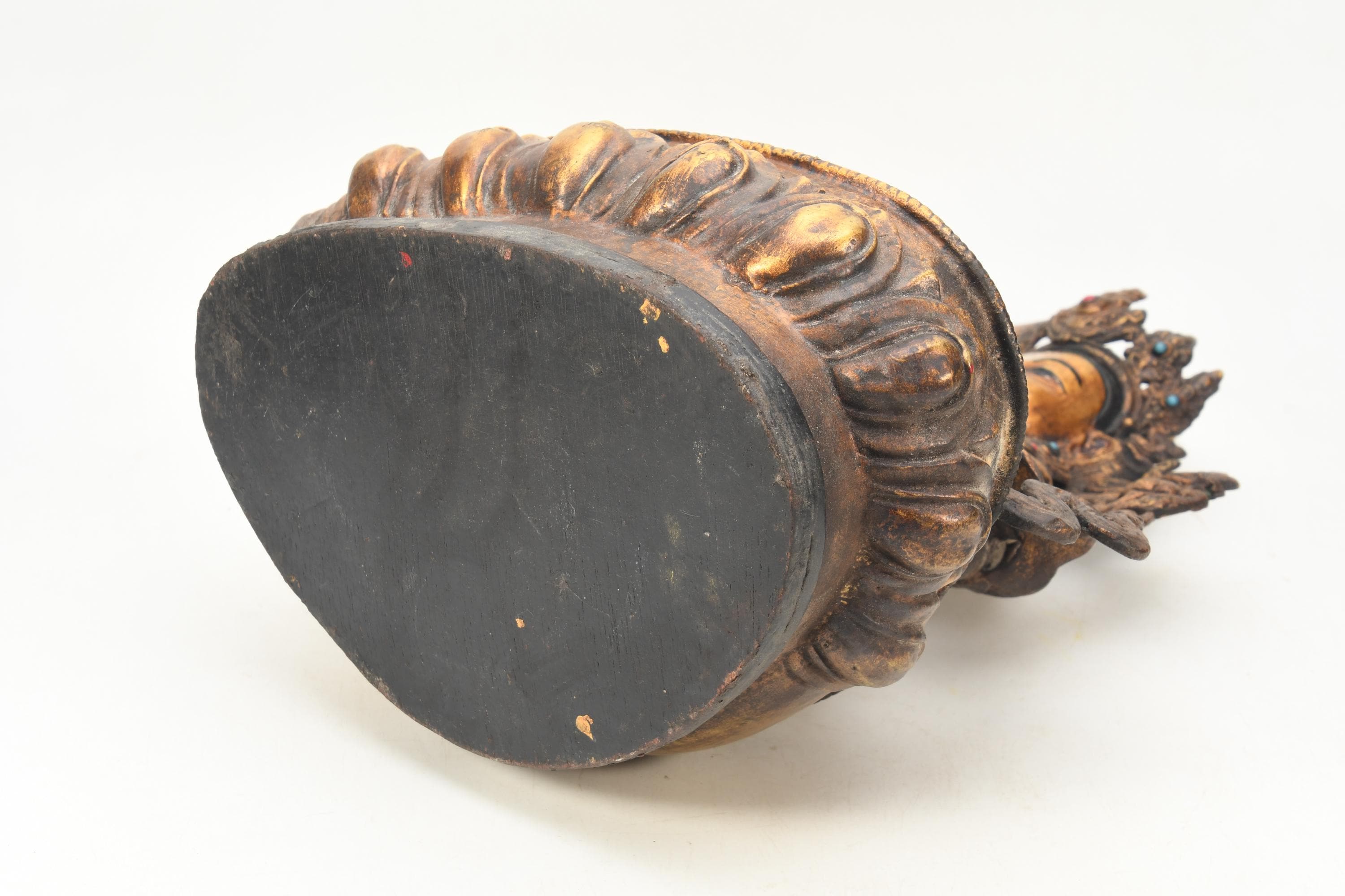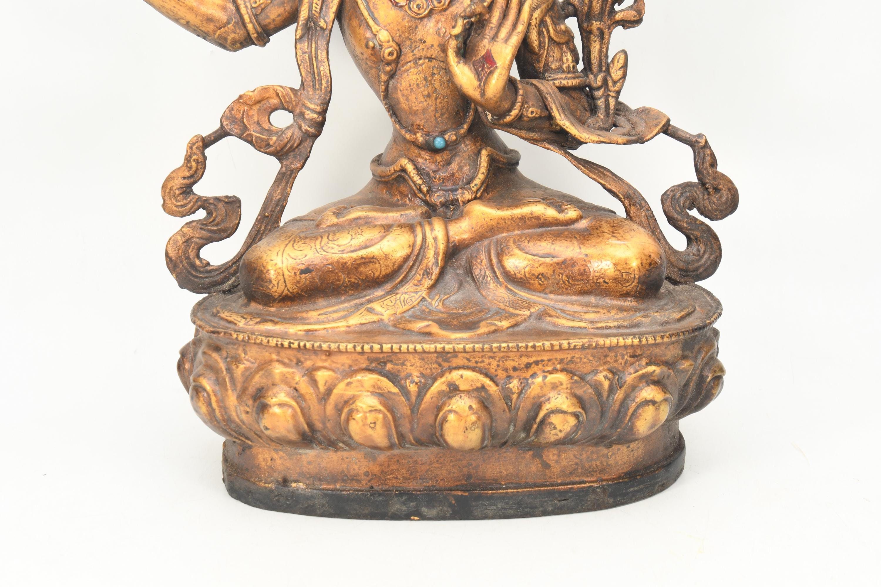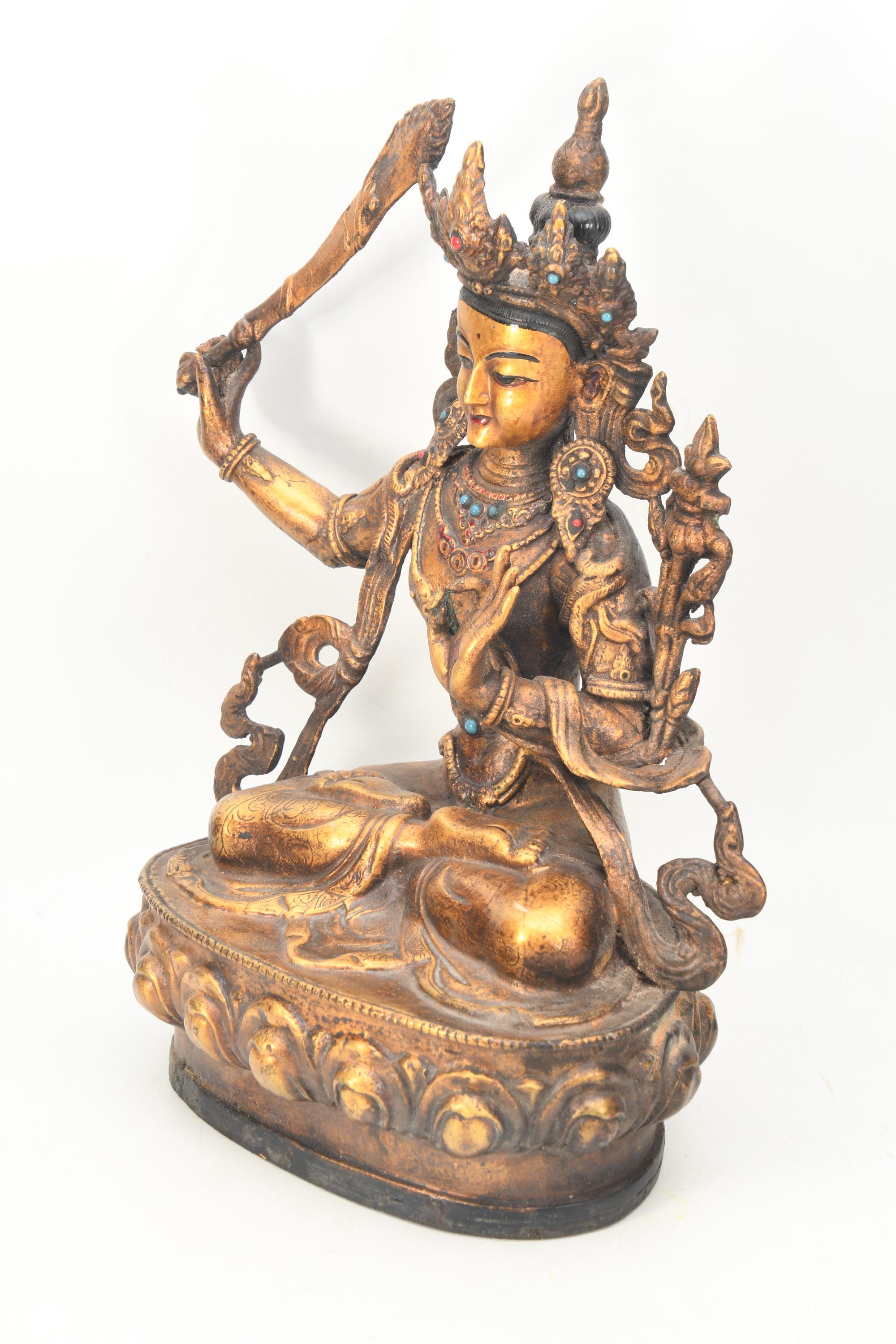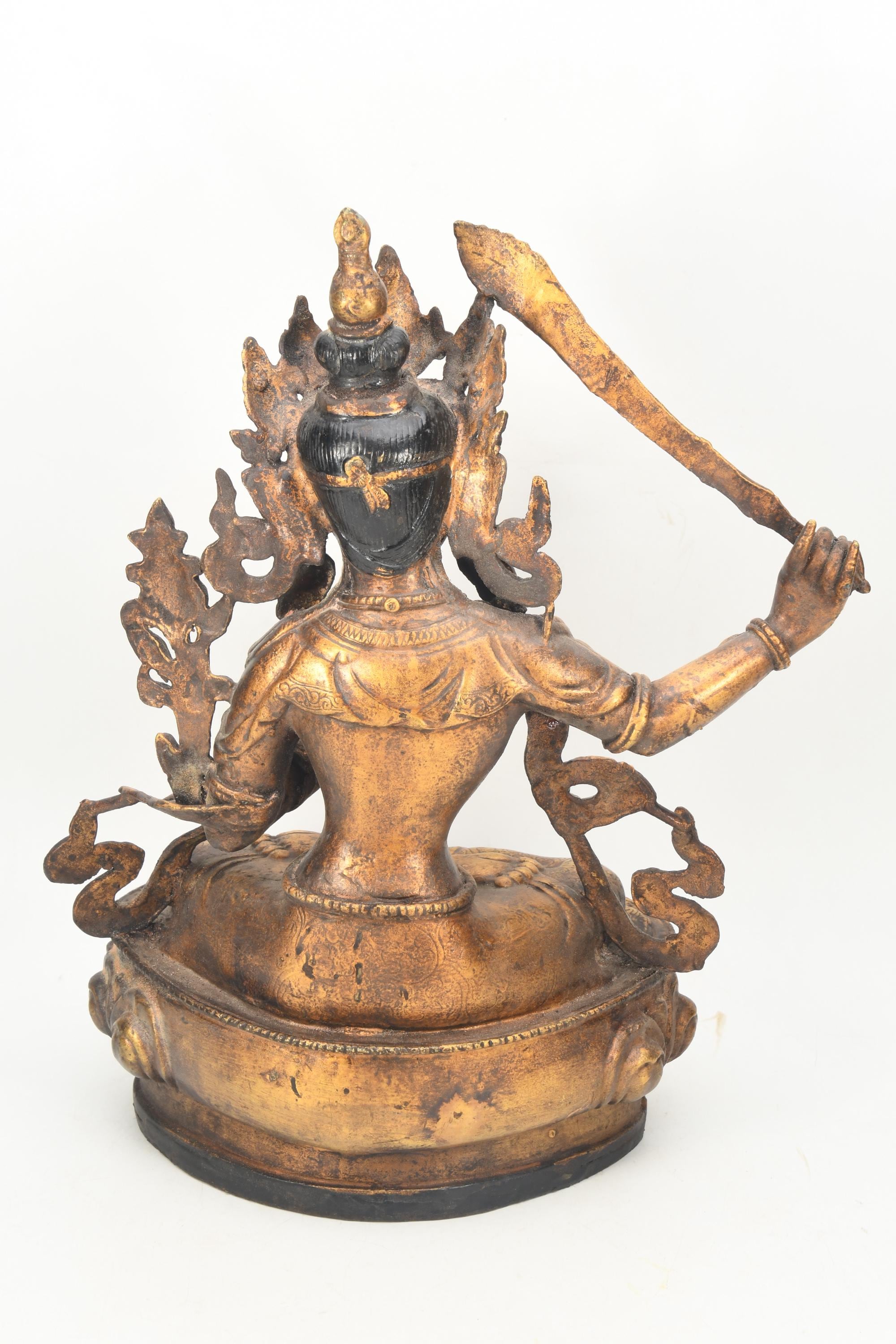 Manjushree Sword Carrying Antique Handmade Gold Gilded Brass Figurine Vintage Tibetan Sculpture Art Collectible