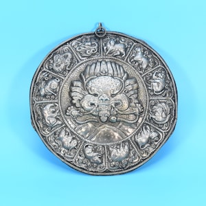 The Pendant has Tibet Bronze Cloth Anger Gods Skull Head Statue Evil Spirits Amulet Pendant. It can be clearly seen in the image, It is in good condition, and was created by skilled craftsmen in traditional style with fine handcrafts.