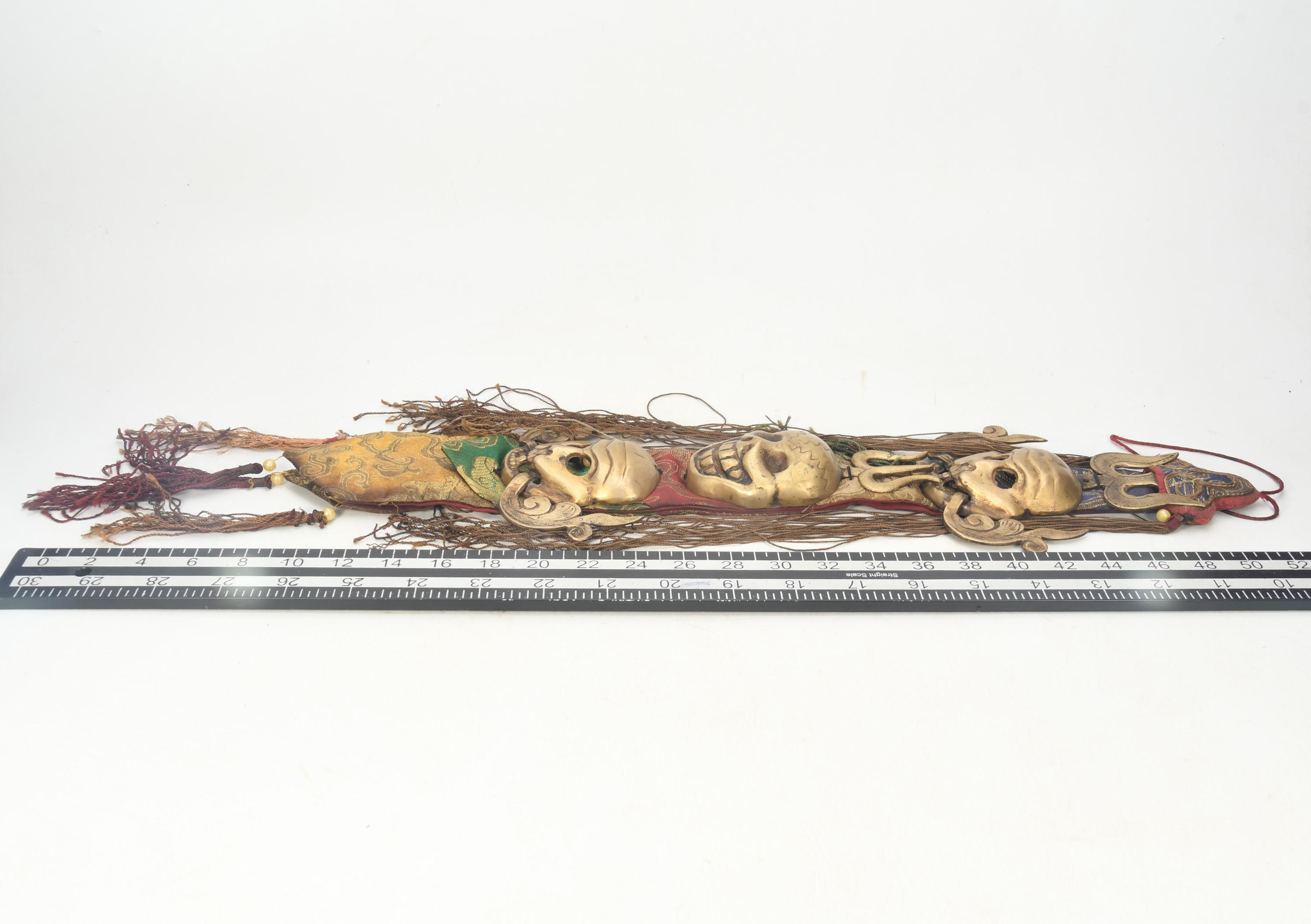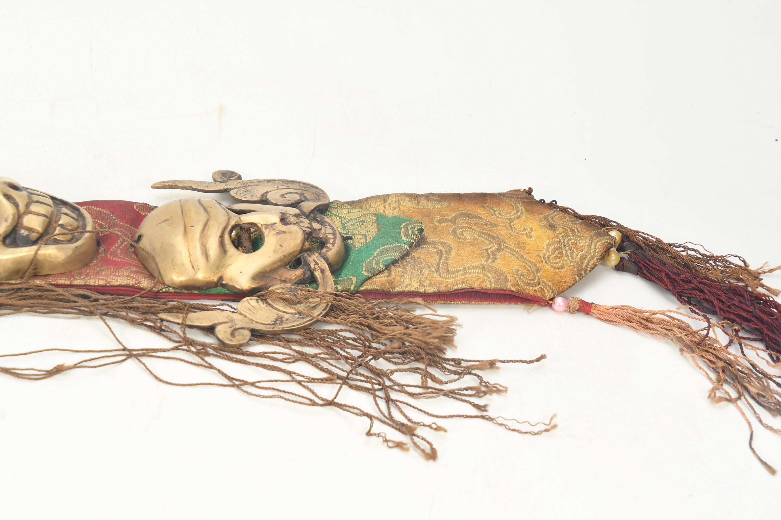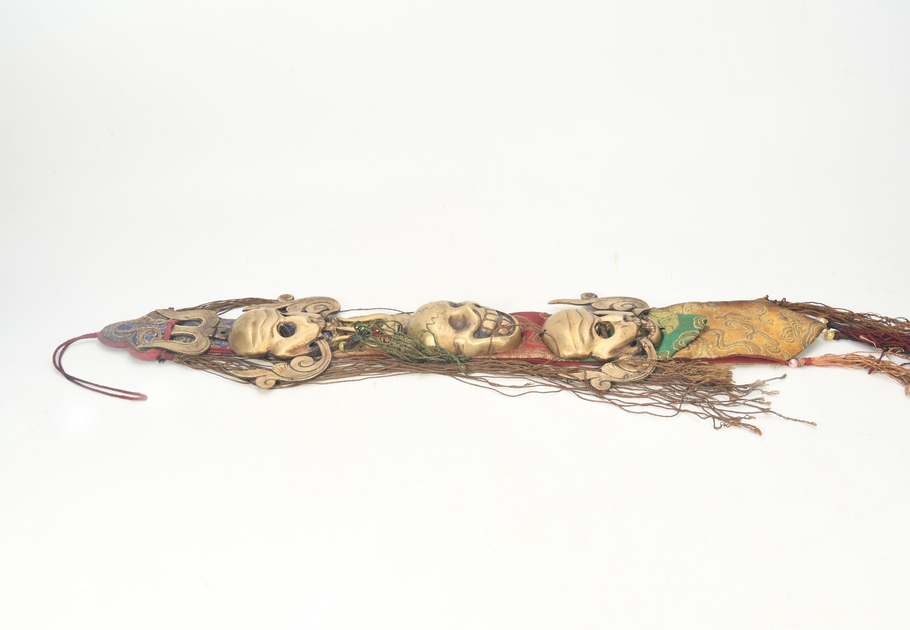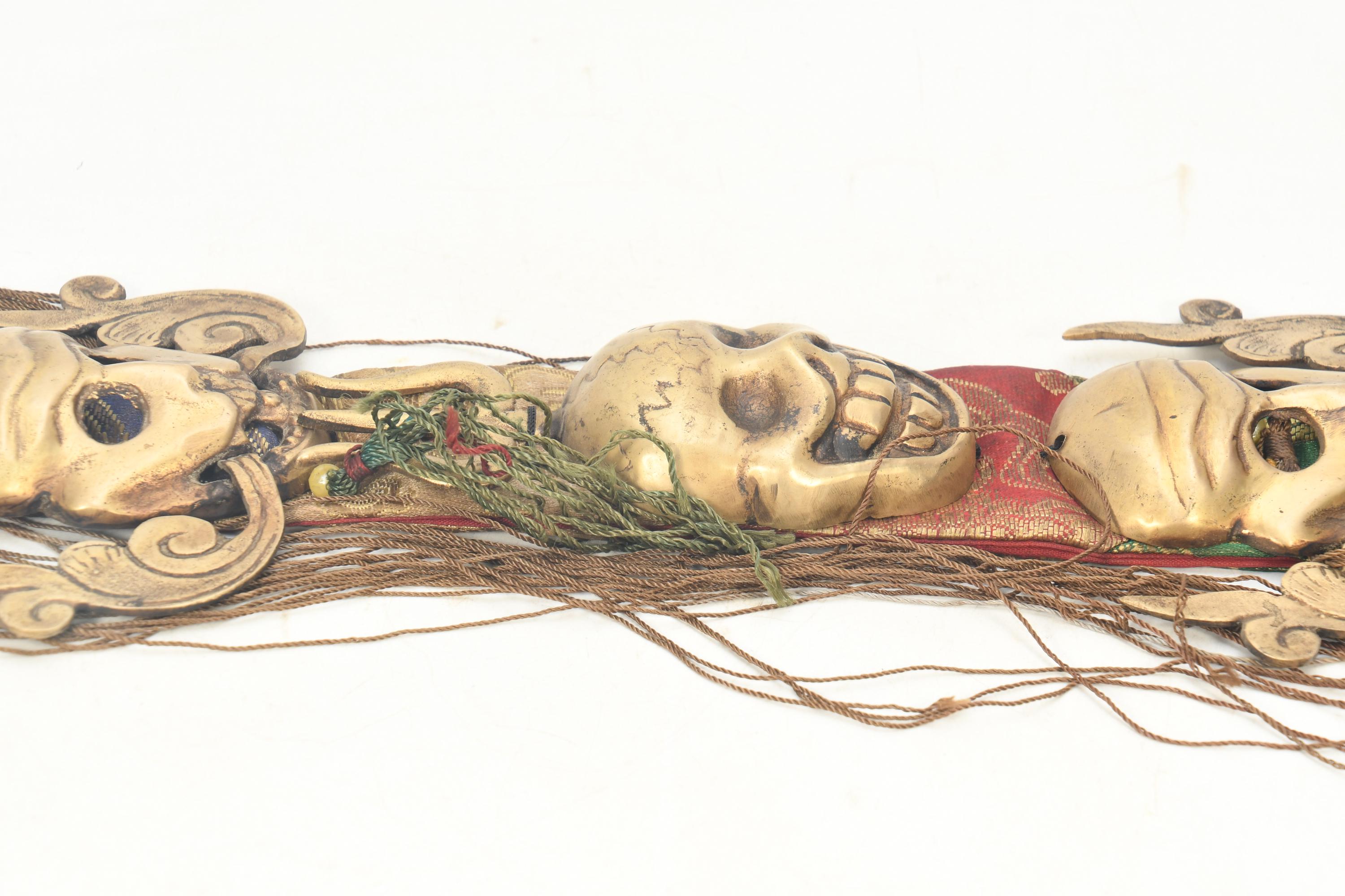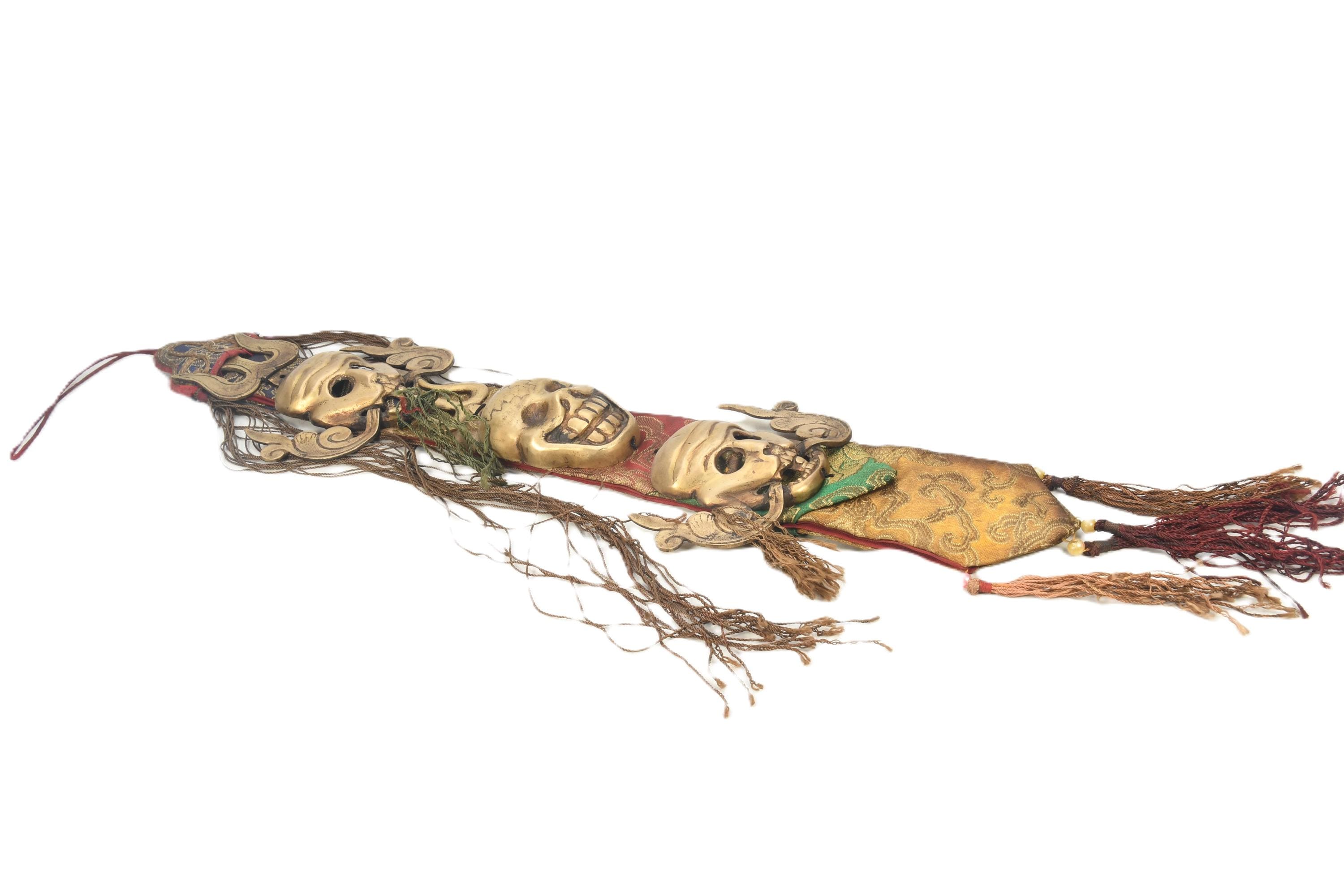 Antique Brass Three Head Skull Citipati Wall Hanging, Tibetan Tribal Art