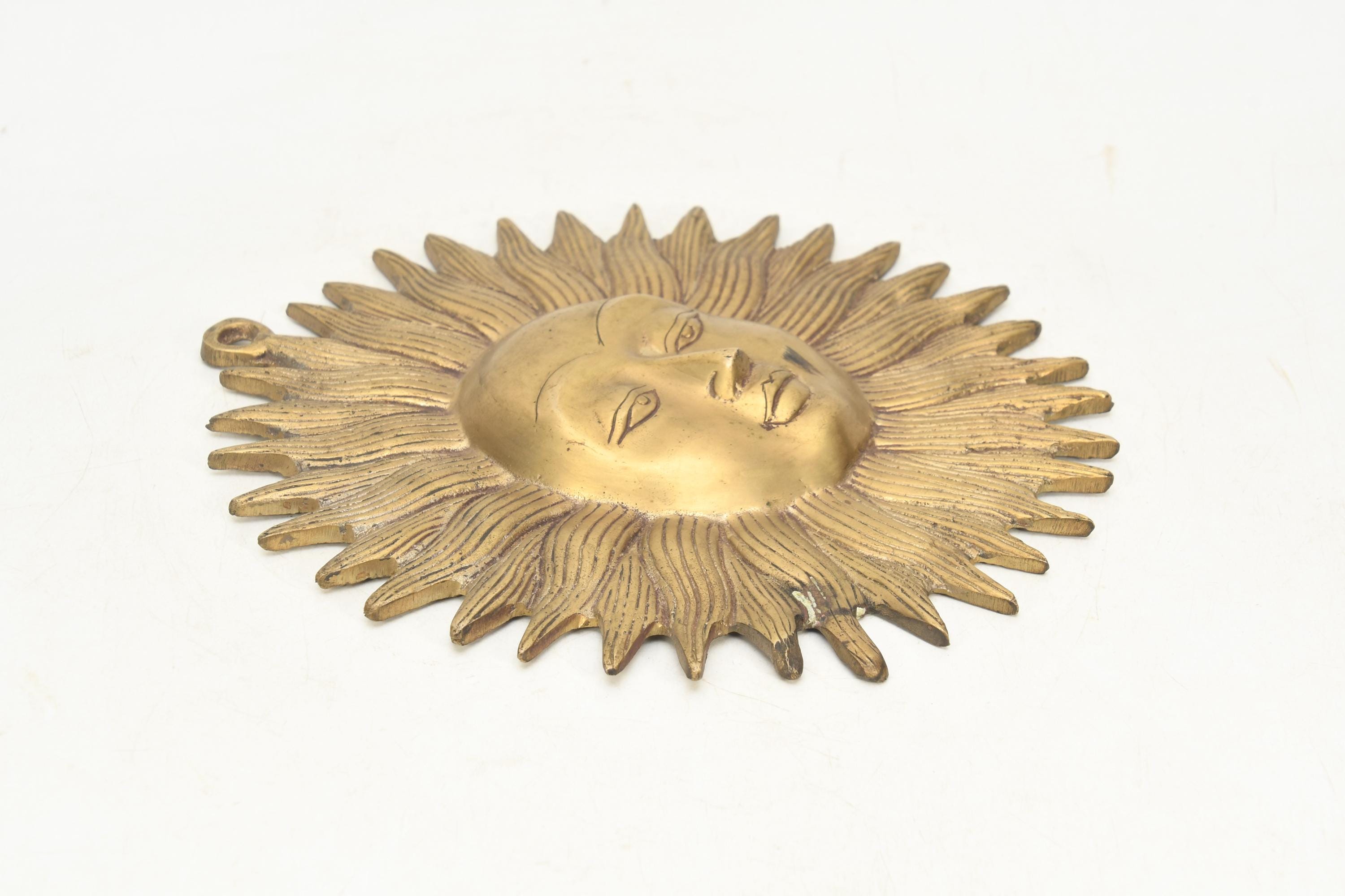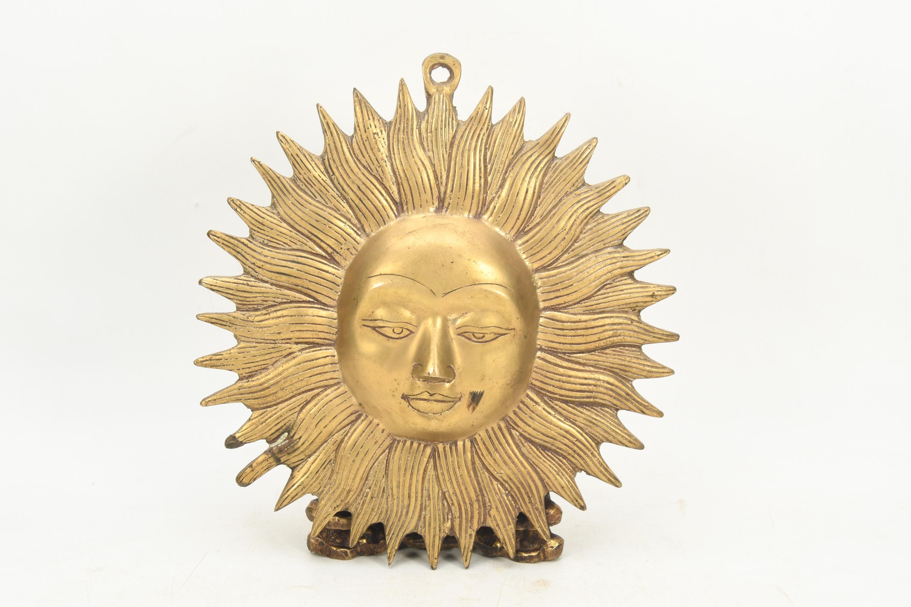 Antique Brass Sun Wall Hanging Handmade Vintage Home Decor Traditional Crafted Collectible Art