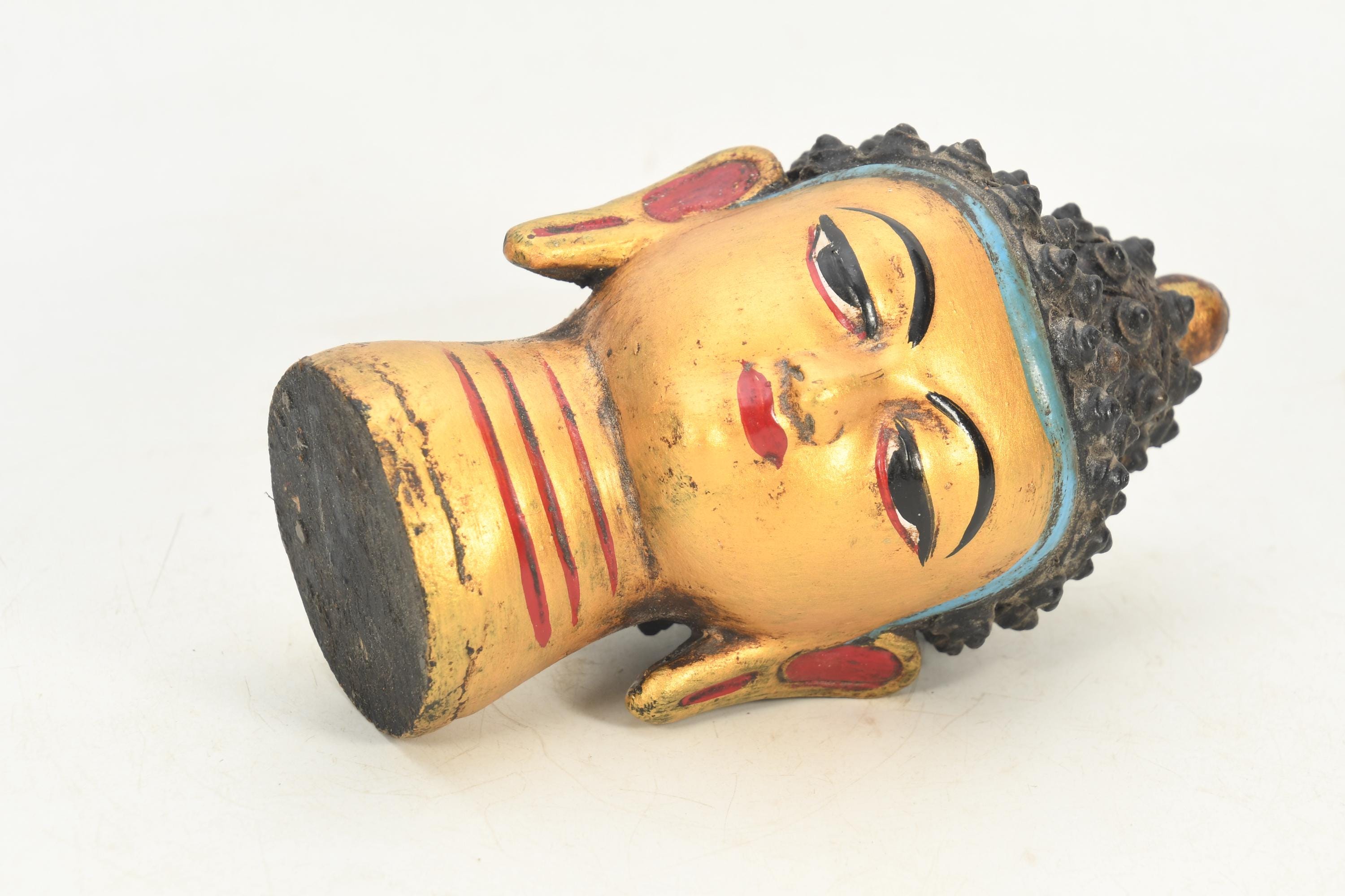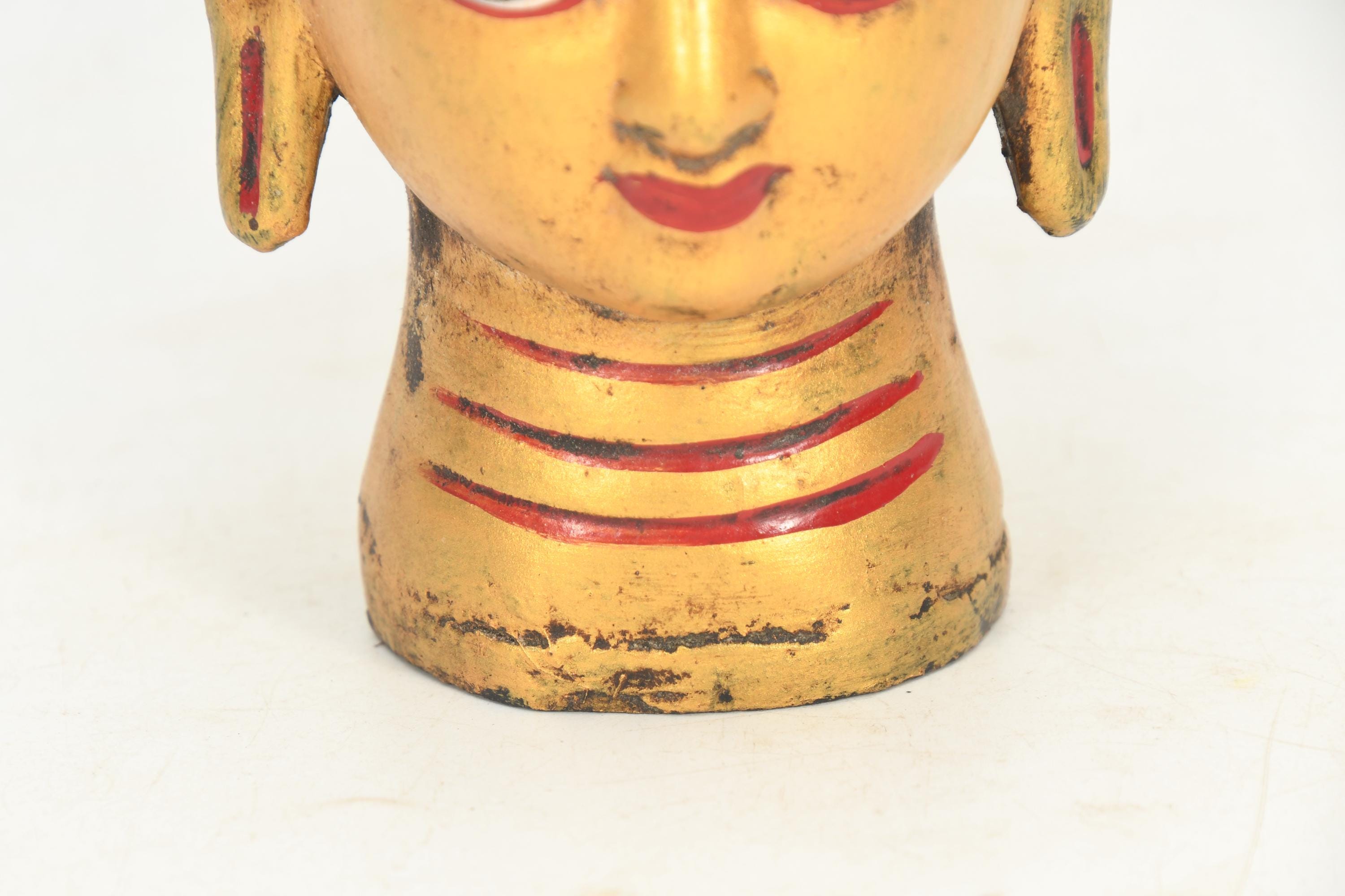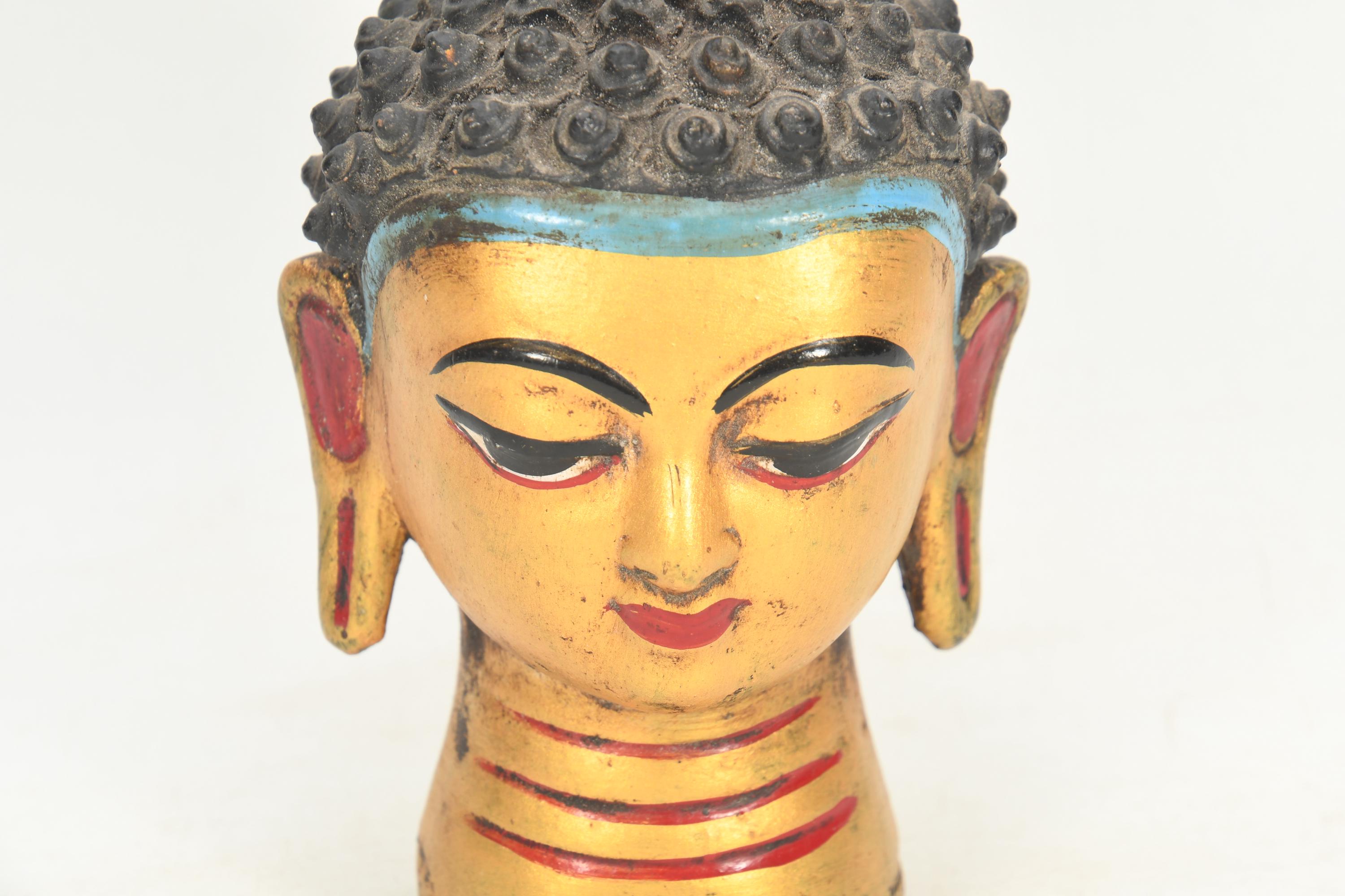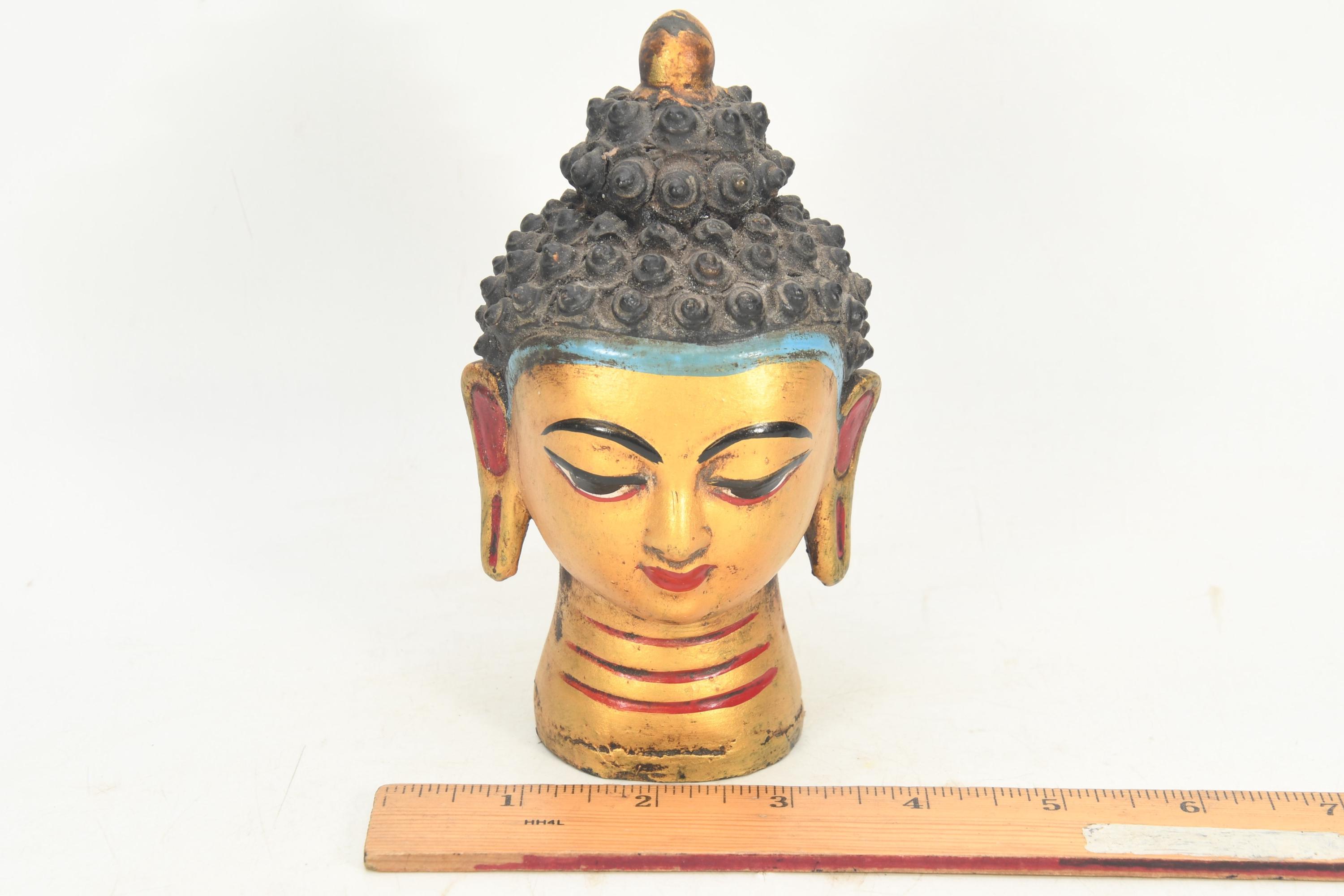 Handmade Wooden Lord Buddha Head Statue Antique Tibetan Buddhism Traditional Craft Vintage Collectible Art