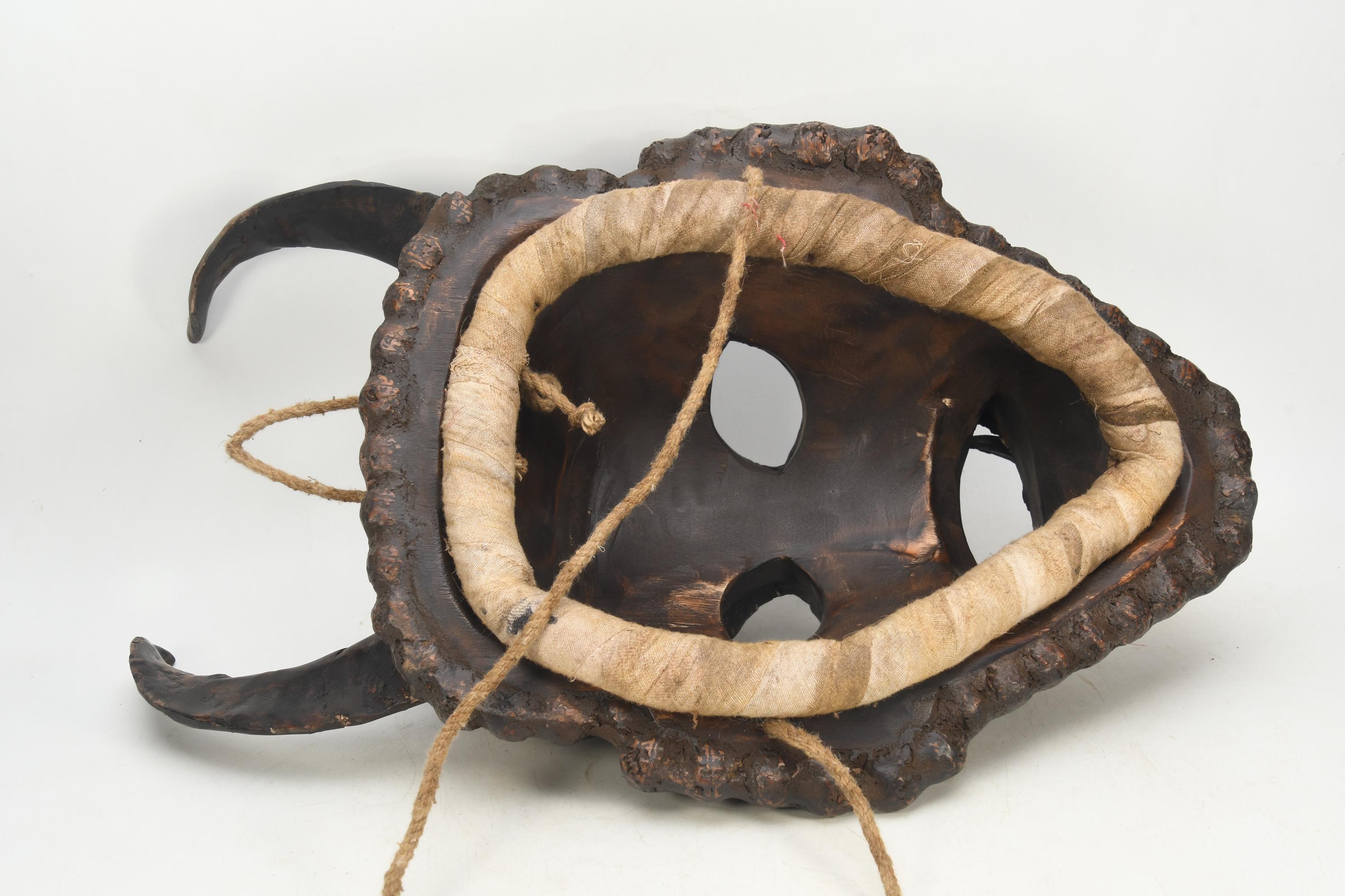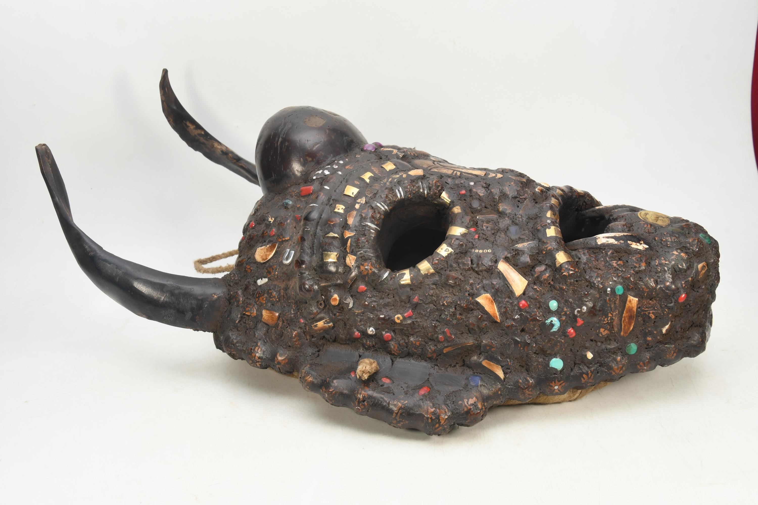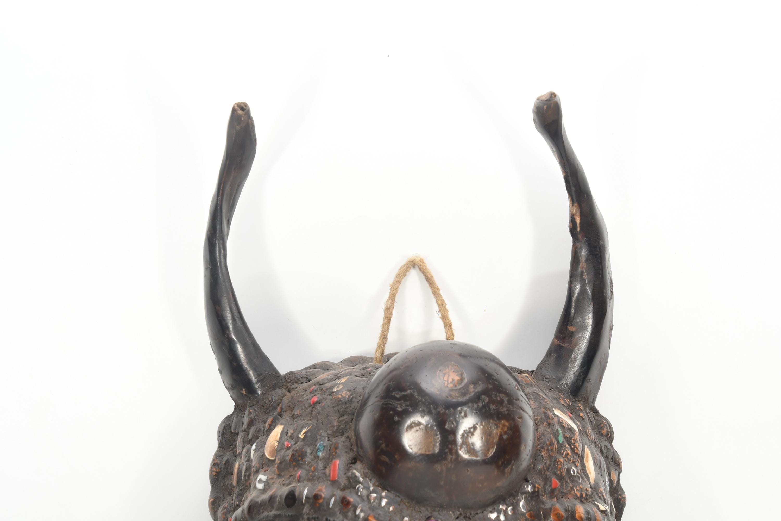 Handmade Antique Wooden Horned Rudraksha Wall Hanging – Tribal Shaman Mask Decor Spiritual Collection Art