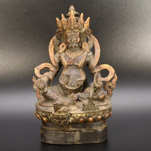 Handmade Antique Wooden Buddha Statue – Tibetan Meditation Figurine, Traditional Religious Art, Spiritual Home Decor