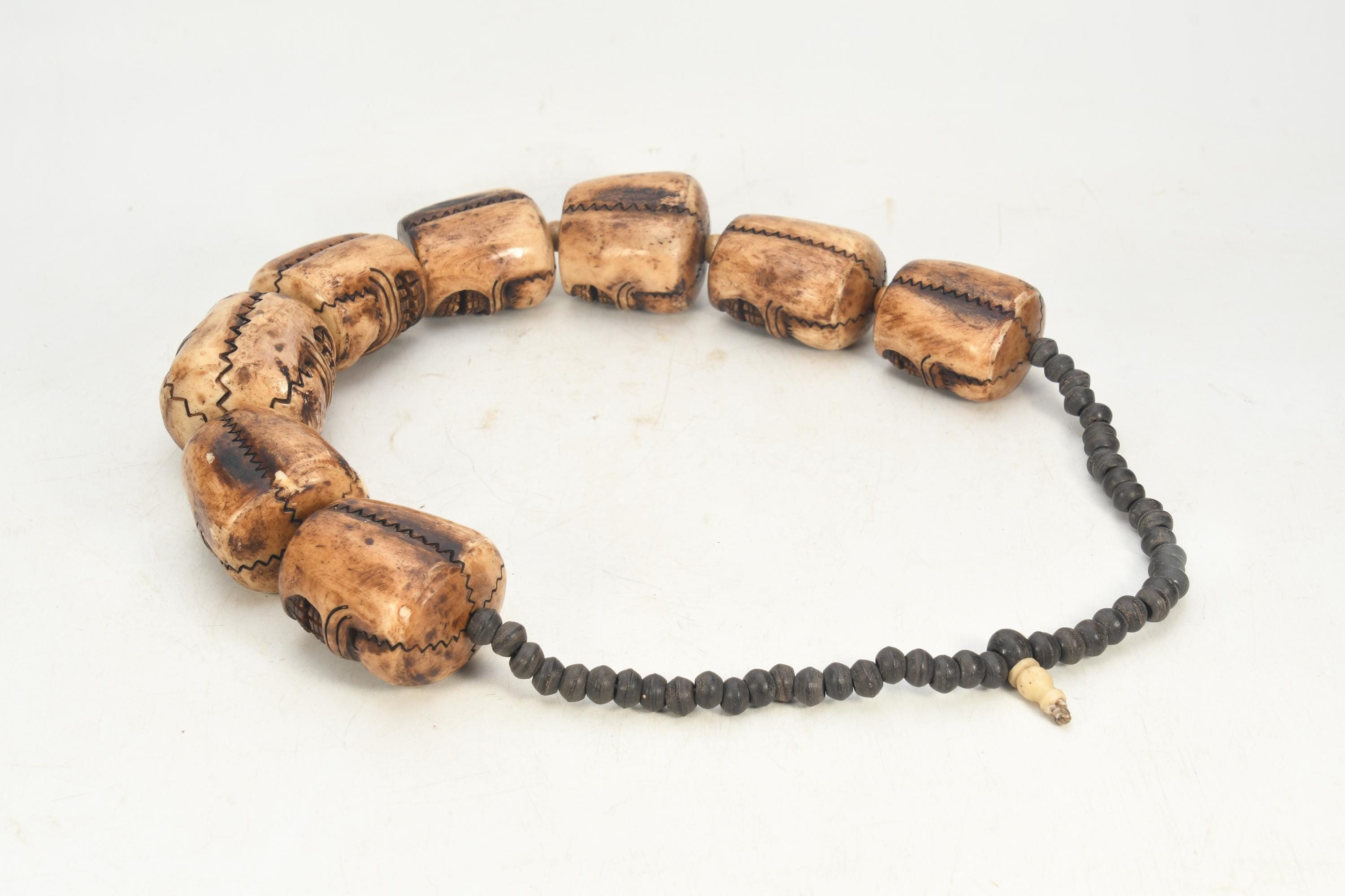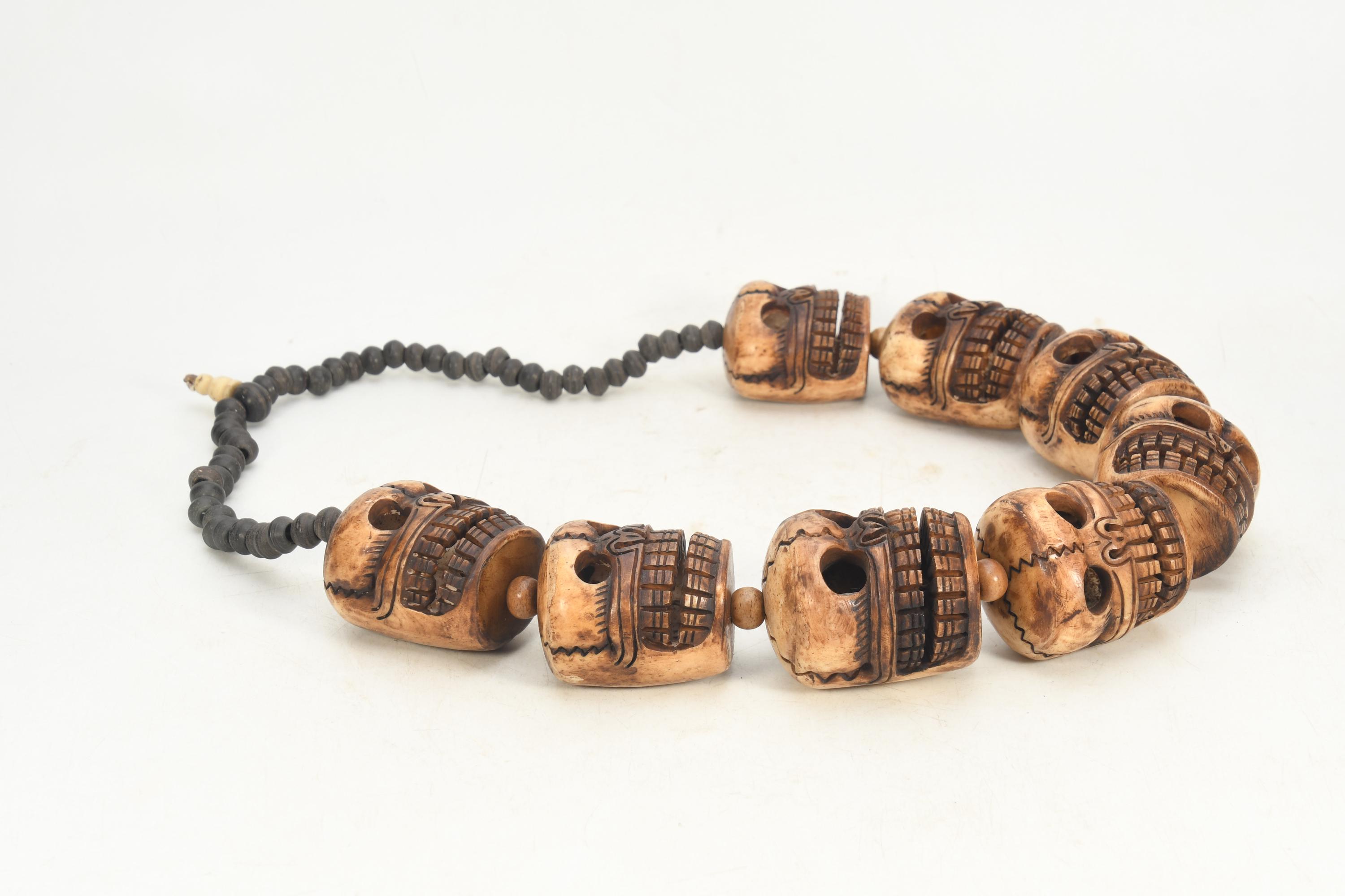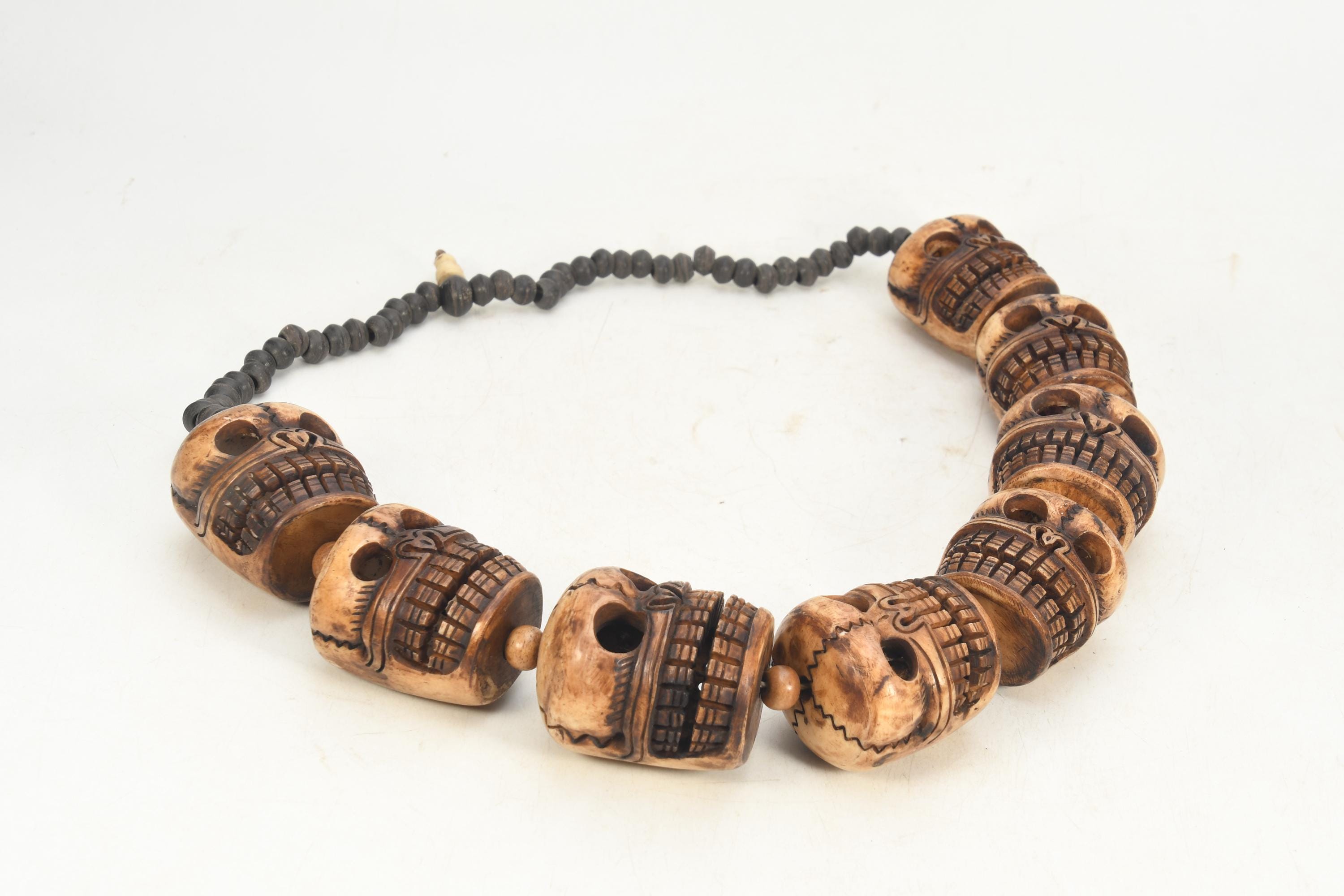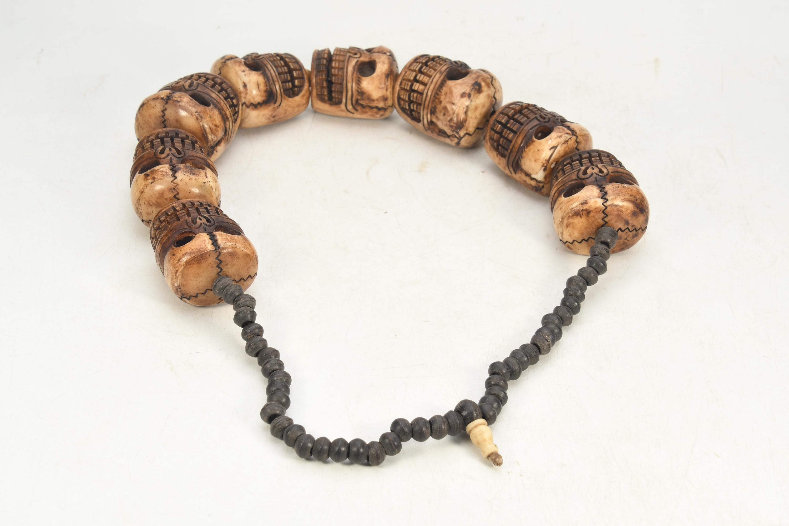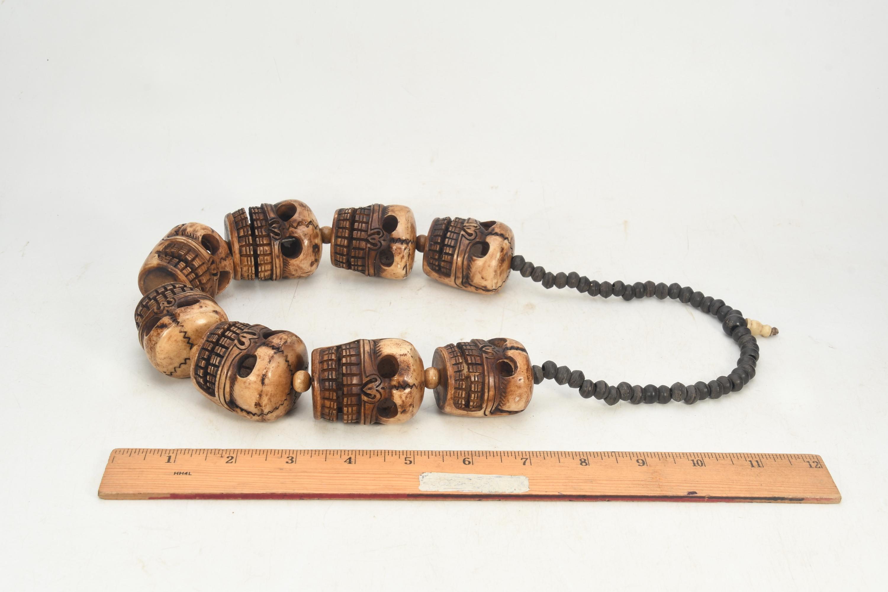 Antique Skull Beads Necklace – Handmade Vintage Tantric Lama Jhakri Mala Pendant, Spiritual Tibetan Jewelry
