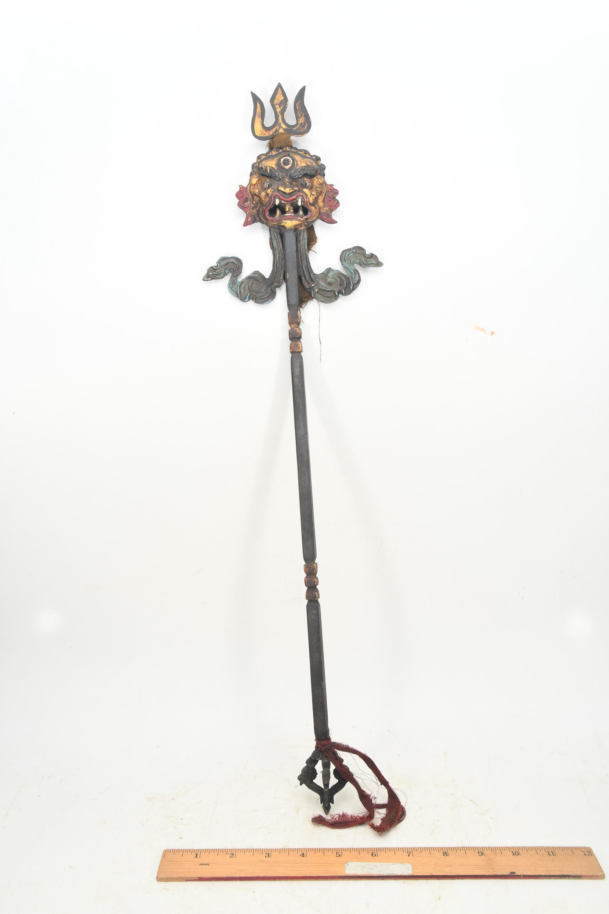 Handmade Antique Brass Bhairav Mahakala Khatvanga – Tibetan Tribal Art