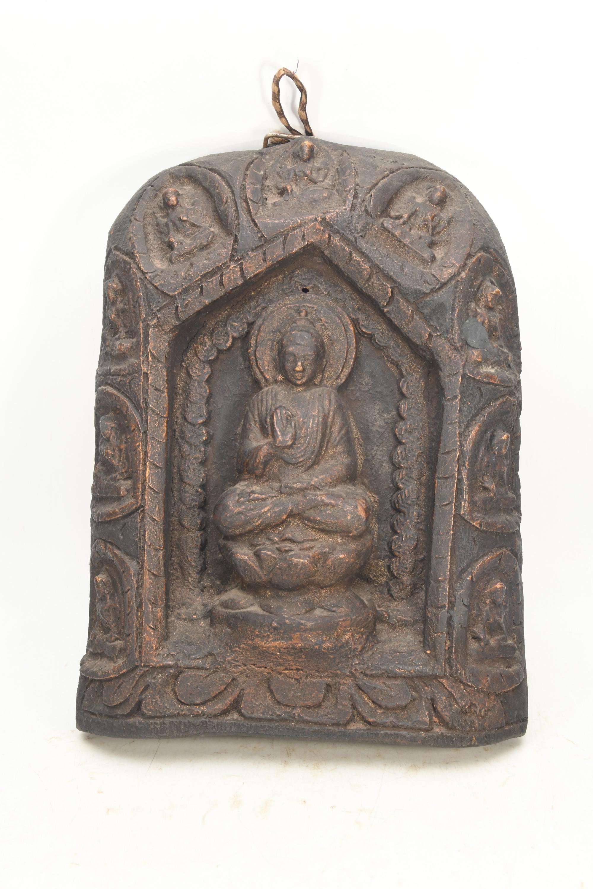 Handmade Wood Carved Buddha Wall Hanging: Tibetan Healing Art