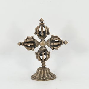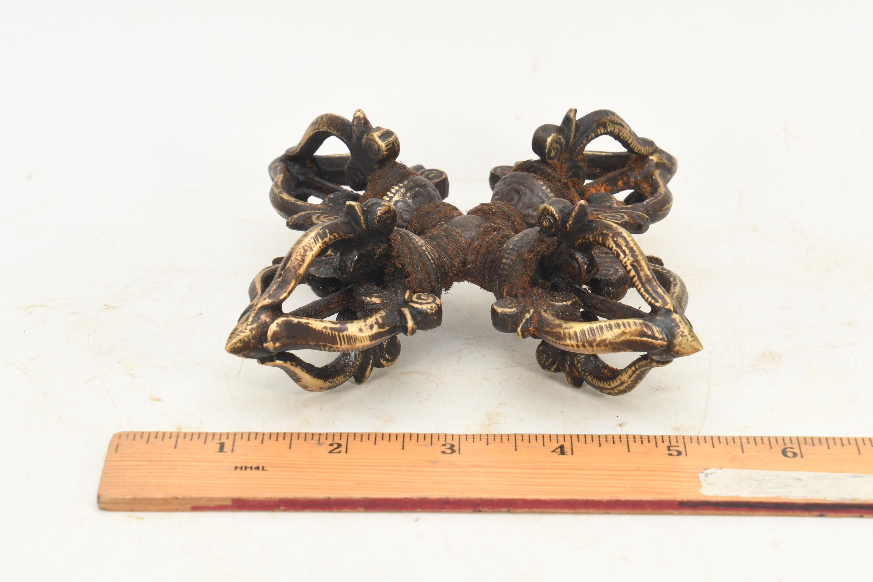 Handmade Antique Brass Double Dorje Tibetan Vintage Master Healing Spiritual Collectible Meditation Art Decor