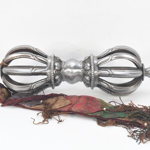 This Vajra is to be used during empowerments. Usually needs two Vajras, one for the Mandala which is tied to the Sung-Tak with five colored cord and the second one for the Vajra Master. Sanskrit word vajra or Dorje in tibetan is defined as "diamond" or "adamantine". As such, the word vajra sometimes signifies enlightenment, or the absolute reality of shunyata, emptiness. Dorje offers protection and envokes blessings.