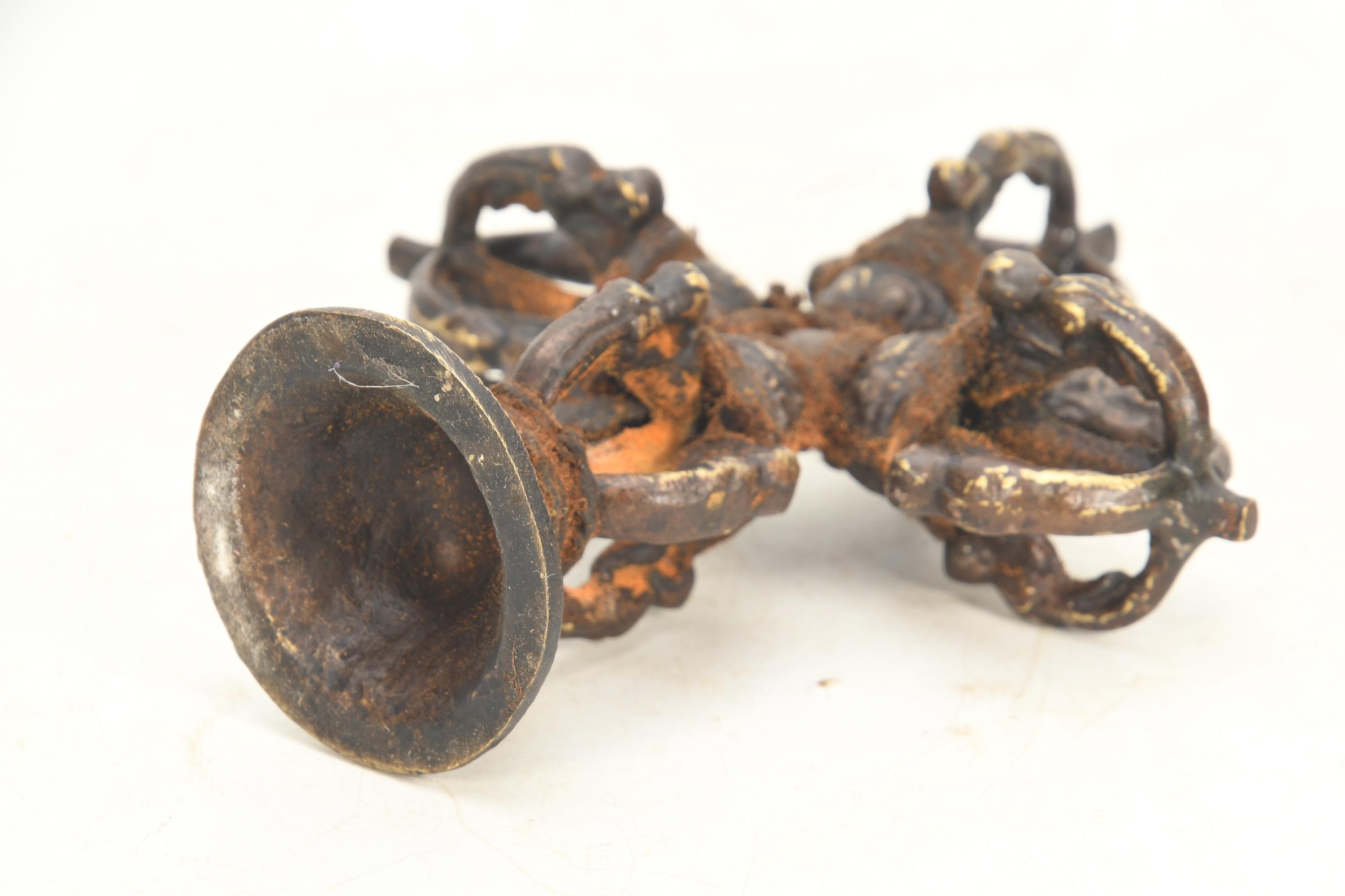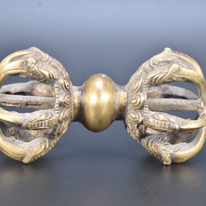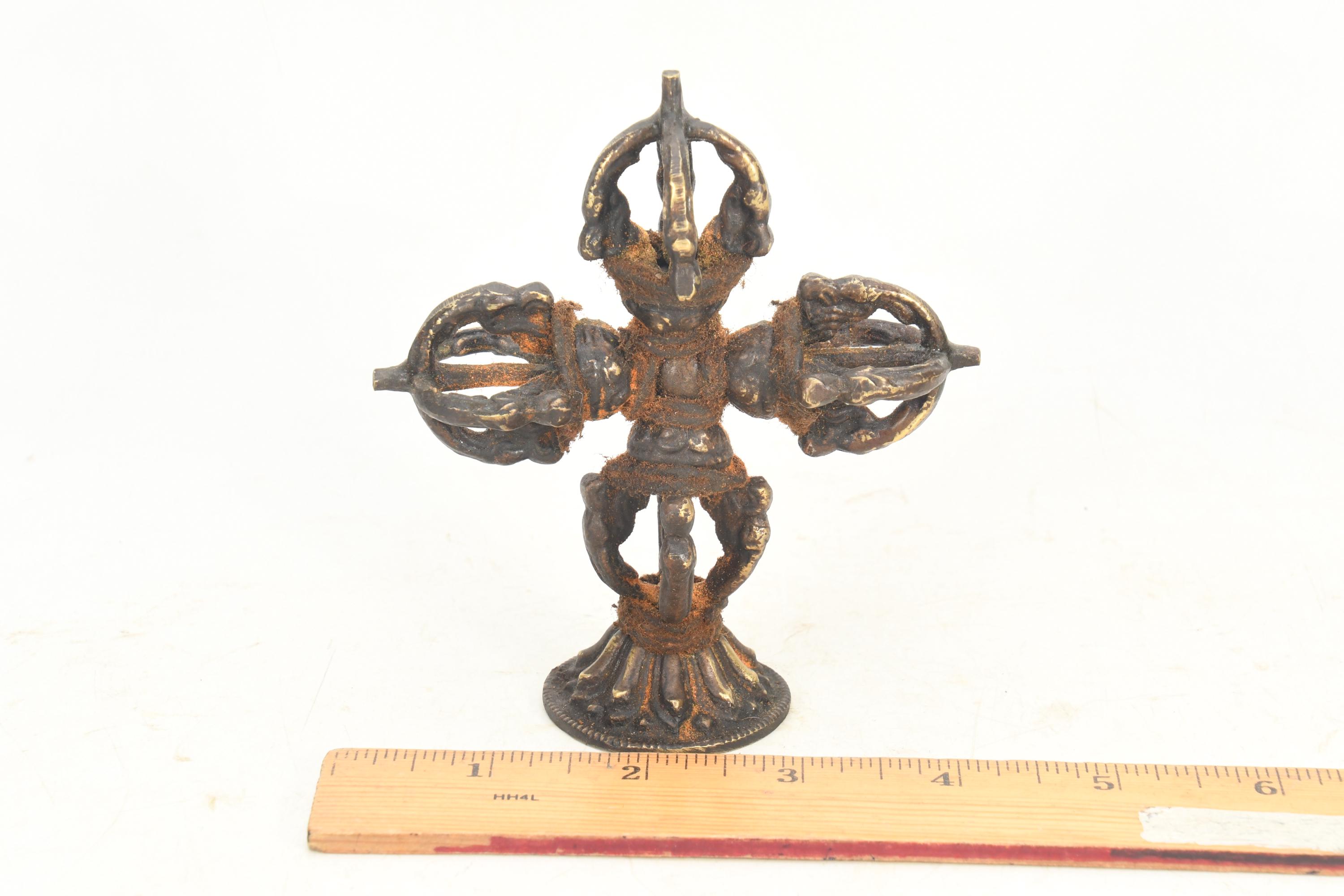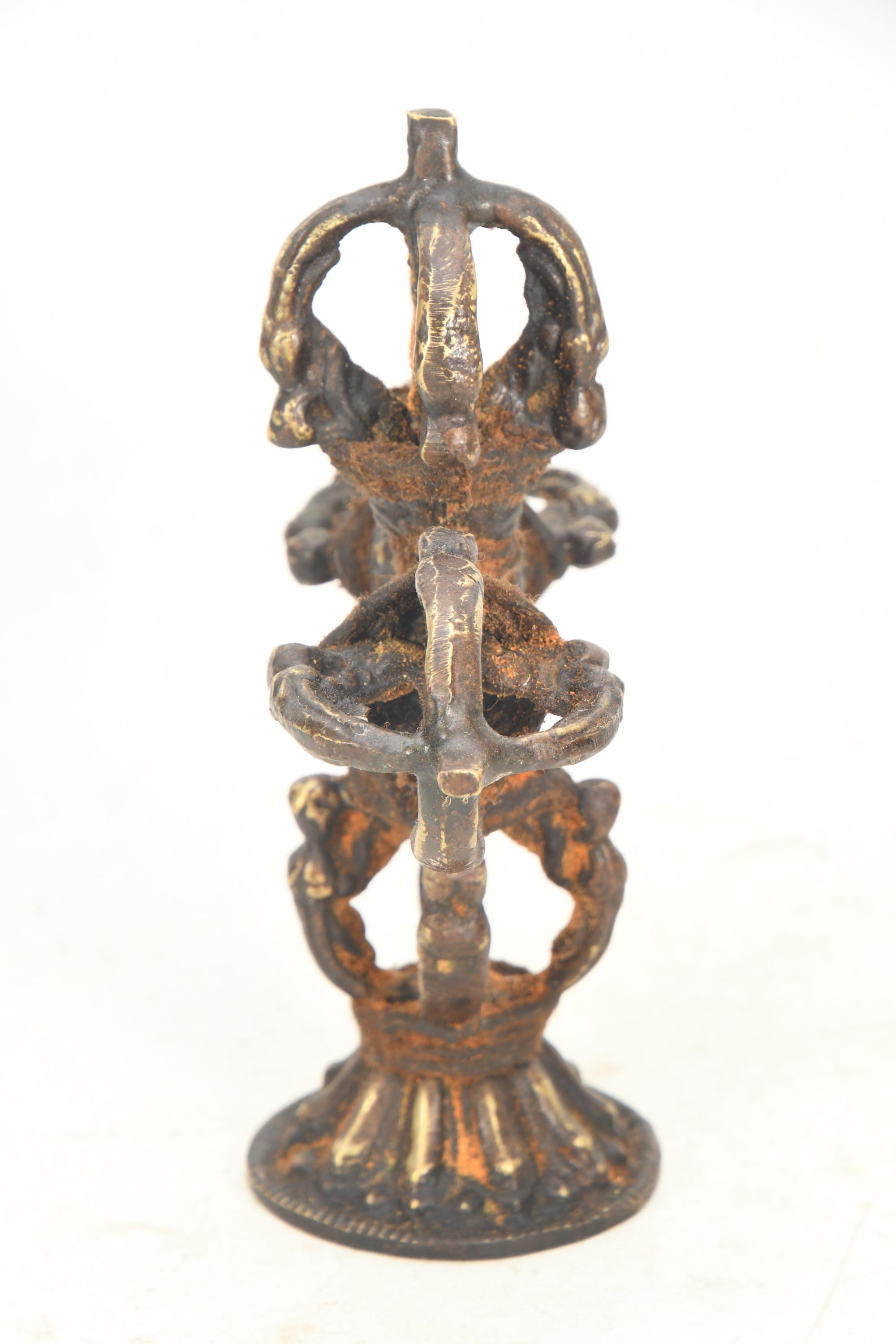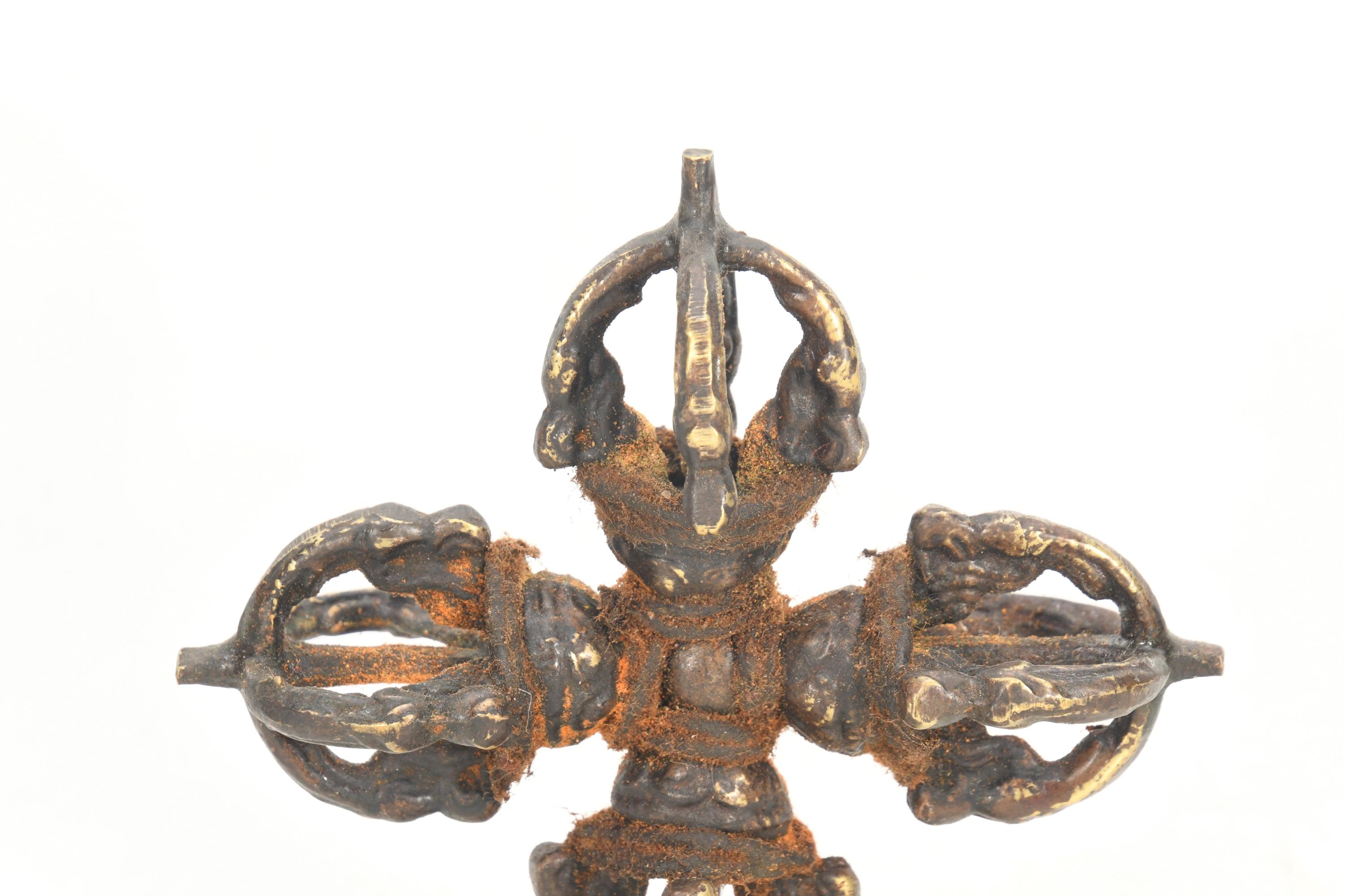 Antique Brass Double Dorje with Stand: Tibetan Buddhist Healing Art