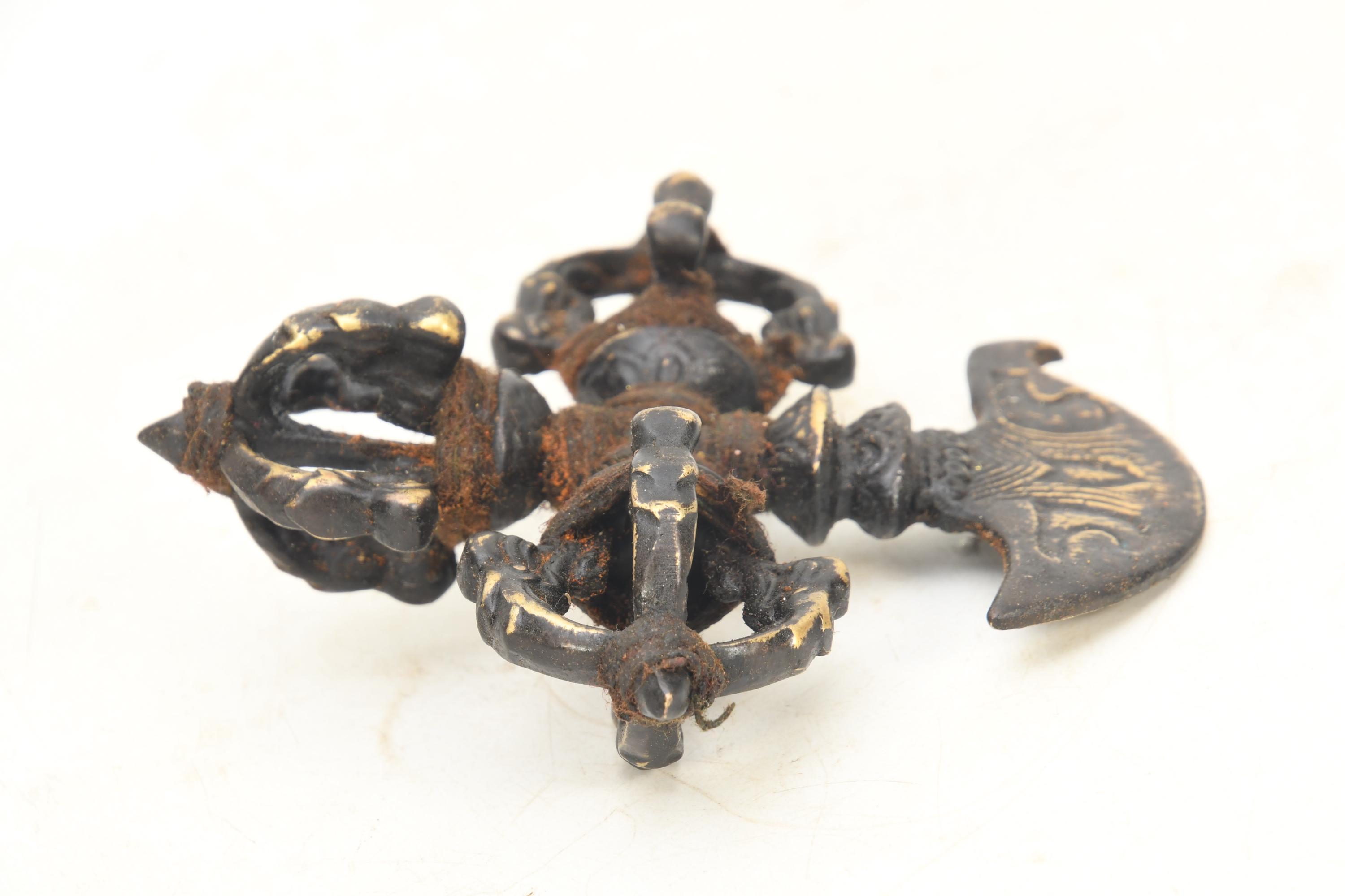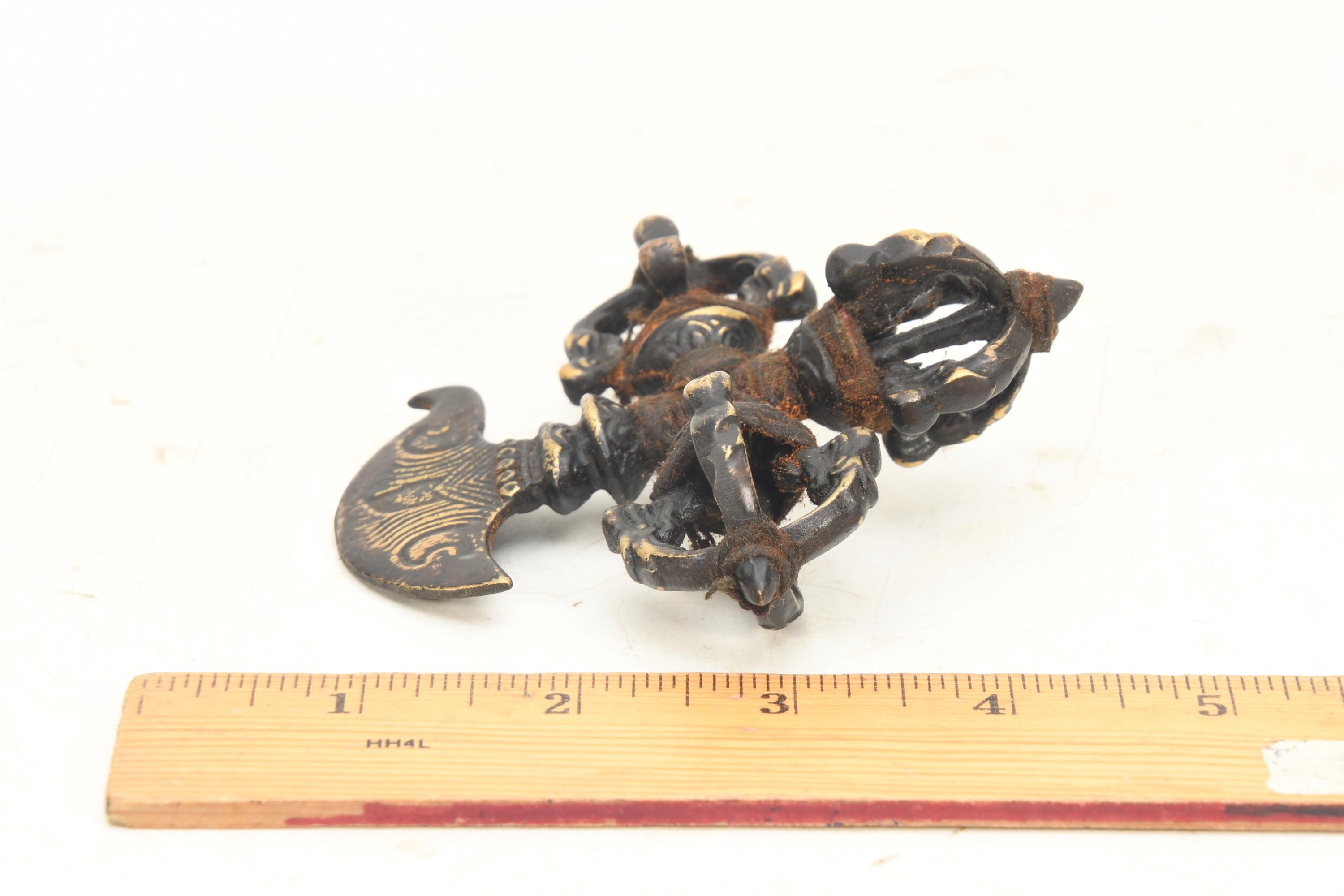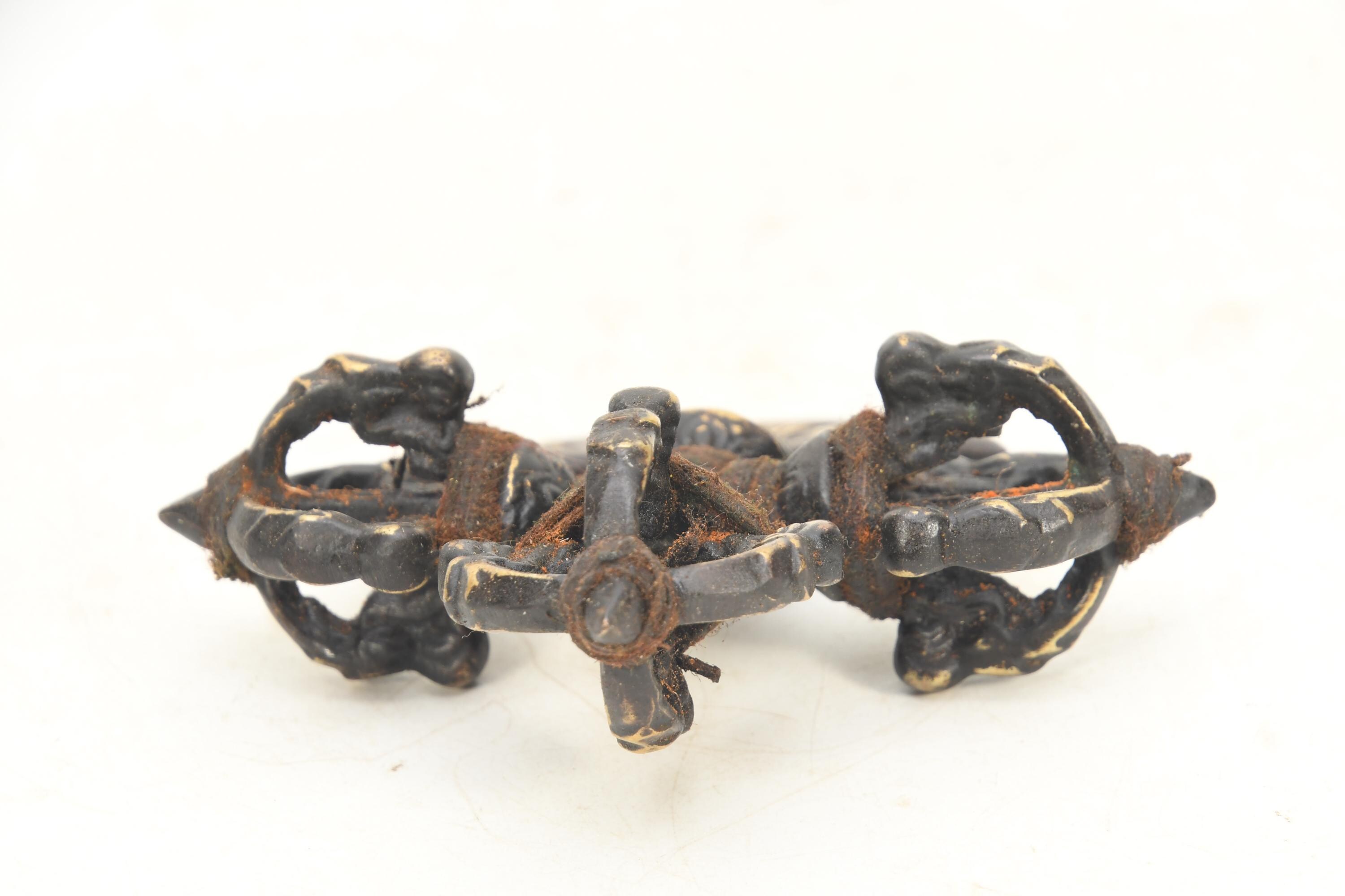 Antique Brass Double Dorje Khatvanga: Tibetan Healing Artifact