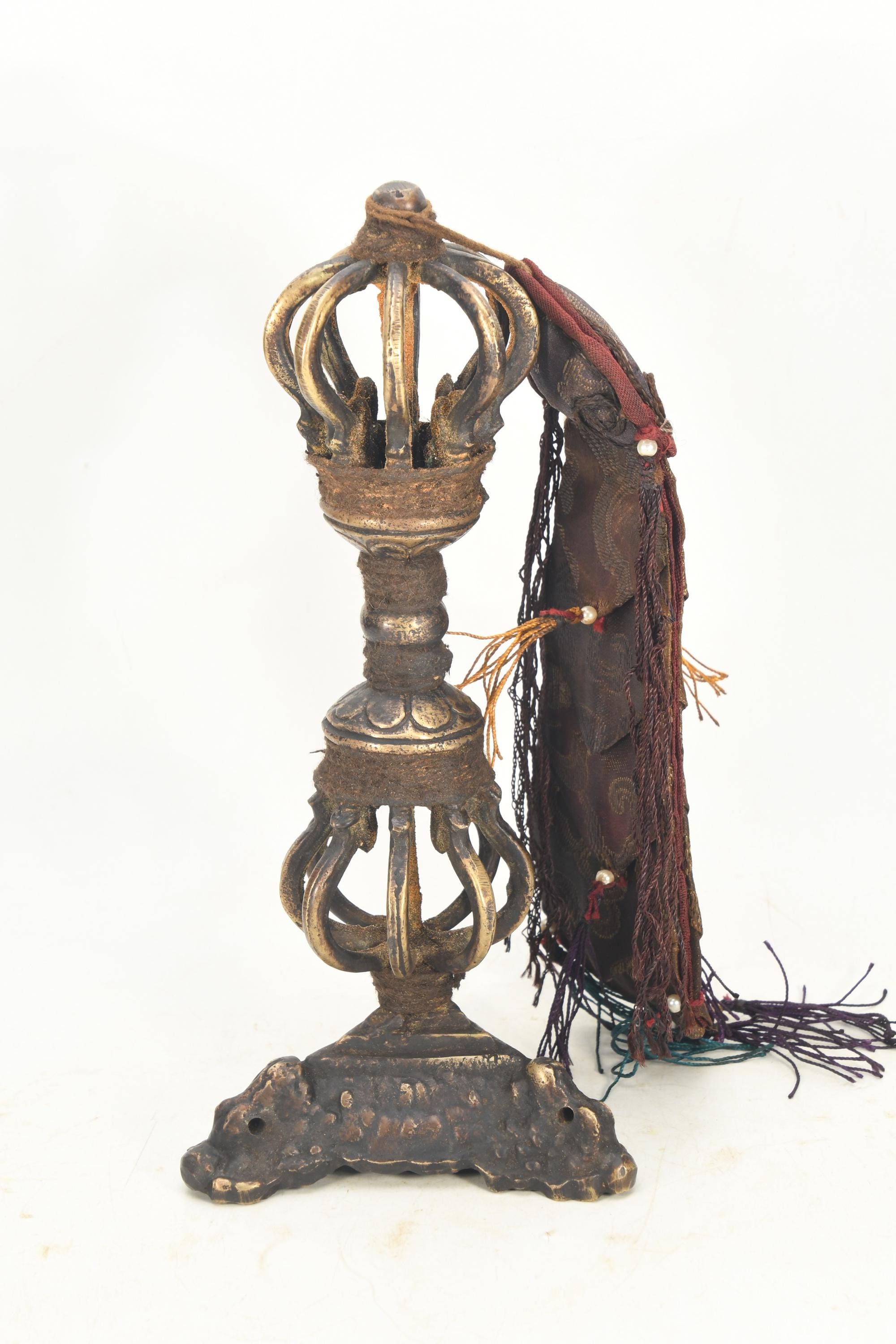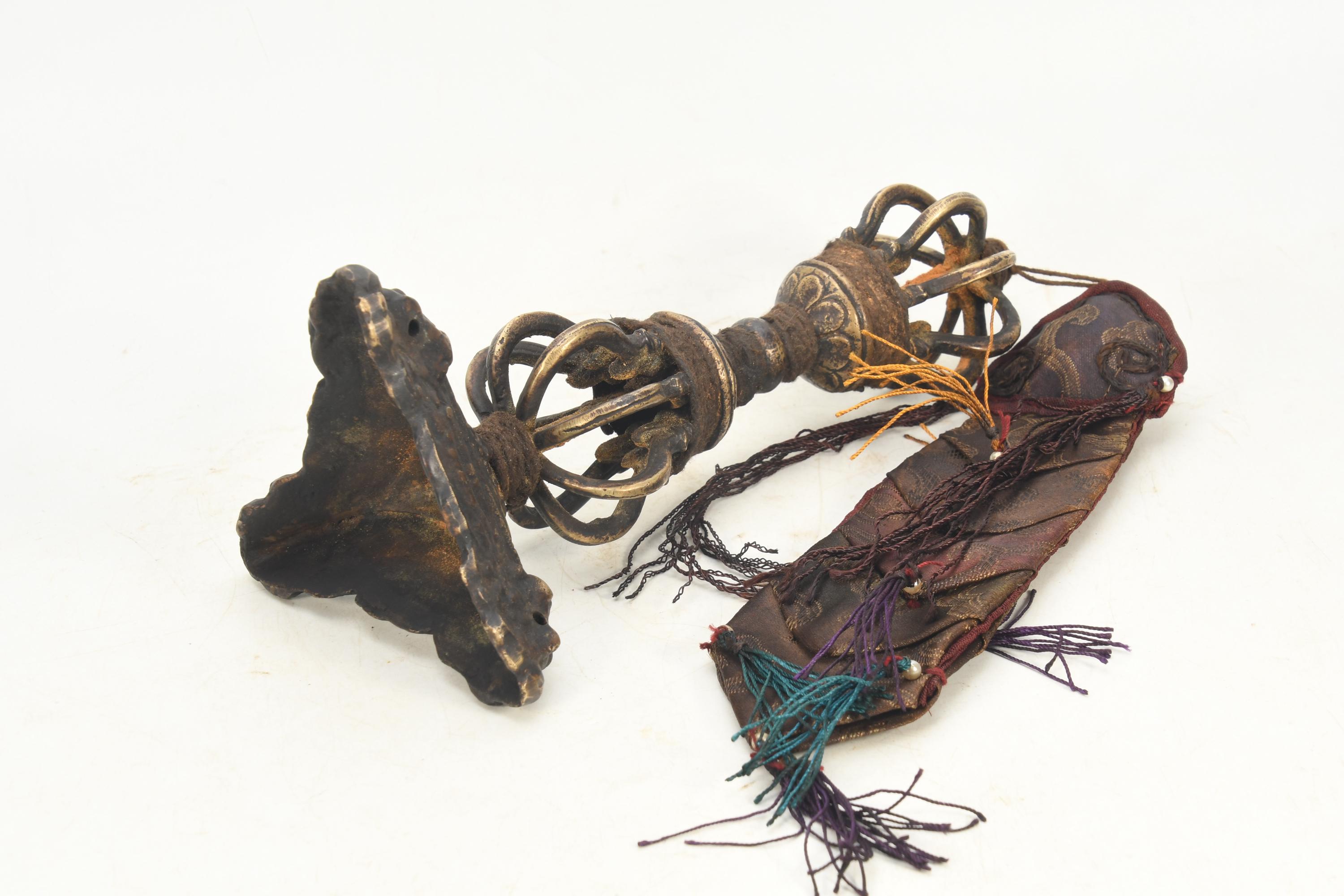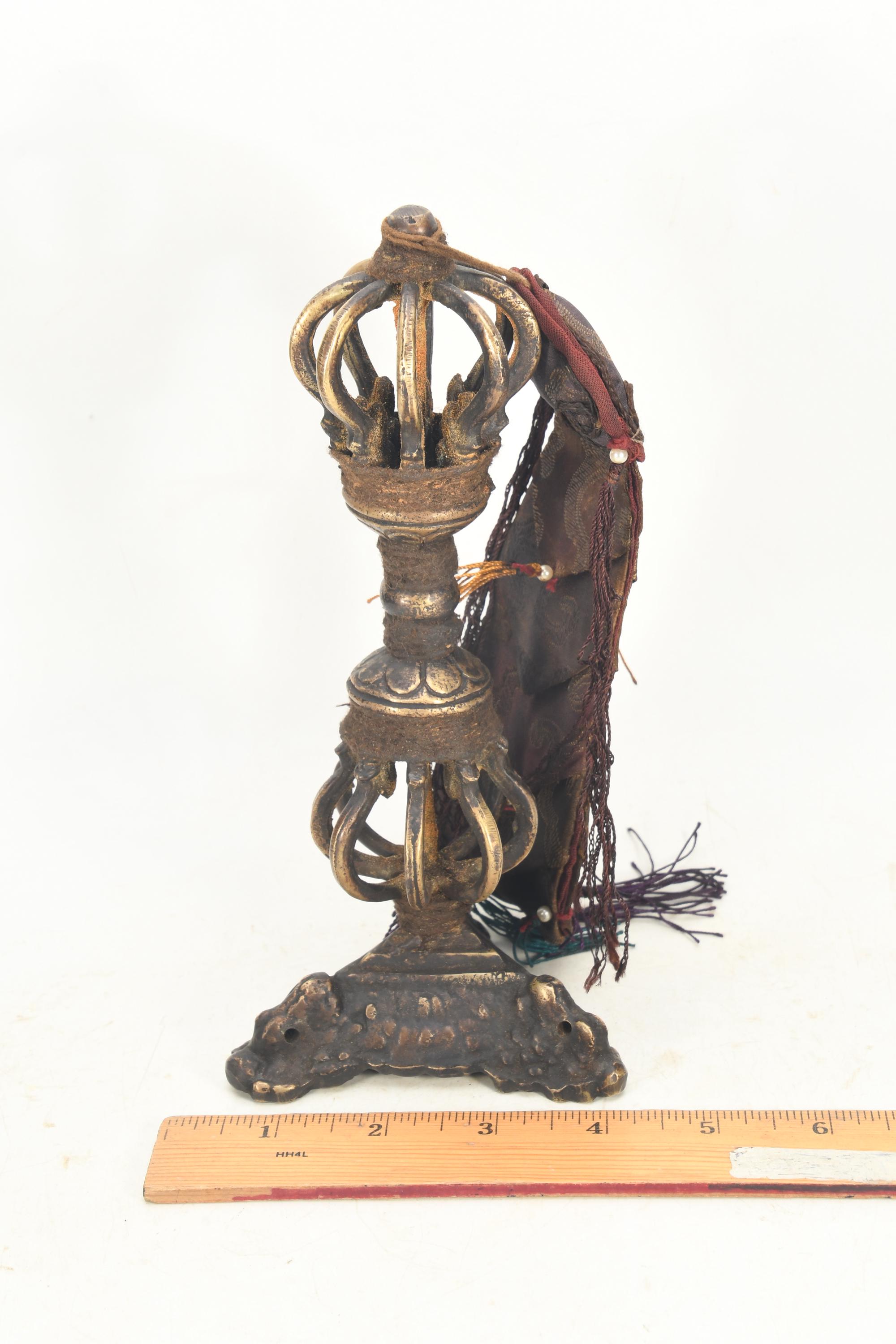 Antique Brass 8-Prong Dorje with Stand, Tibetan Buddhist Tantric Art
